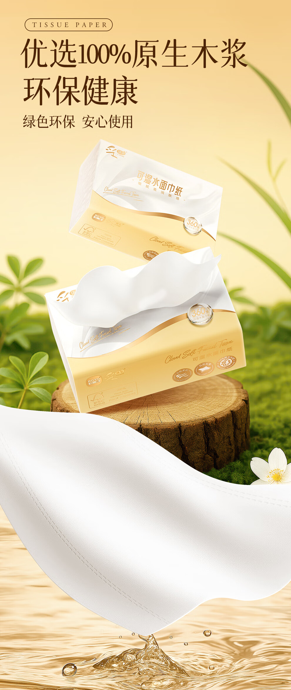 雨森(YUSEN)天然柔滑妇婴抽纸面巾纸400张/包4层厚餐巾纸柔软舒适木浆纸巾M码 4层 400张*18包