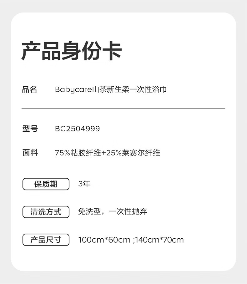 babycare金山茶新生柔一次性浴巾干湿两用居家旅行便携浴巾-70×140cm*5包
