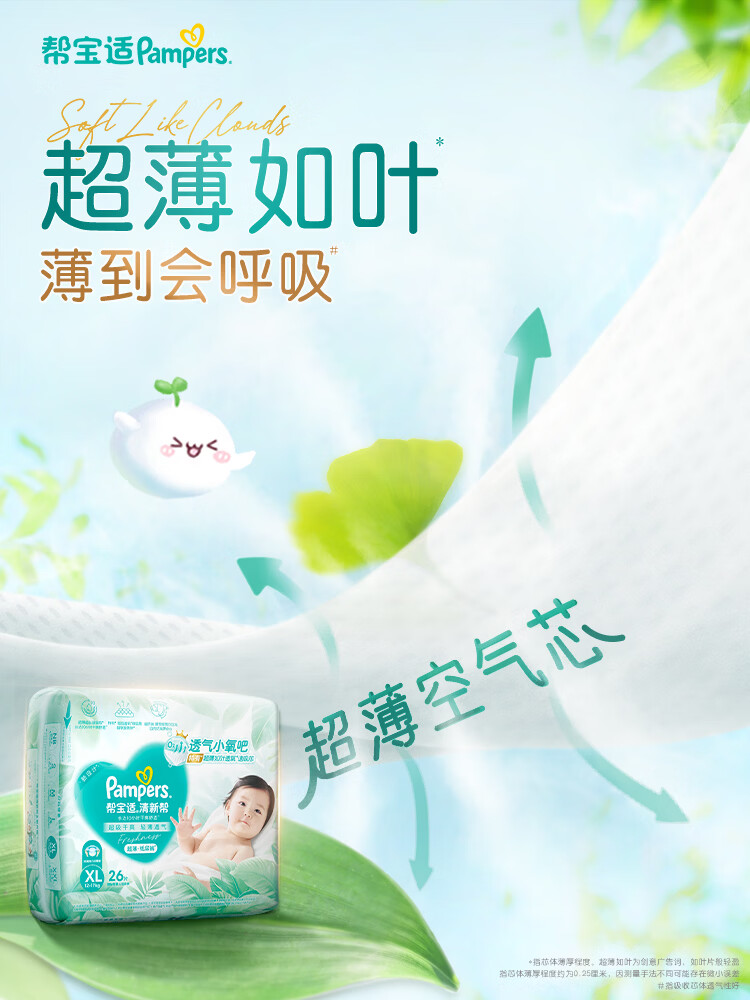帮宝适超薄透气清新帮纸尿裤新生儿婴儿尿不湿尿片透氧Pro XL38