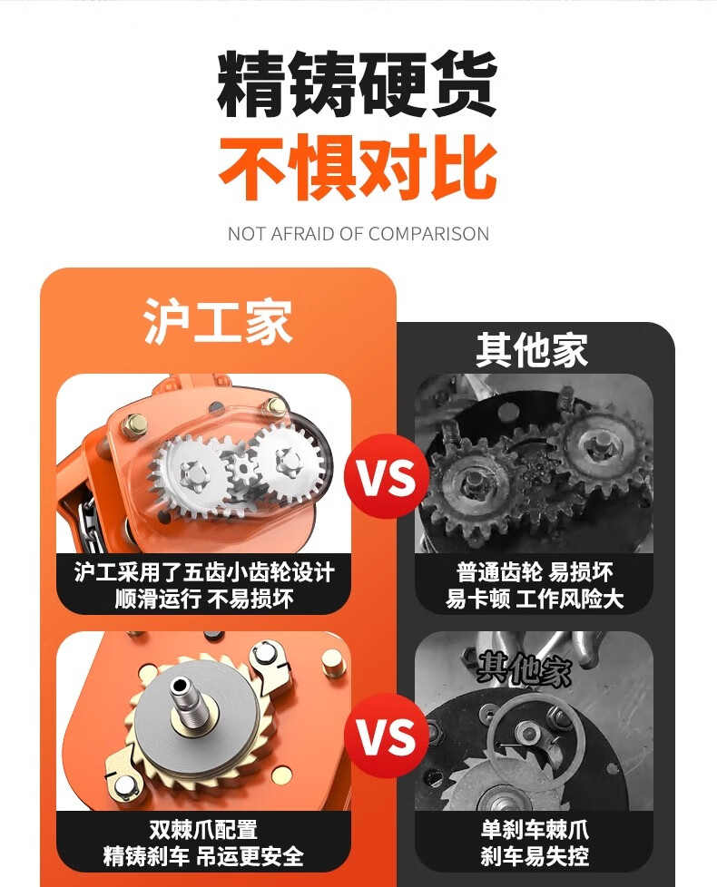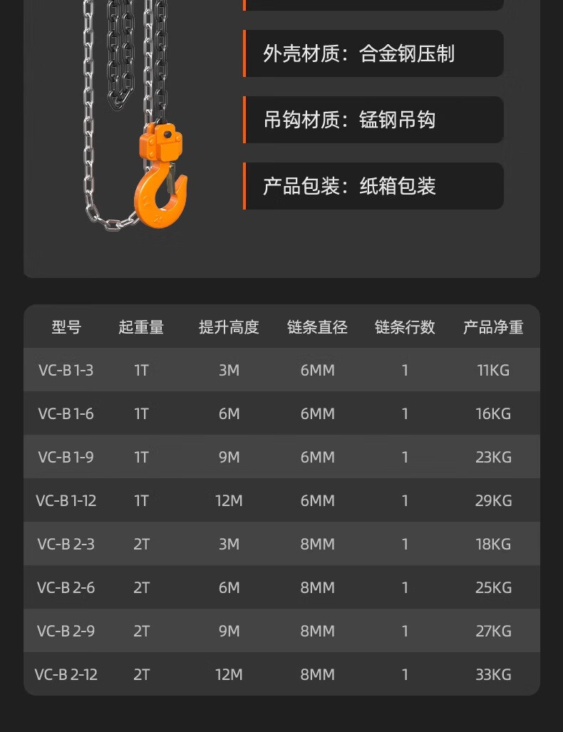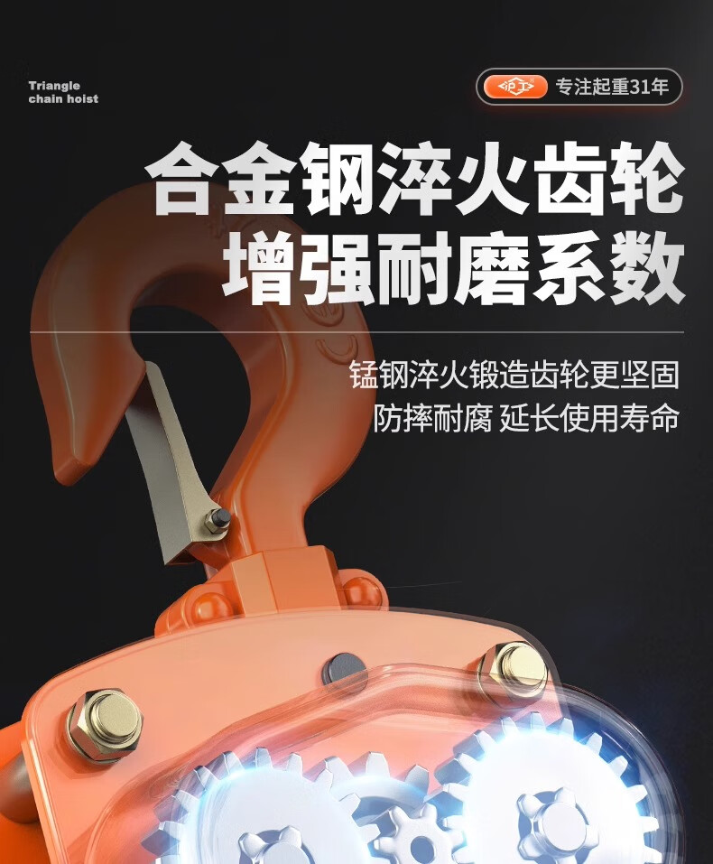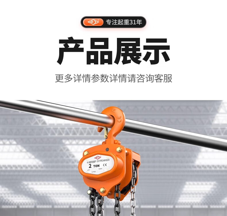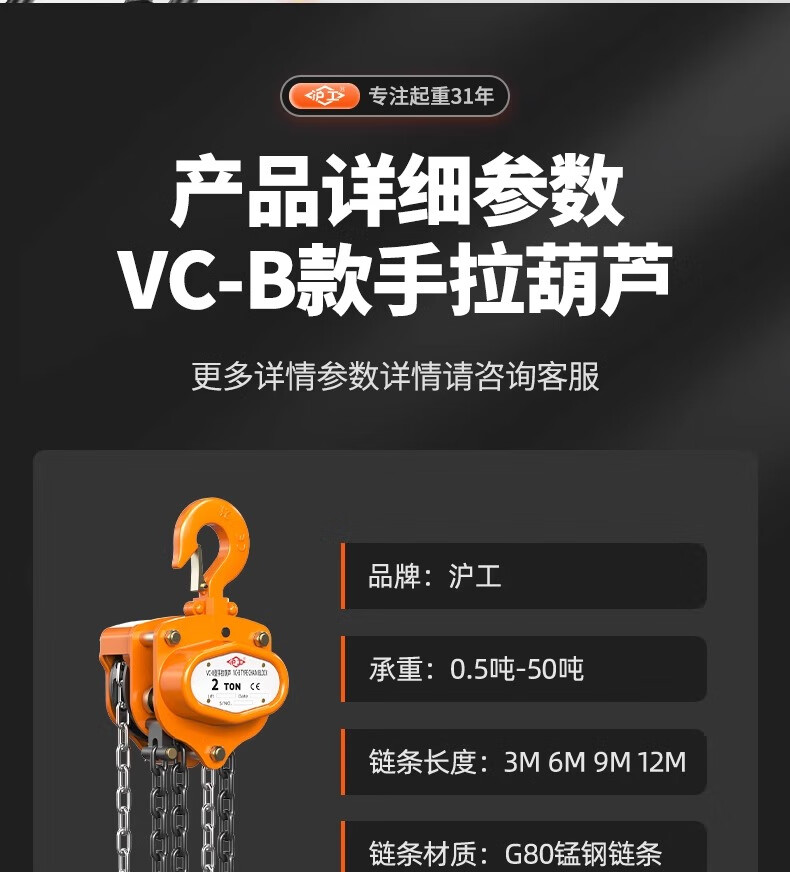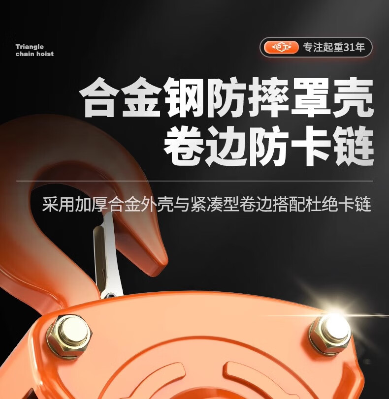 沪工VC-B倒链三角手拉葫芦1吨起重手动吊钩葫芦2吨防撞5T铁葫芦紧线器 2吨 3米