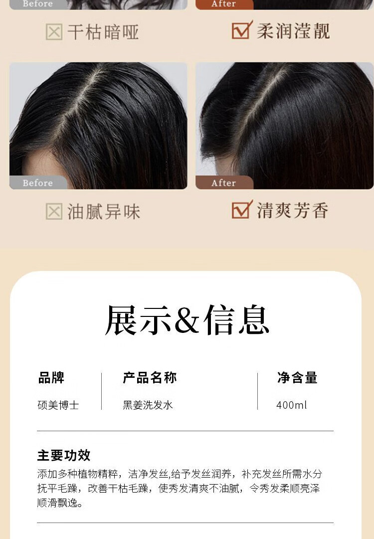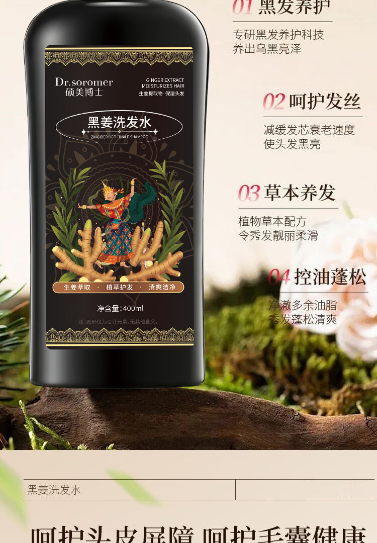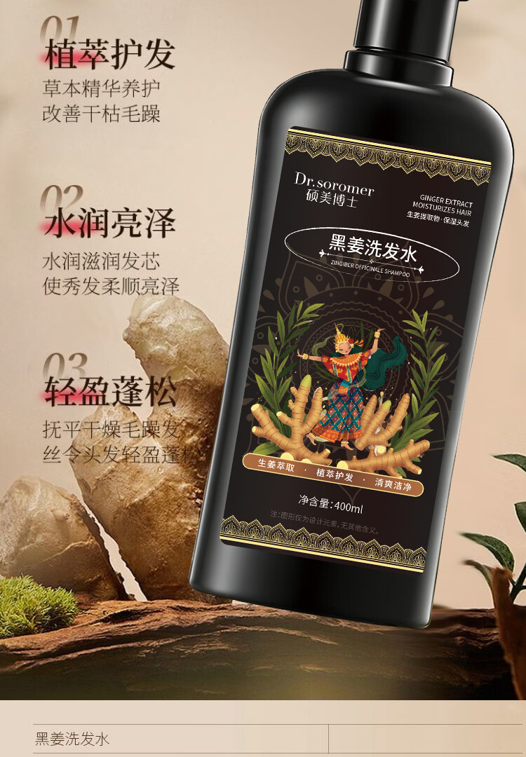 硕美博士黑生姜香氛洗发水防i脱育i清洁蓬松控油持久蓬松洗发水 【蓬松】黑姜洗发水400ml*1瓶