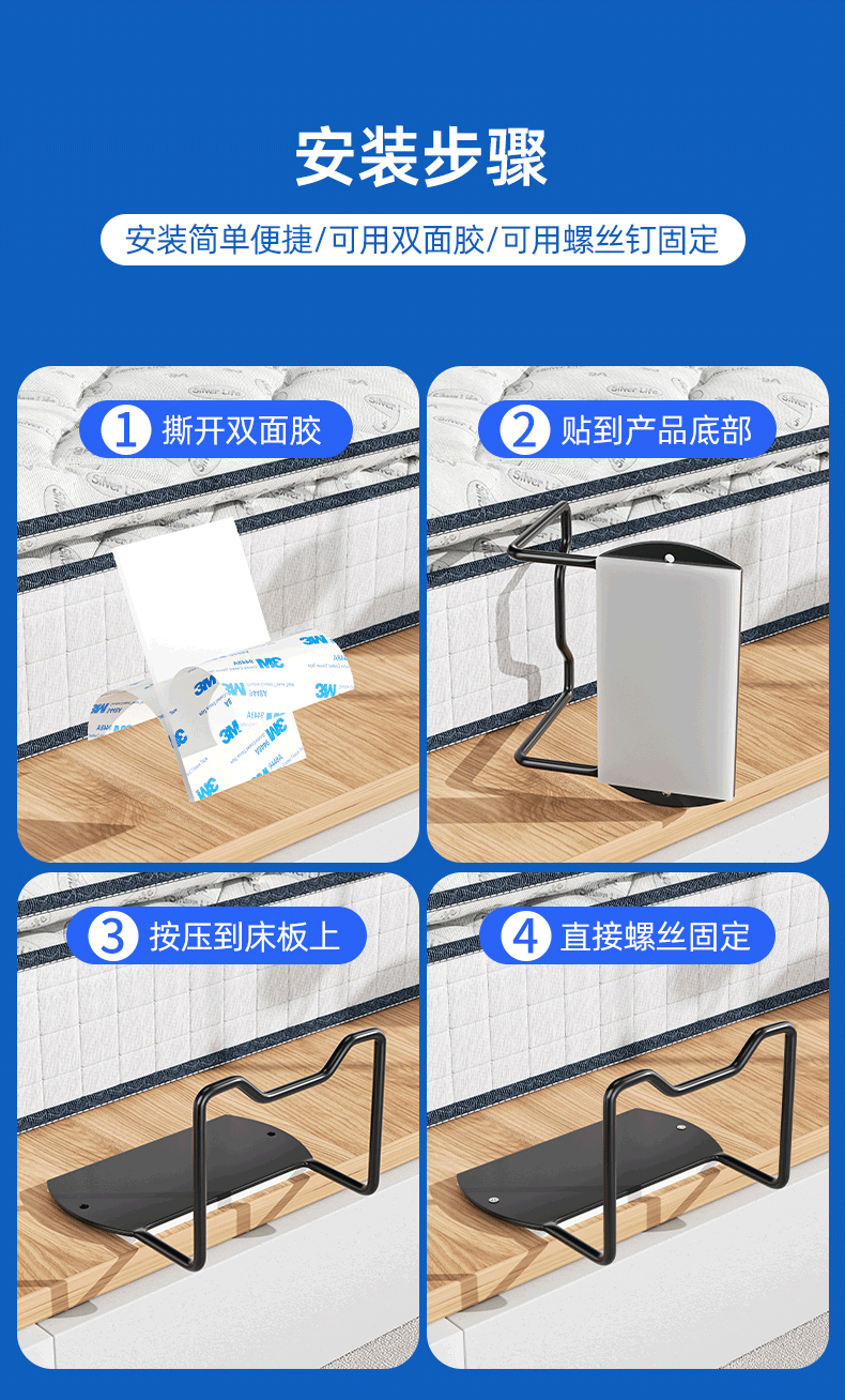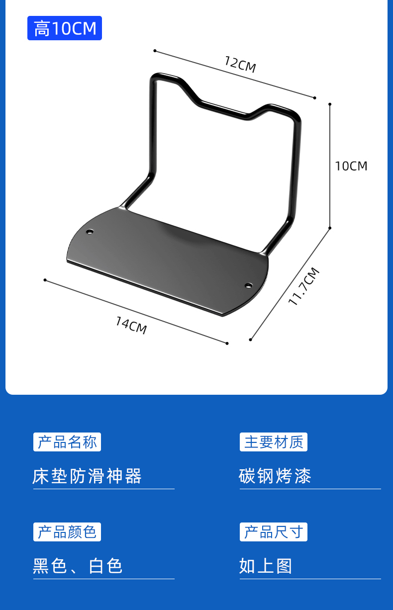 MPPMCK床垫固定器防移动床垫防滑固定器木床铁床皮床沙发垫榻榻米免打孔 1只装-黑色【10cm高适用平整木板
