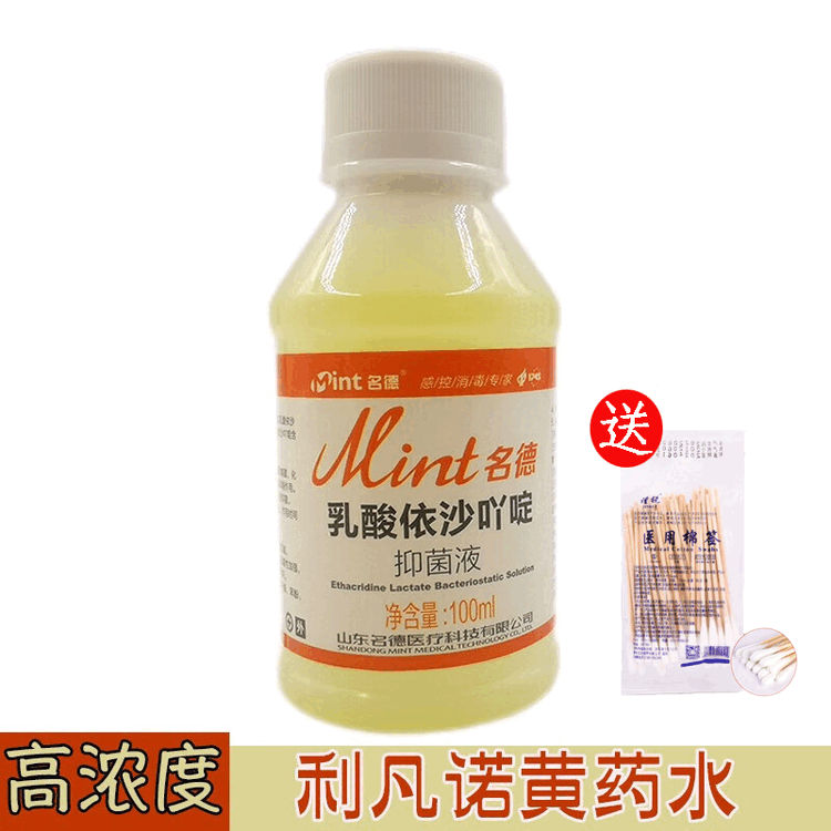 名德 利凡诺乳酸依沙吖皮肤清洗溶液黄纱布黄药水医用消毒液100ml 黄药水 10瓶+棉签1包