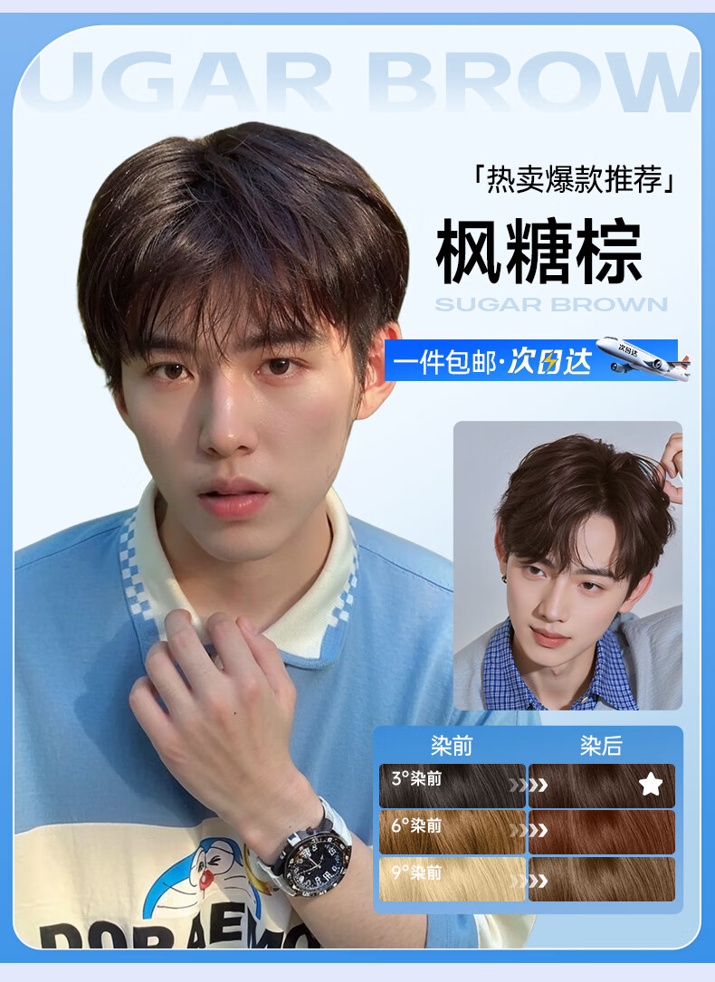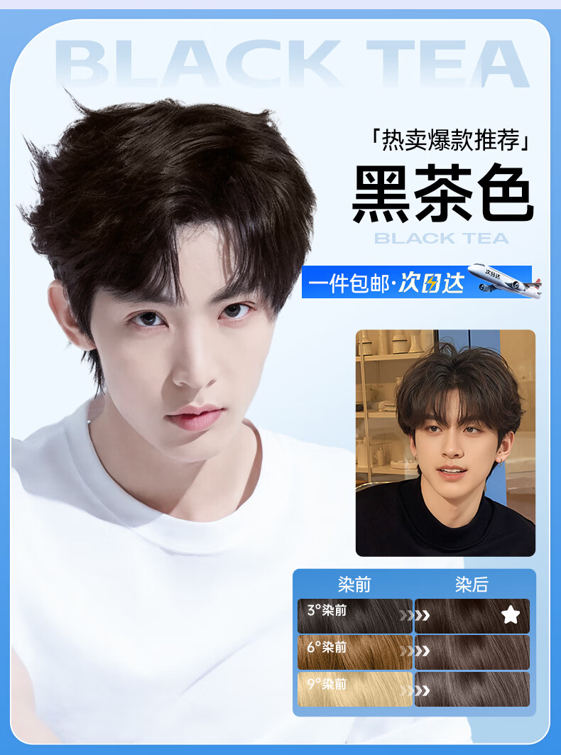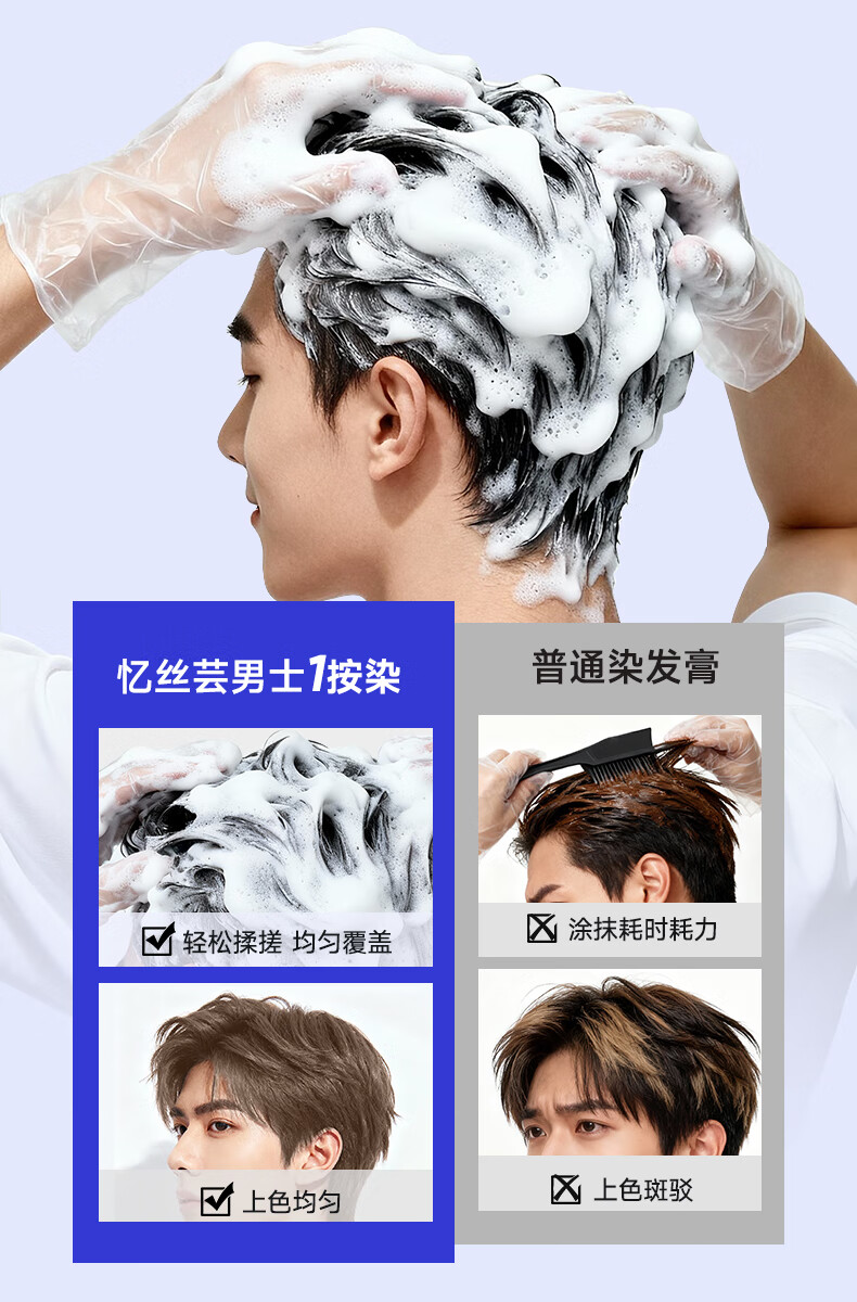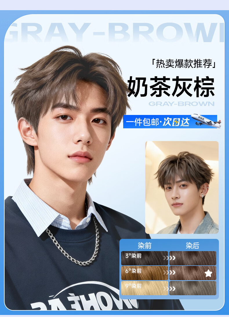 忆丝芸奶茶灰棕染发膏男士专用染发剂自己在家染不沾头皮植物漂发剂纯 亚麻雾茶