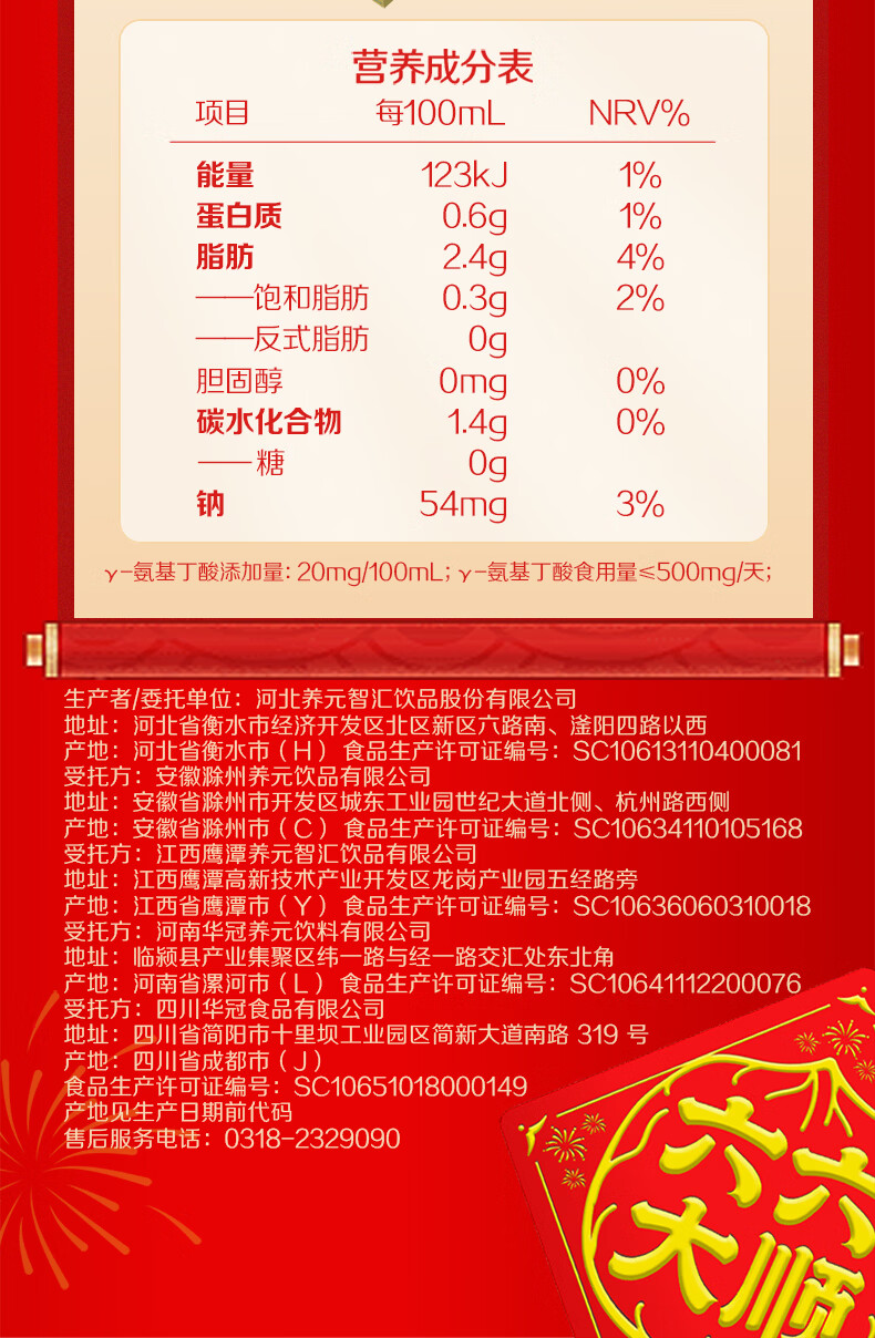 六个核桃六六大顺无糖型240ml*10罐*3箱核桃乳植物蛋白饮料整箱