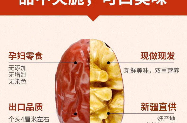 枣红栆杞枣夹核桃新疆特产新疆大红枣夹心仁派孕妇休闲零食包装大个坚果 特级大枣夹核桃4斤【新疆直发】
