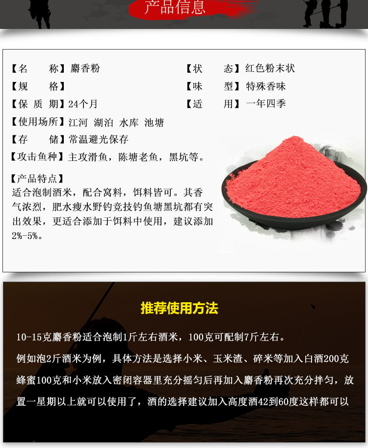 盈龙 麝香粉鲫鲤鱼饵料 草鱼青鱼 竞技黑坑 野钓滑鱼克星诱鱼小药窝料酒米钓鱼渔具用品 麝香粉30g