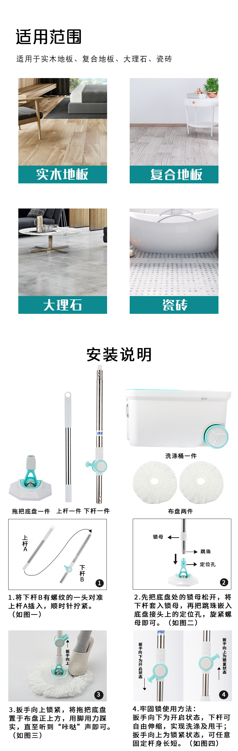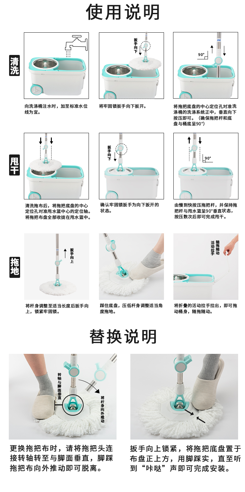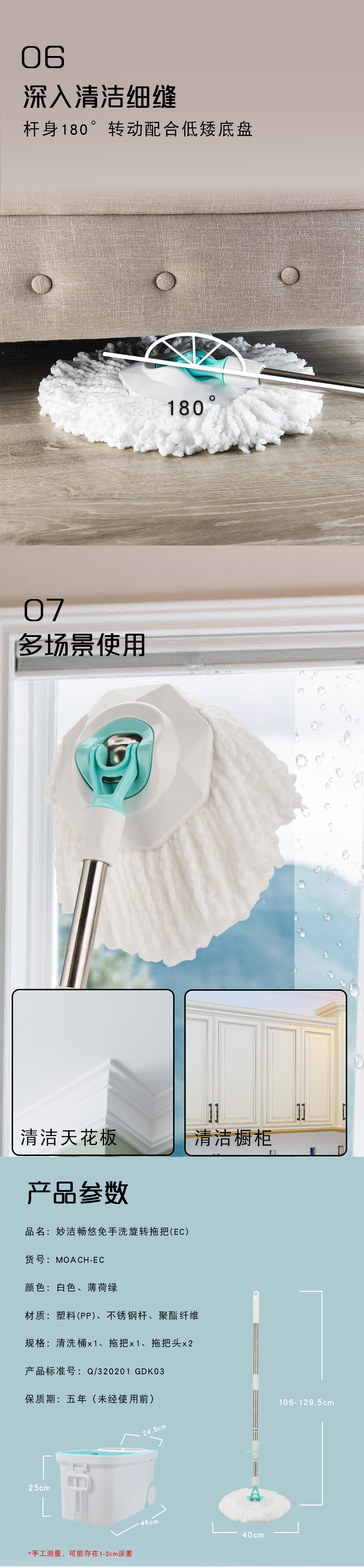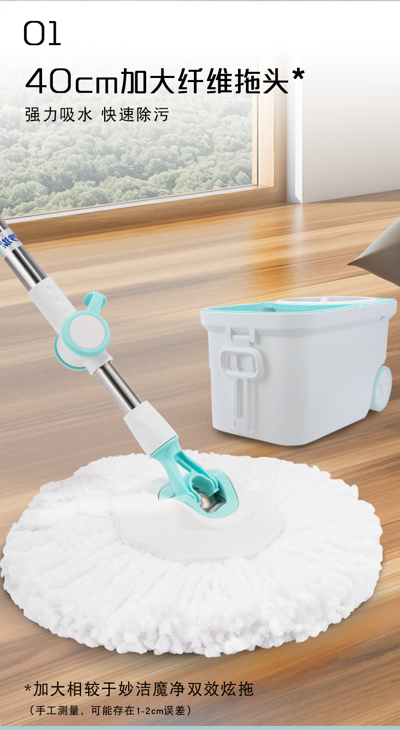 妙洁旋转拖把带桶套装 免手洗干湿两用家用一拖净懒人拖布木地板墩布 拖把共2个替换头
