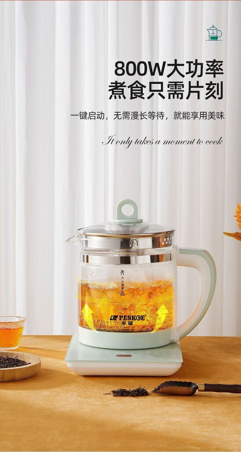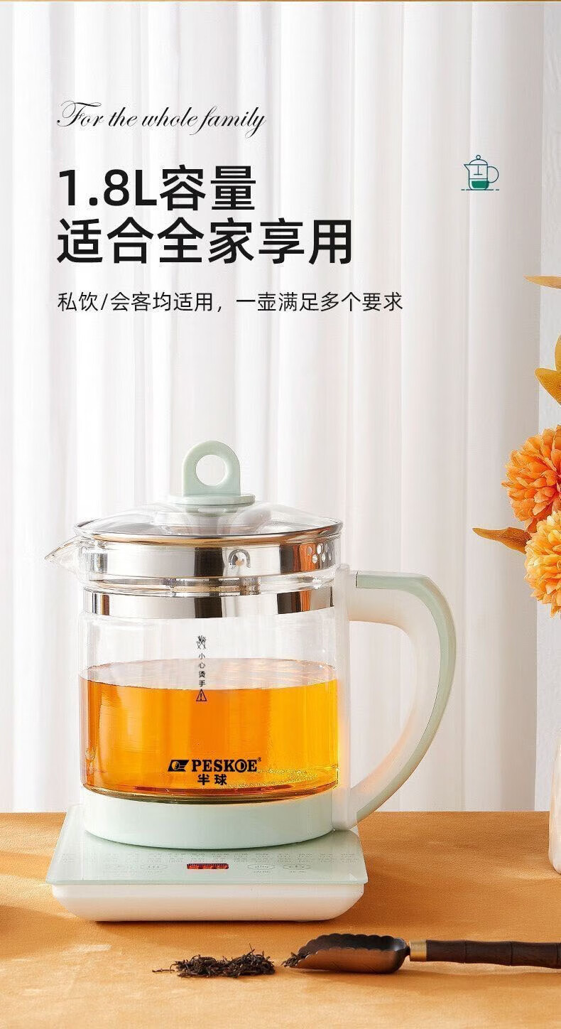 半球办公室泡茶养生壶家用烧水壶小型煎药壶全自动煮茶器玻璃保温 1.8L升级加厚玻璃+滤网+蛋架 1.8L