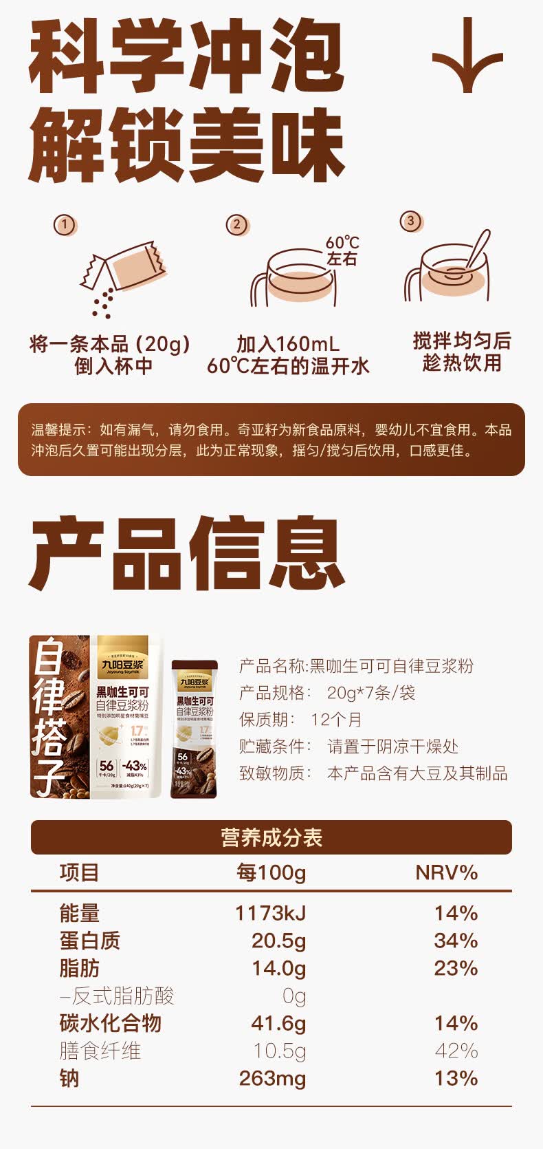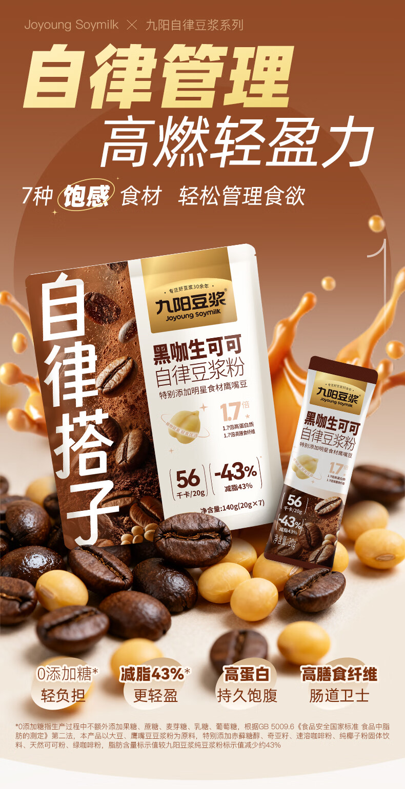 九阳豆浆黑咖生可可豆浆粉7条*20g自律豆浆粉代餐