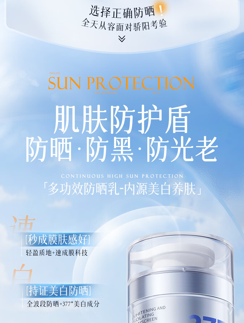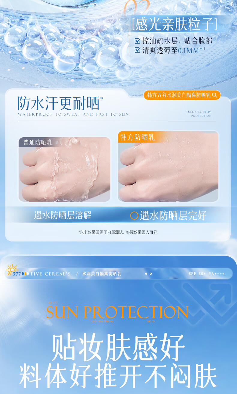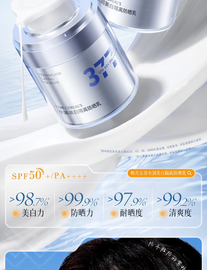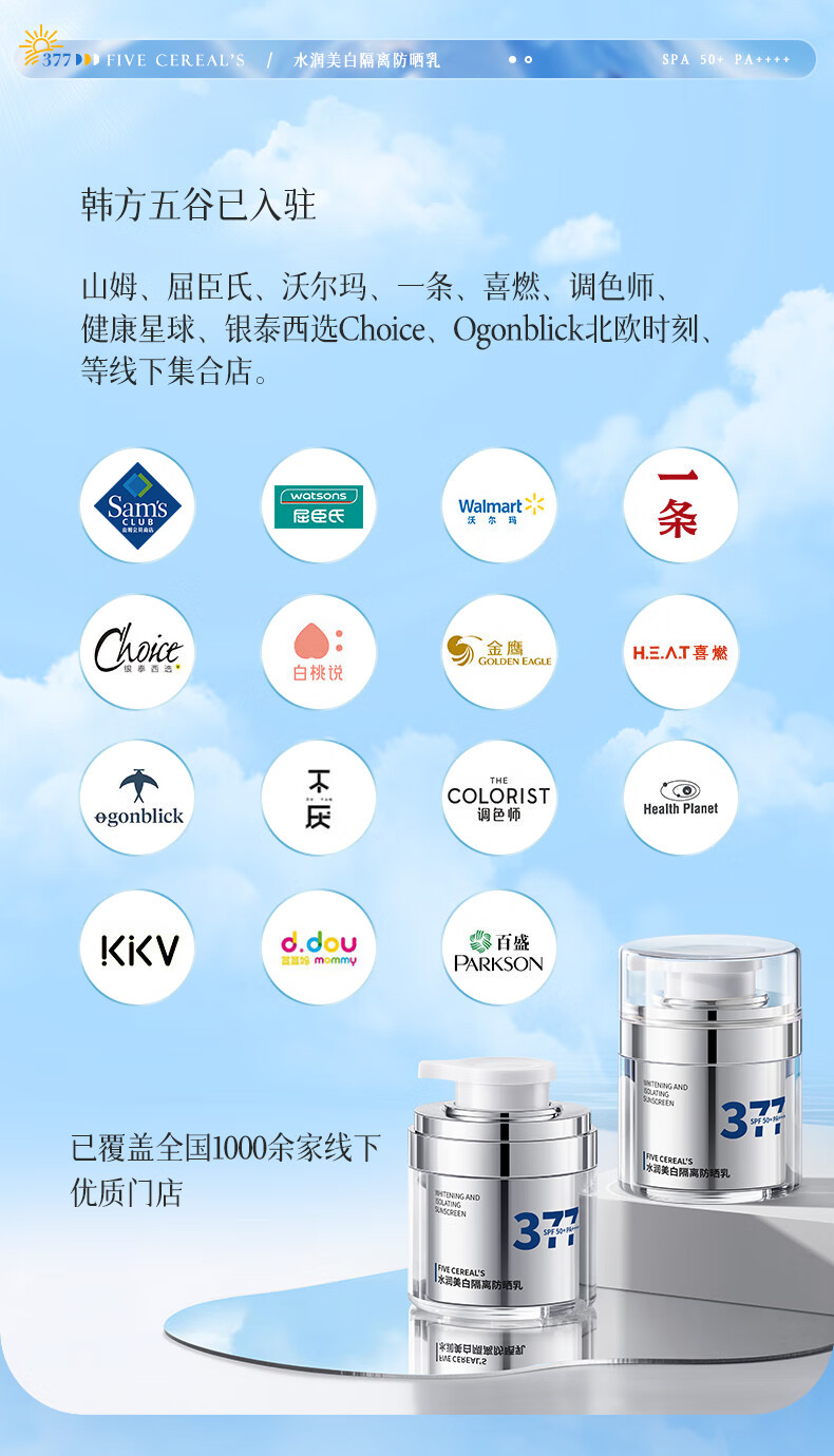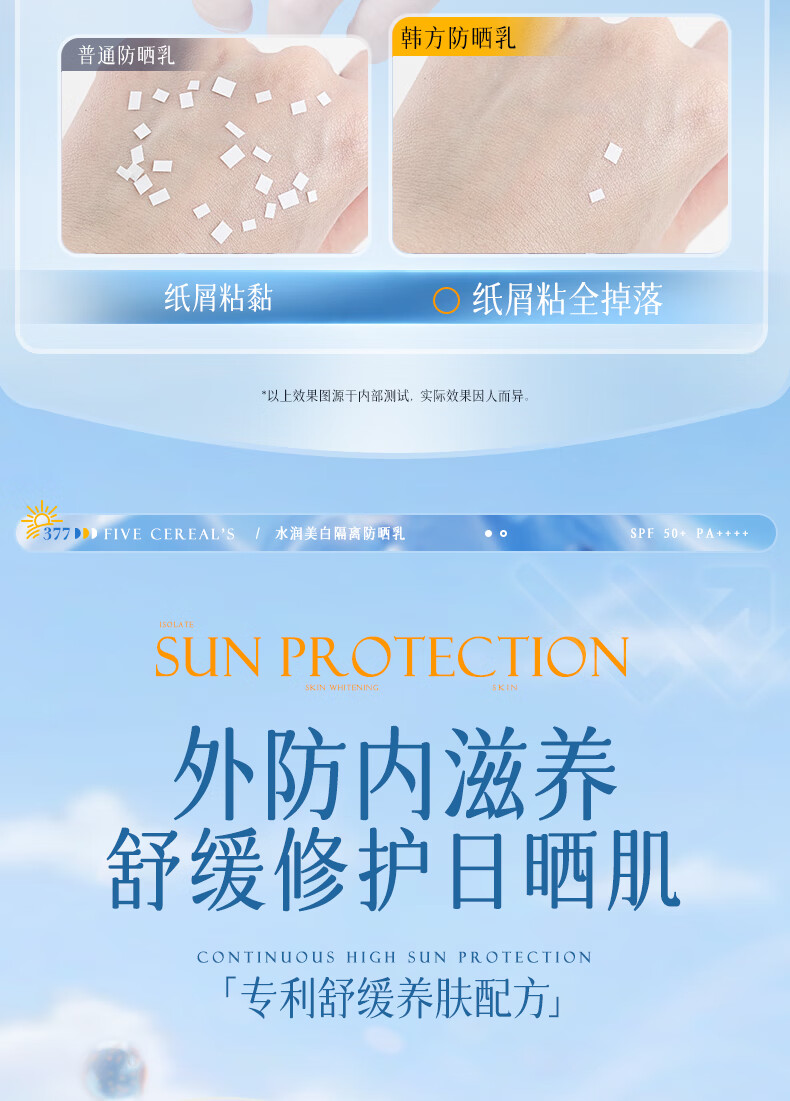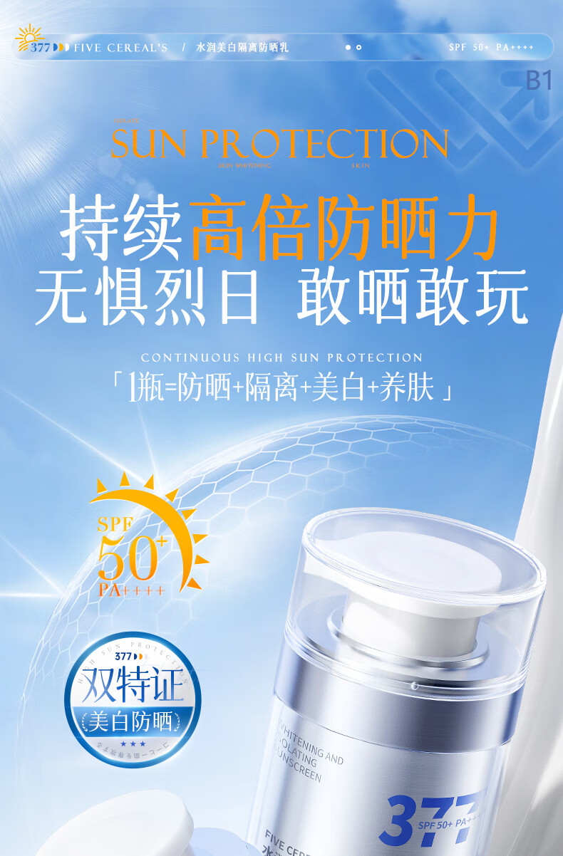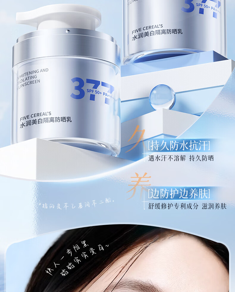 韩方五谷377美白防晒霜排榜第一男女士儿童高倍防紫外线隔离遮瑕三合一