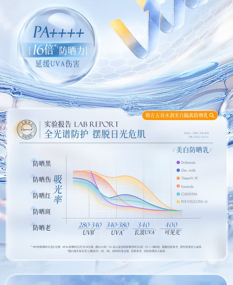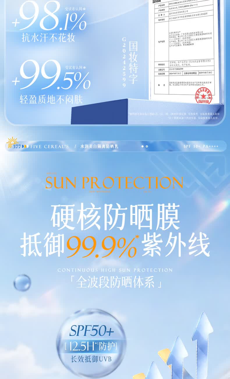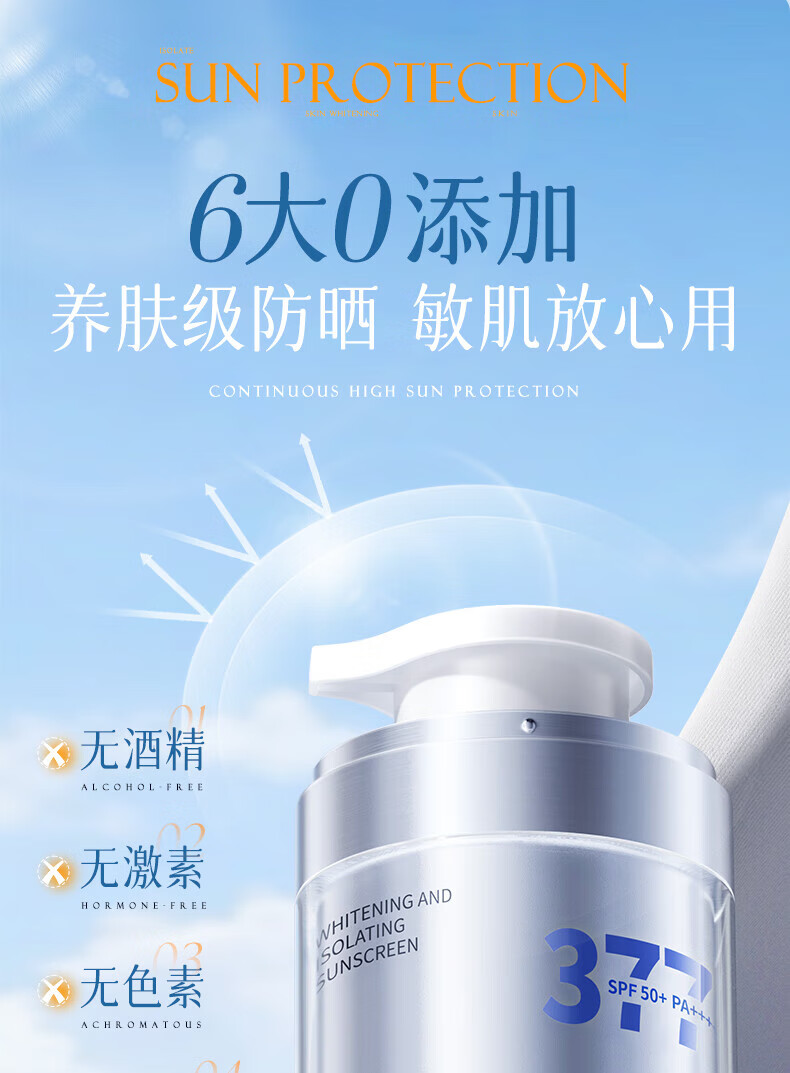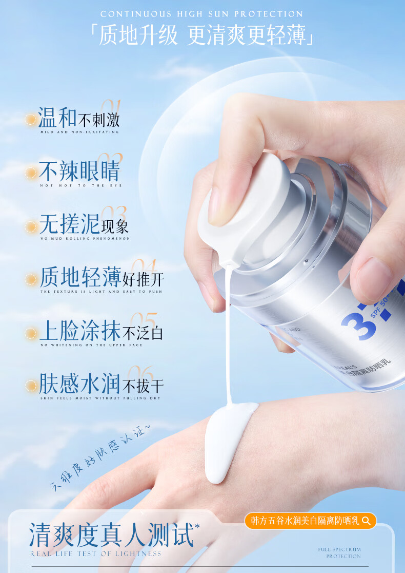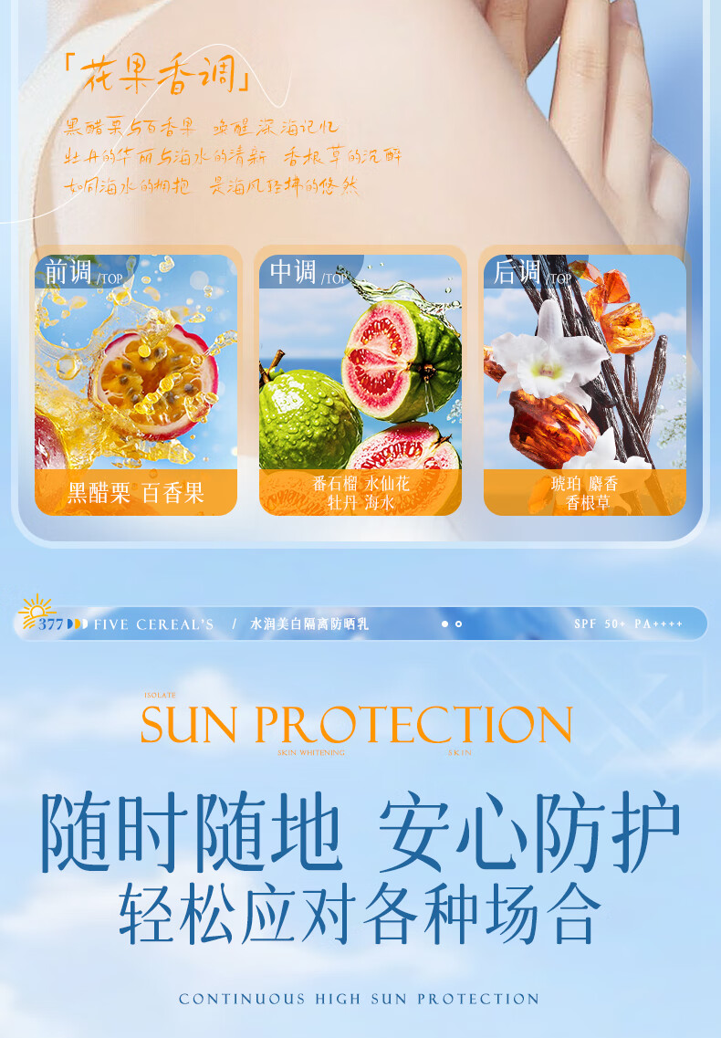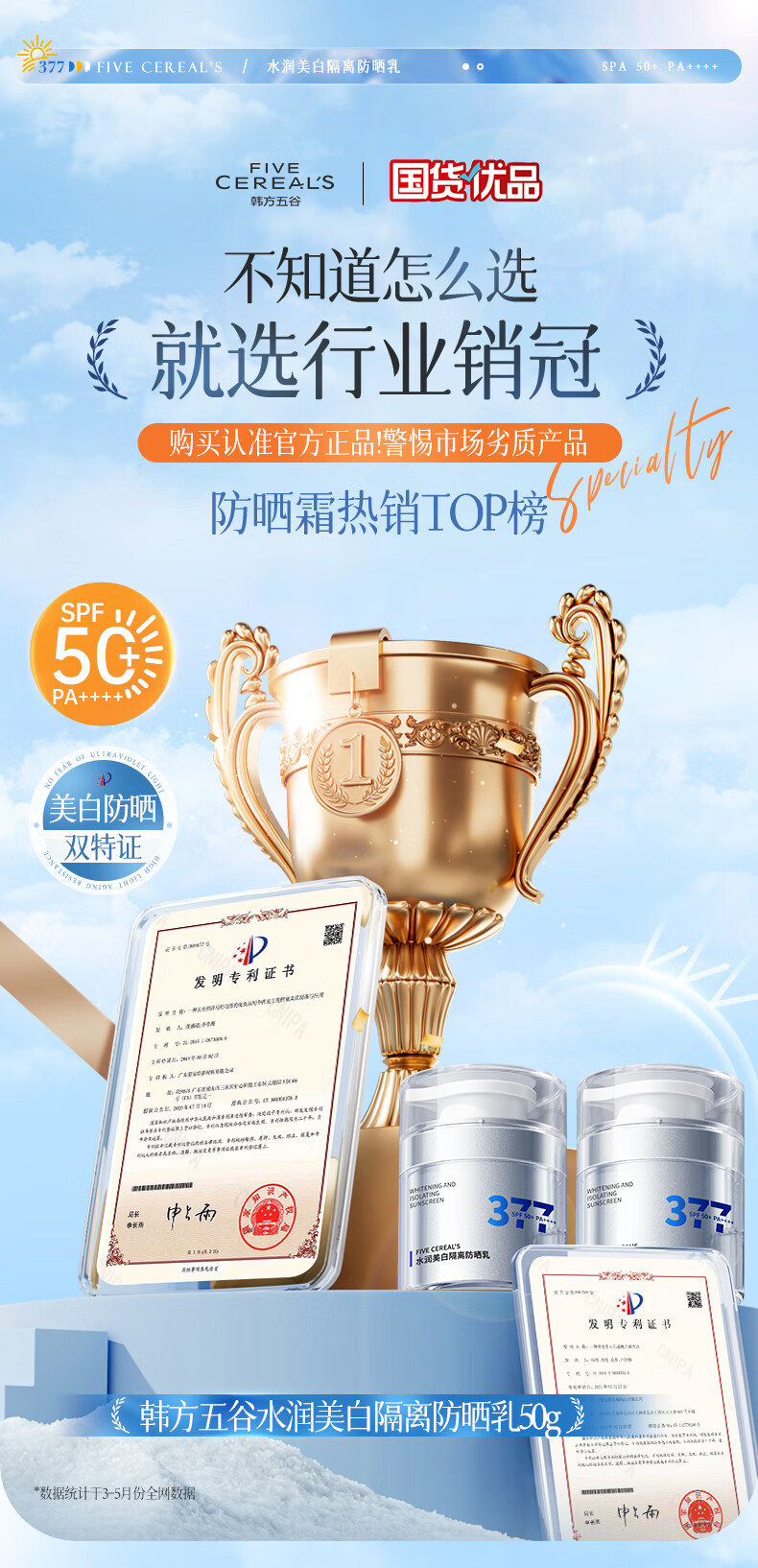 韩方五谷377美白防晒霜排榜第一男女士儿童高倍防紫外线隔离遮瑕三合一