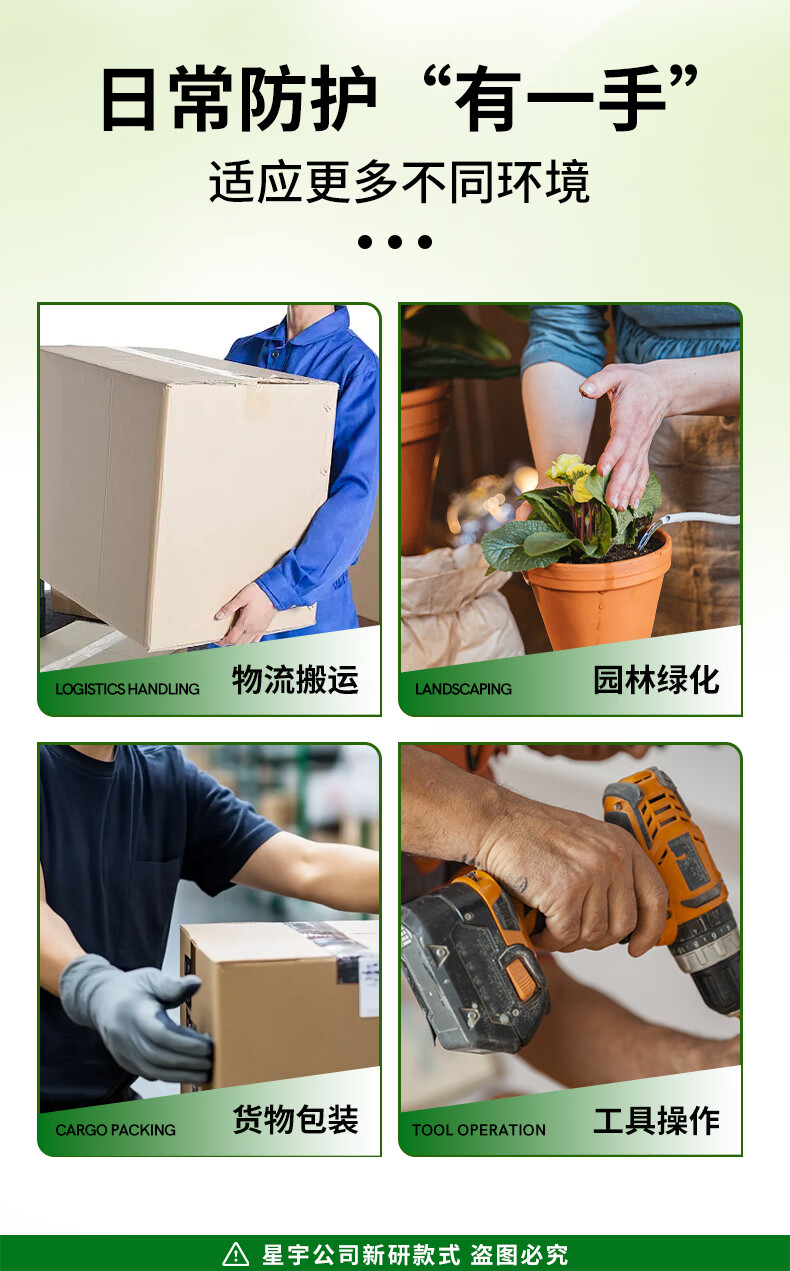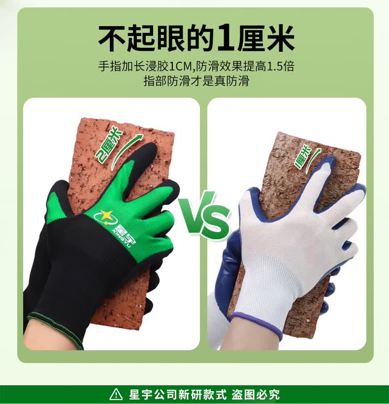 星宇 防滑透气乳胶磨砂耐磨耐用灵活不臭手木工钢筋工建筑工工业工地工作防护劳保手套 绿色款耐磨透气舒适【磨砂工艺更耐用】 L 6双