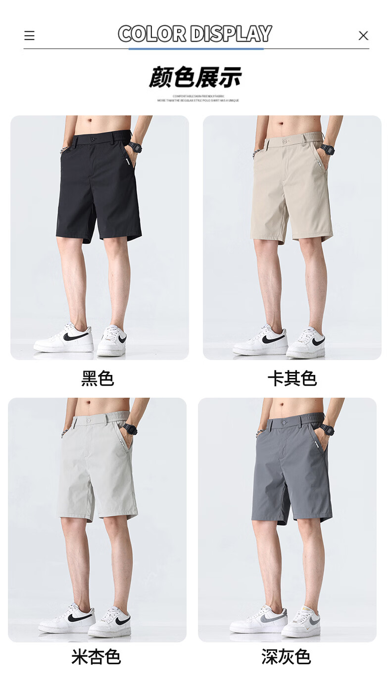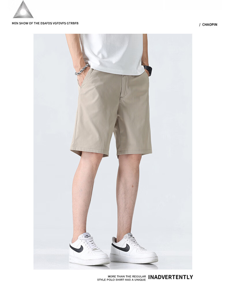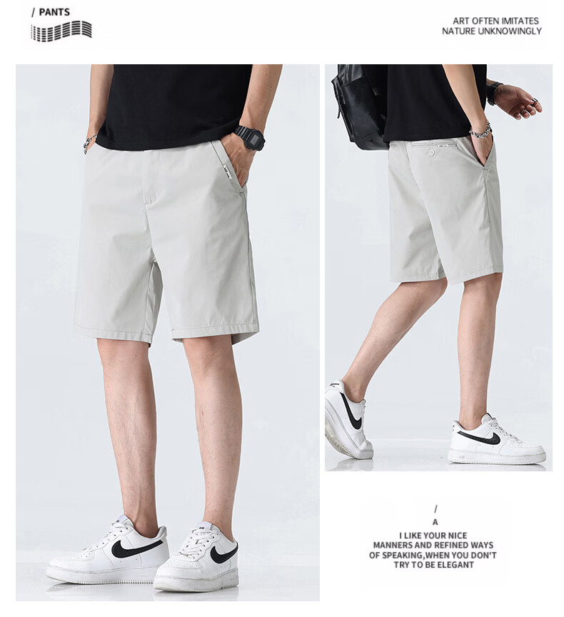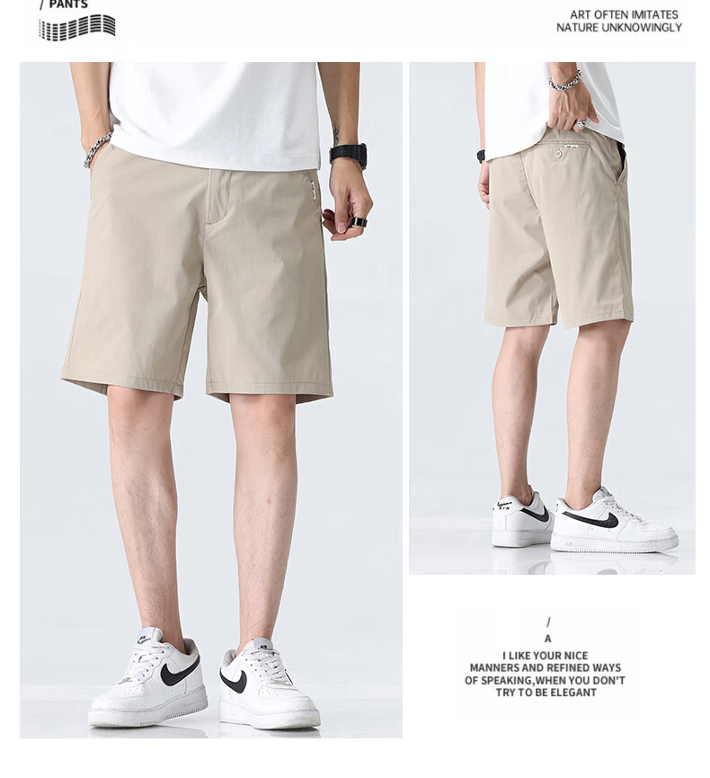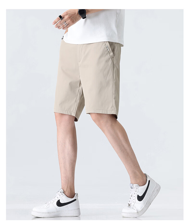 真维斯男士冰丝休闲短裤2026春季新款宽松薄款中裤透气五分裤子男 卡其 M