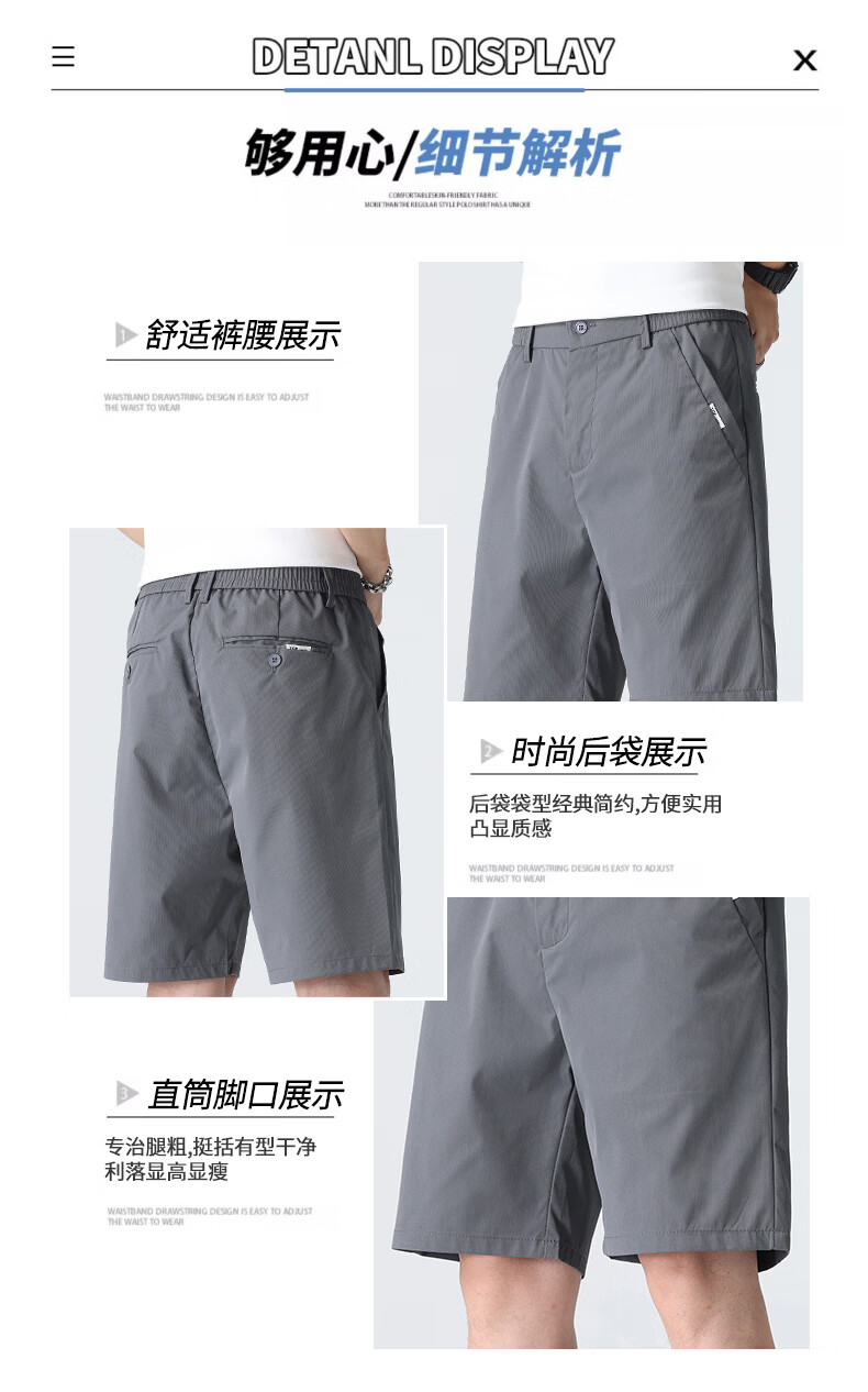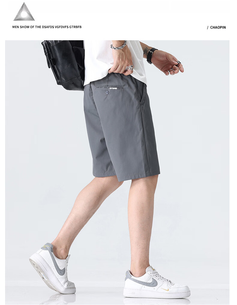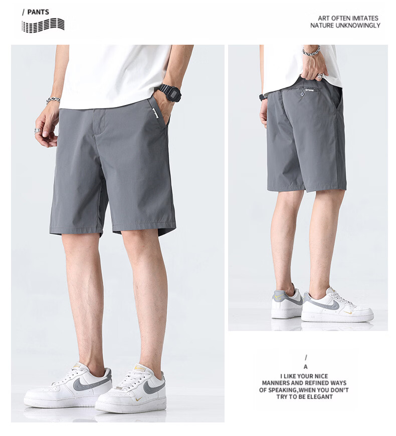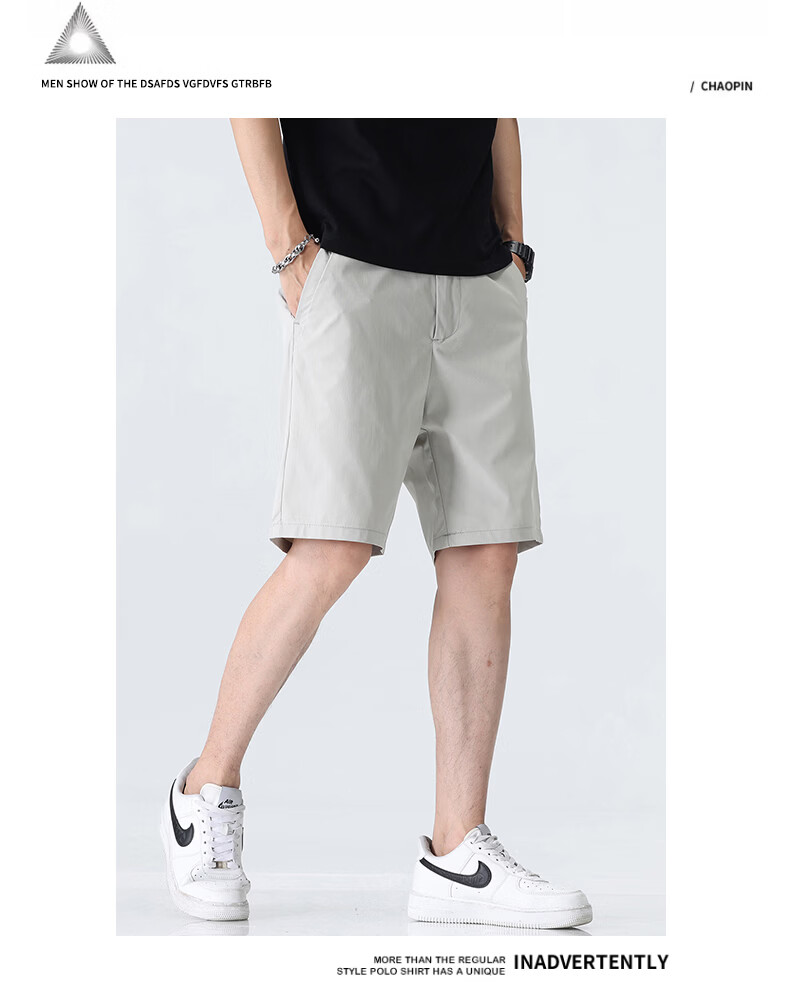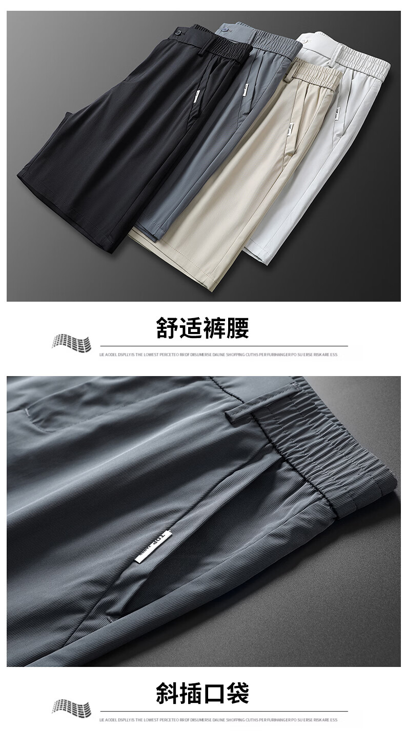 真维斯男士冰丝休闲短裤2026春季新款宽松薄款中裤透气五分裤子男 卡其 M