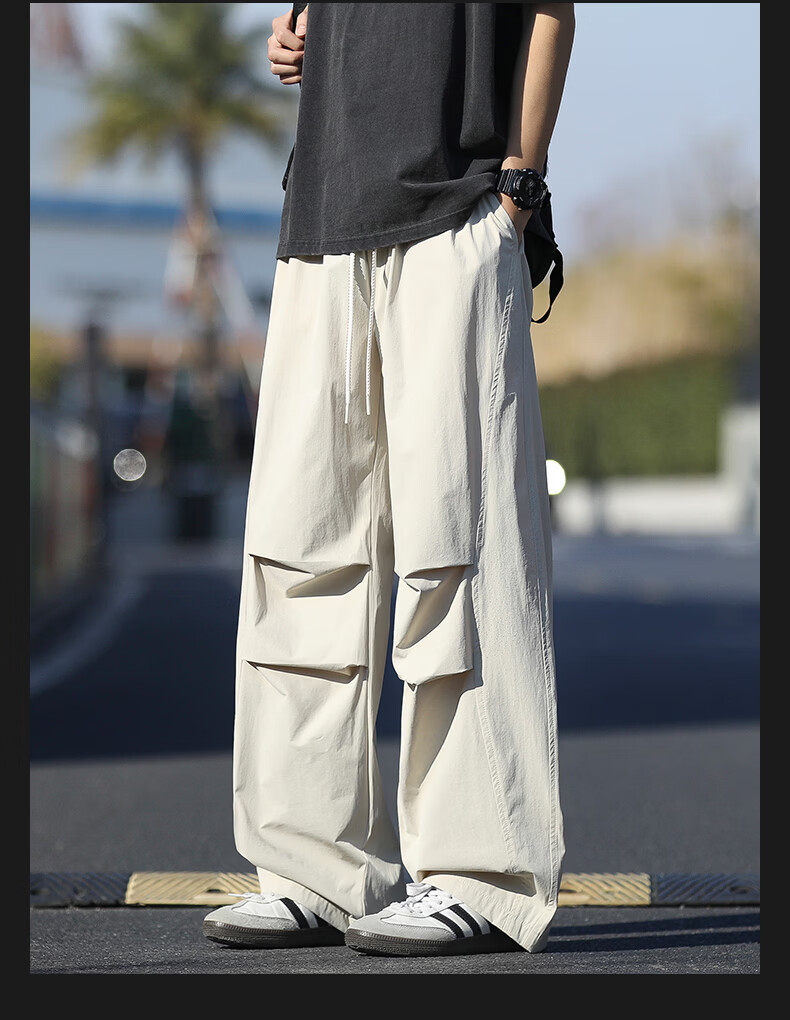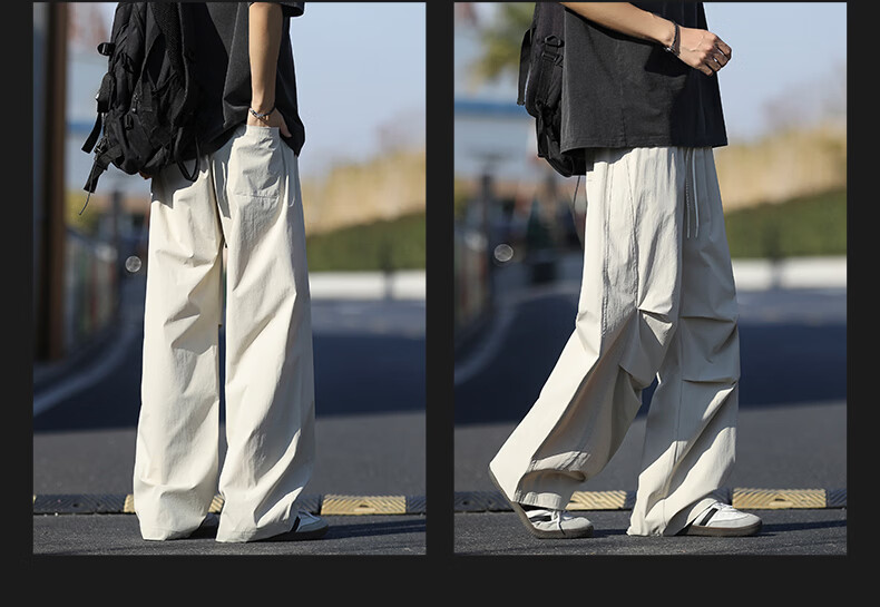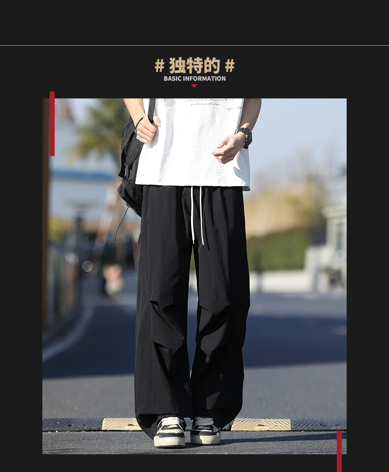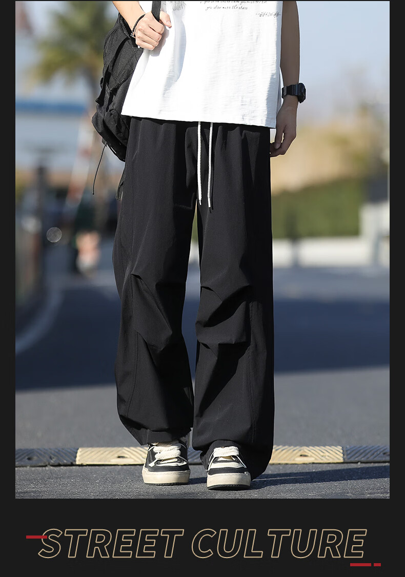 真维斯冰丝透气休闲裤男夏季薄款2026新款春季宽松直筒黑色速干阔腿裤子 黑色 M