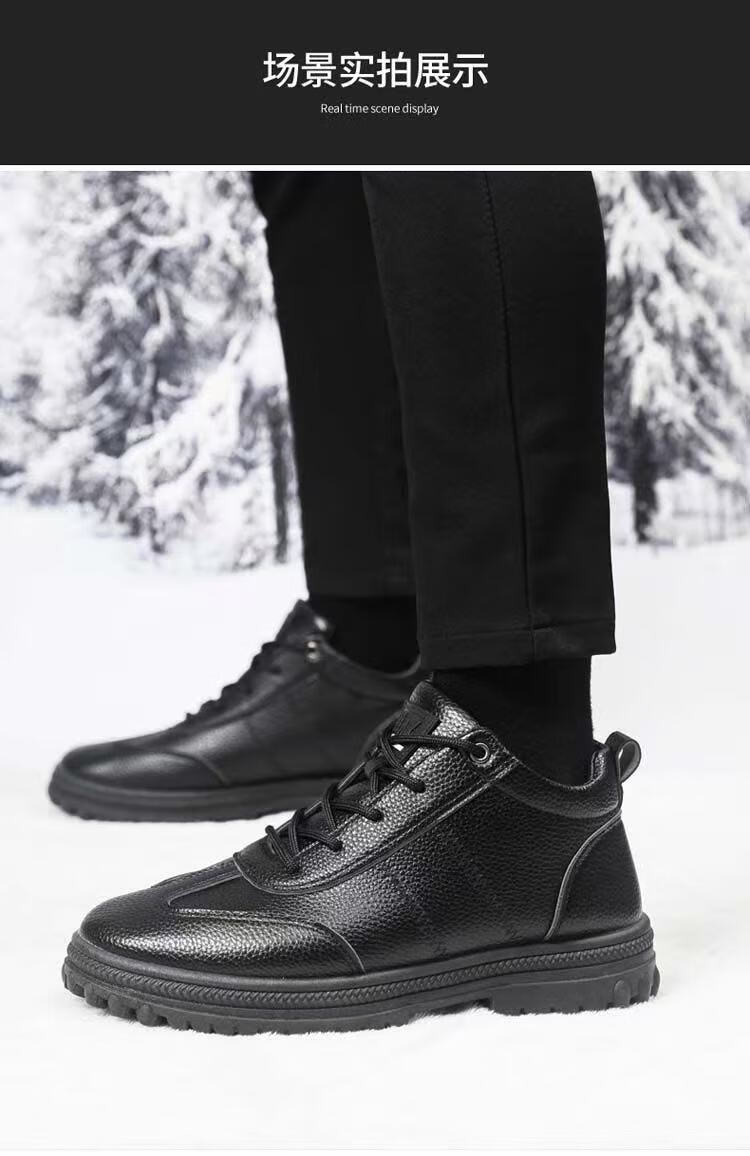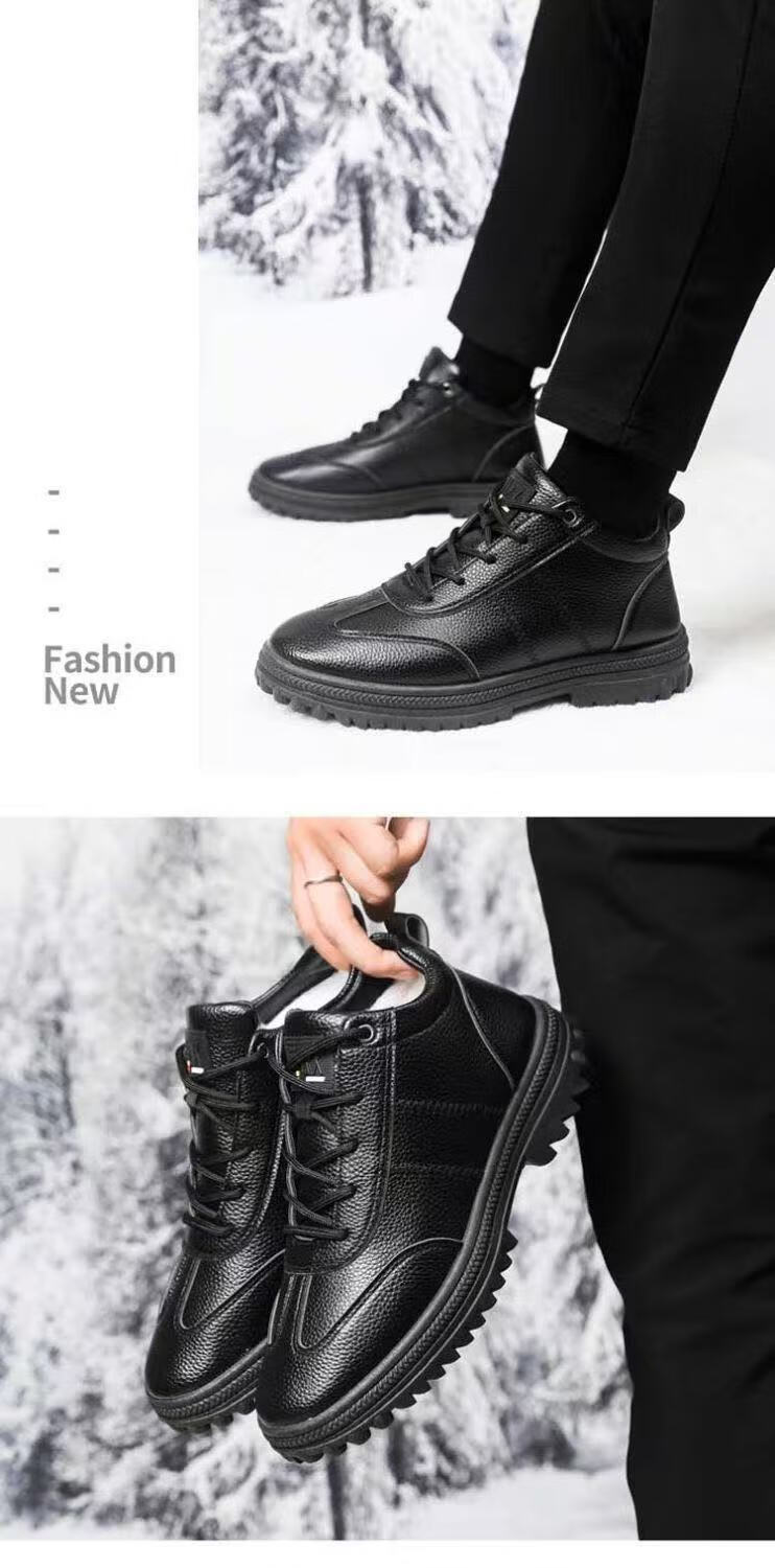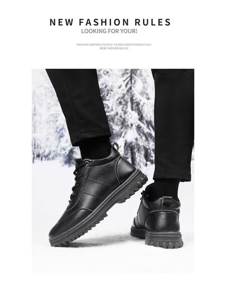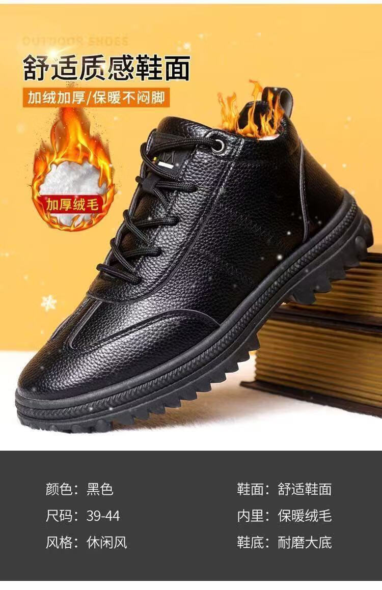 稻草人(MEXICAN)冬季加绒保暖男士棉鞋防水防滑加厚休闲皮鞋潮流中老年高帮雪地靴 黑色 42