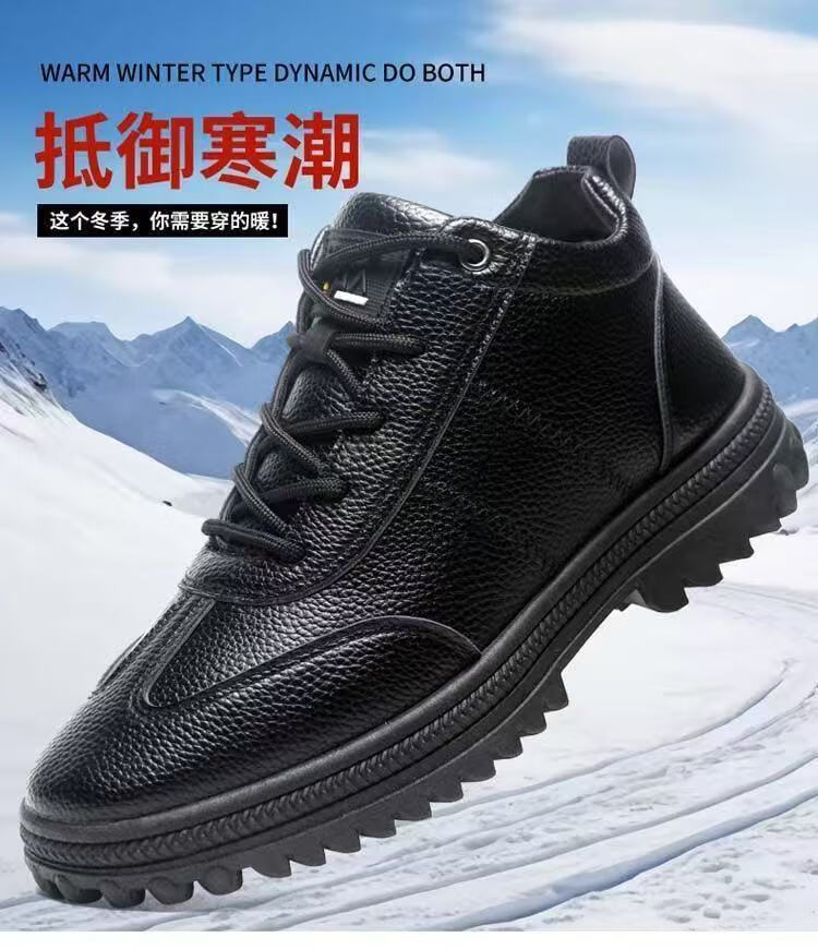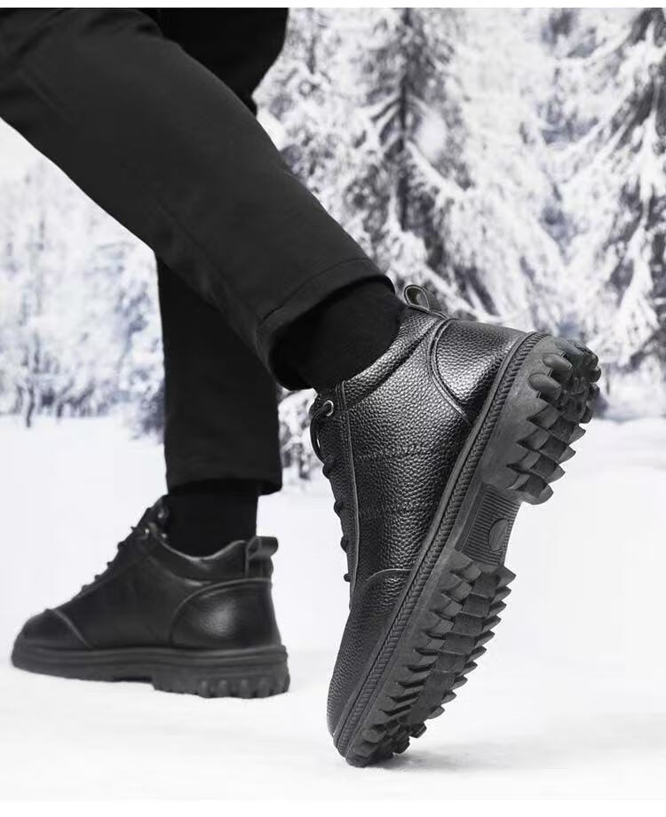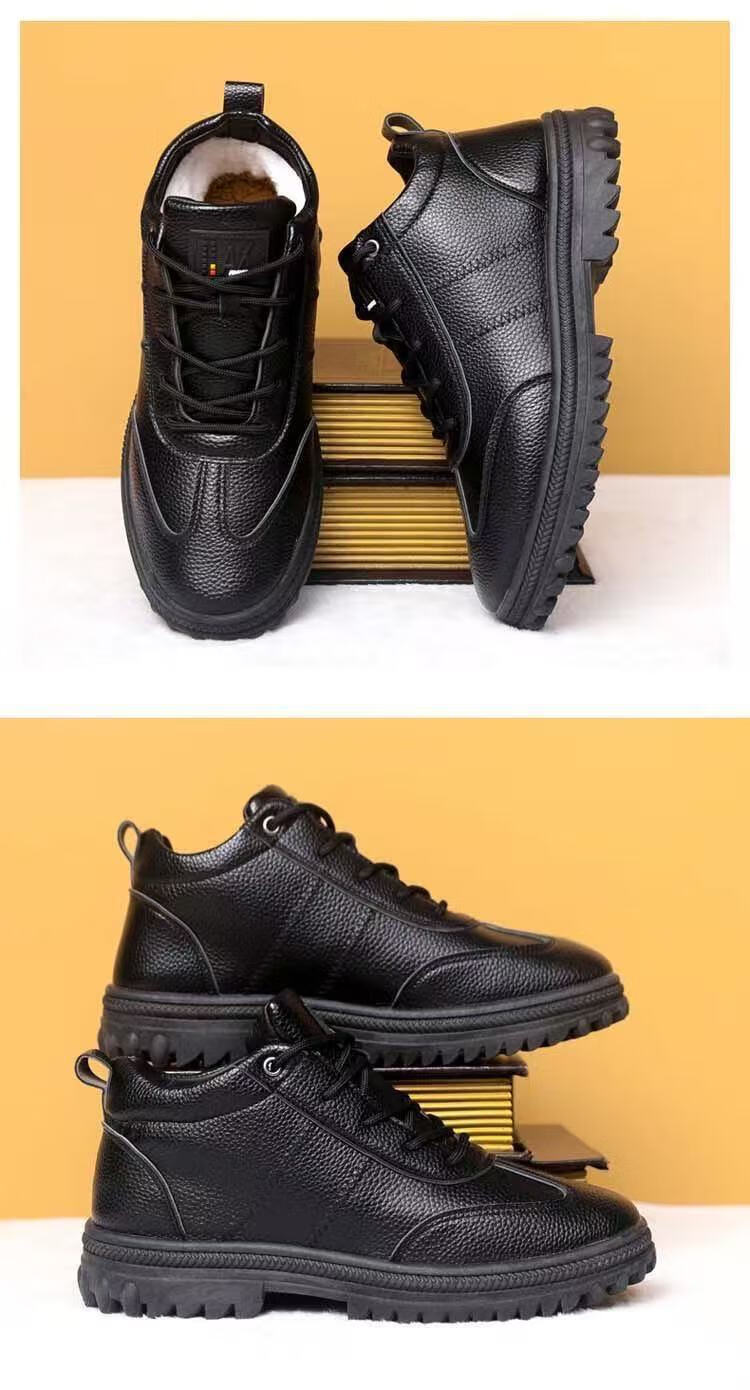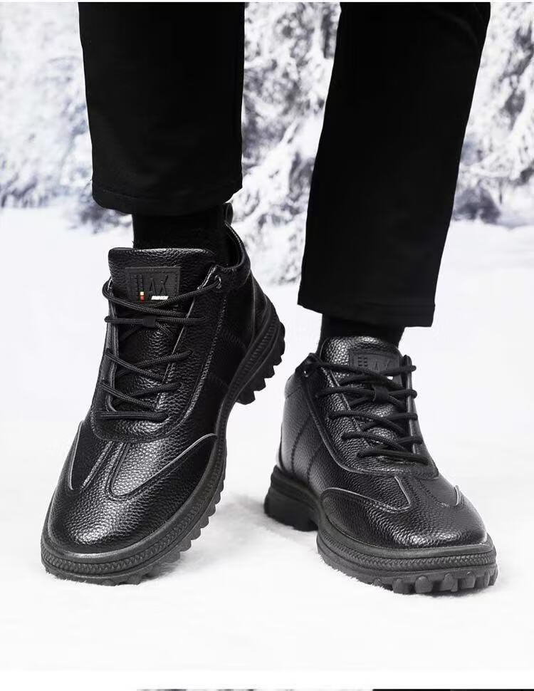 稻草人(MEXICAN)冬季加绒保暖男士棉鞋防水防滑加厚休闲皮鞋潮流中老年高帮雪地靴 黑色 42