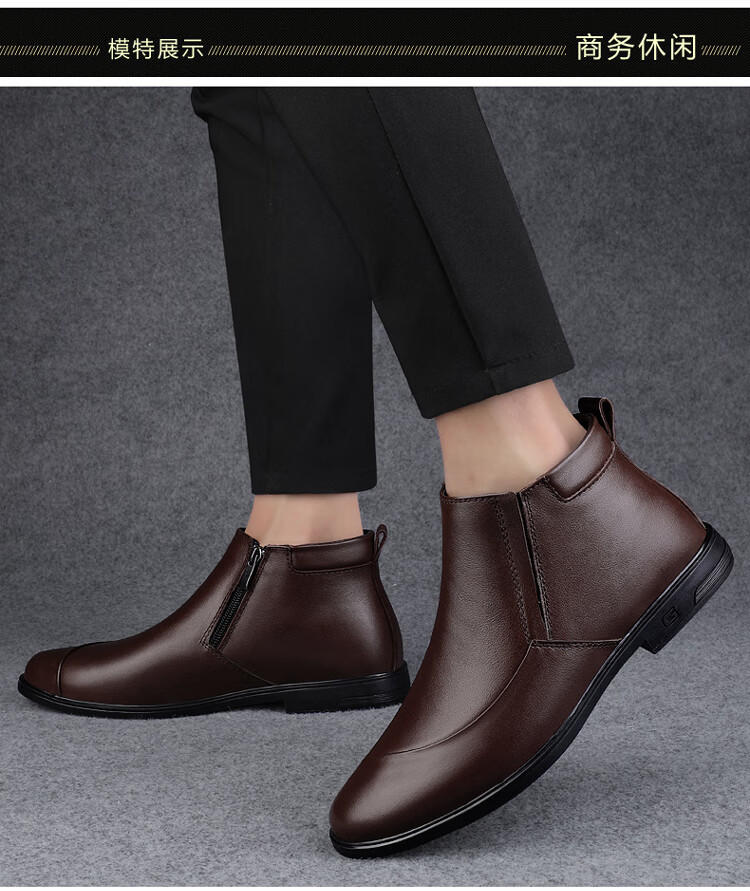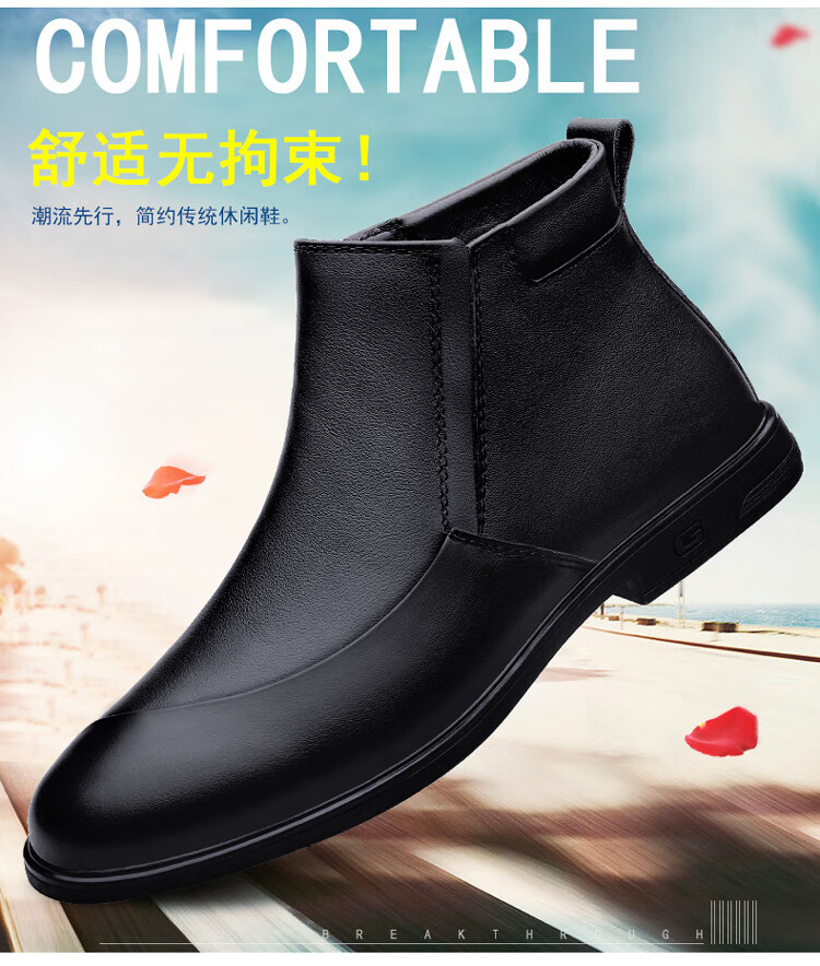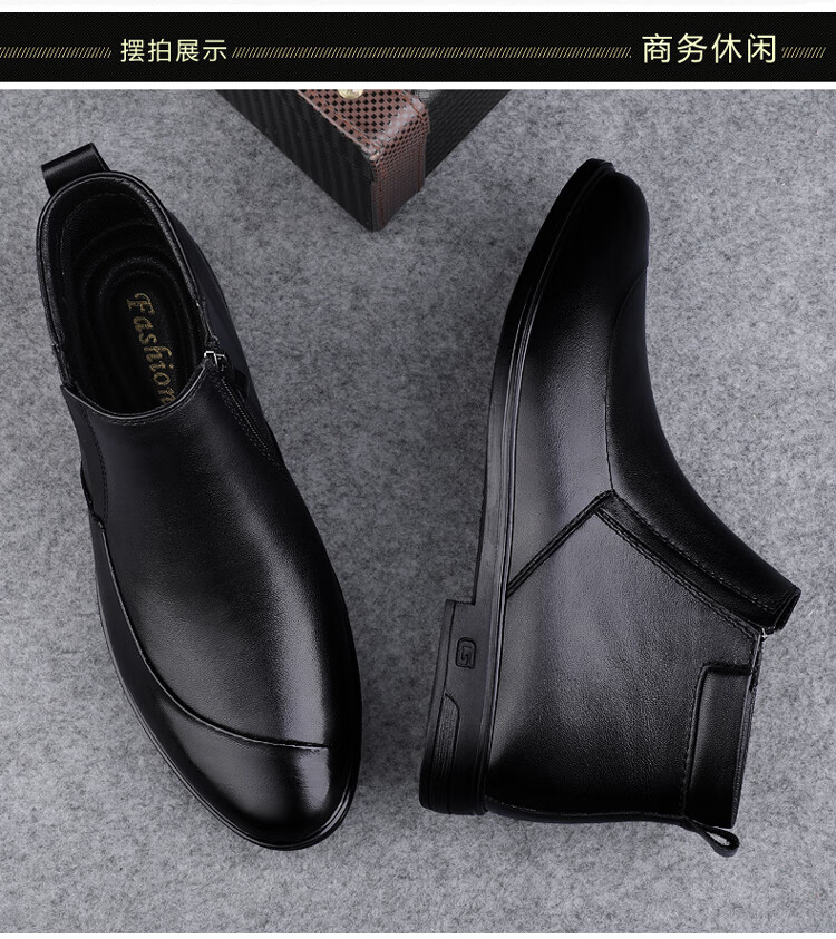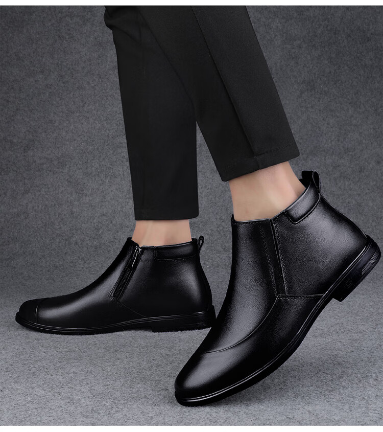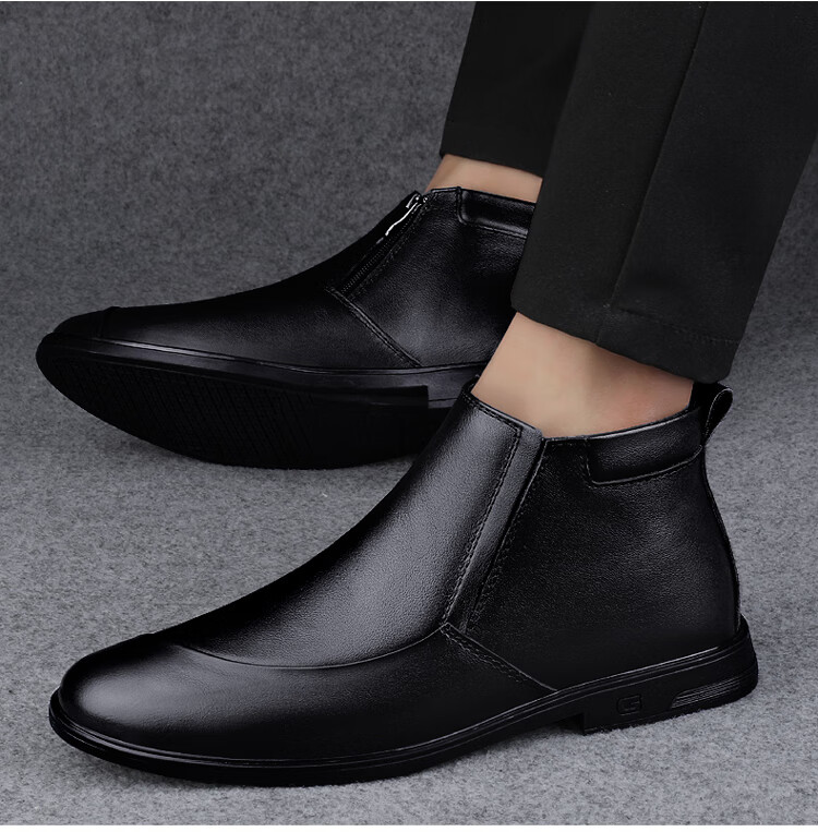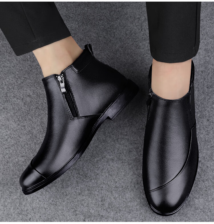 稻草人(MEXICAN)冬季真皮拉链男款牛皮45英伦大码马丁靴46加绒保暖高帮皮鞋小码36 黑色【加绒保暖】 36