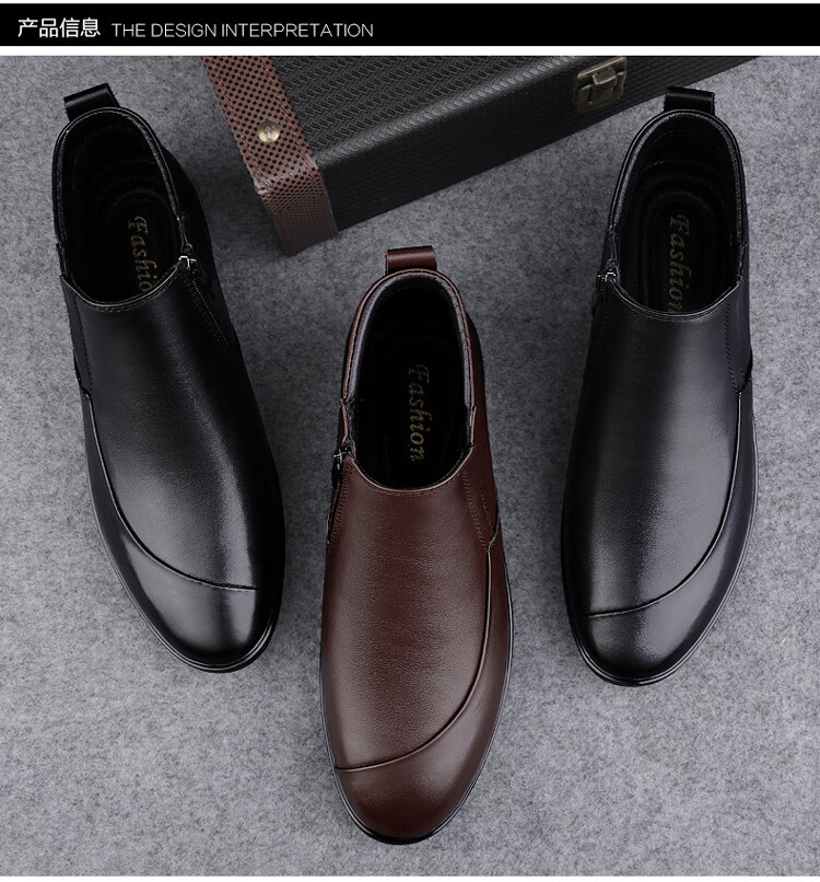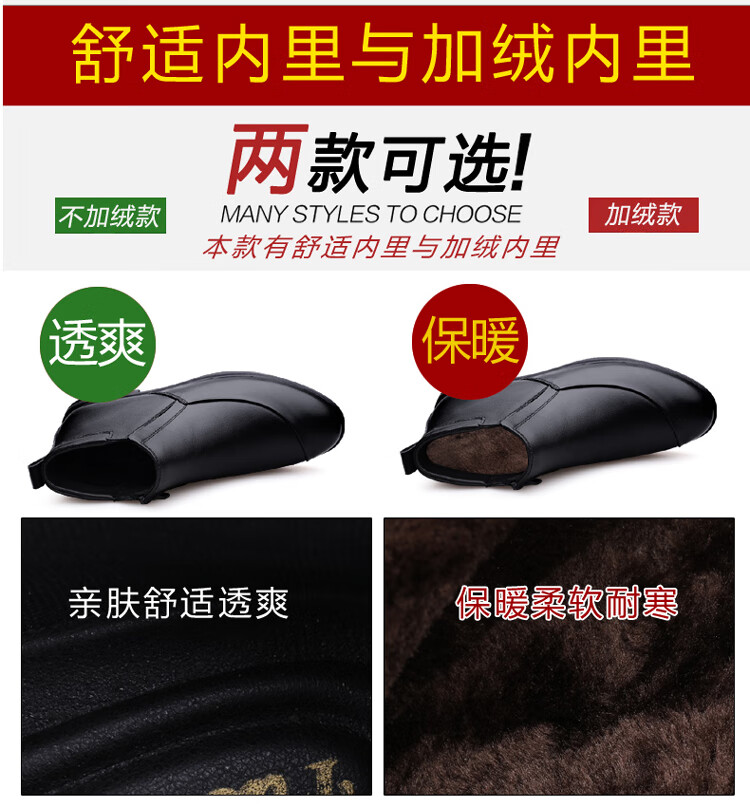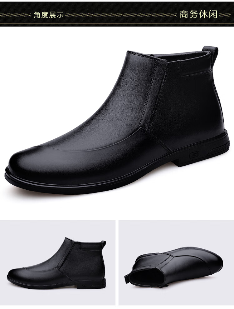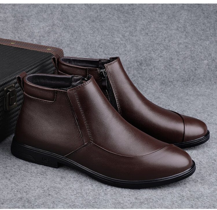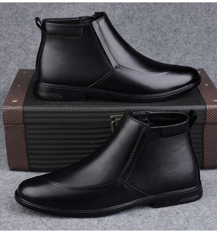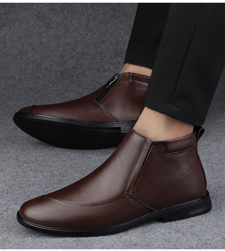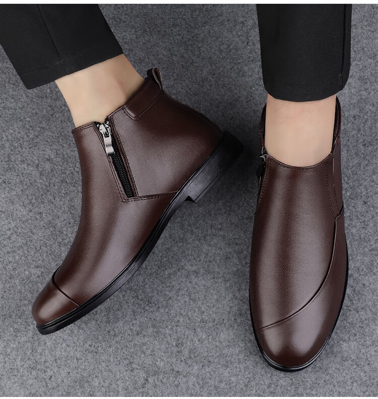 稻草人(MEXICAN)冬季真皮拉链男款牛皮45英伦大码马丁靴46加绒保暖高帮皮鞋小码36 黑色【加绒保暖】 36