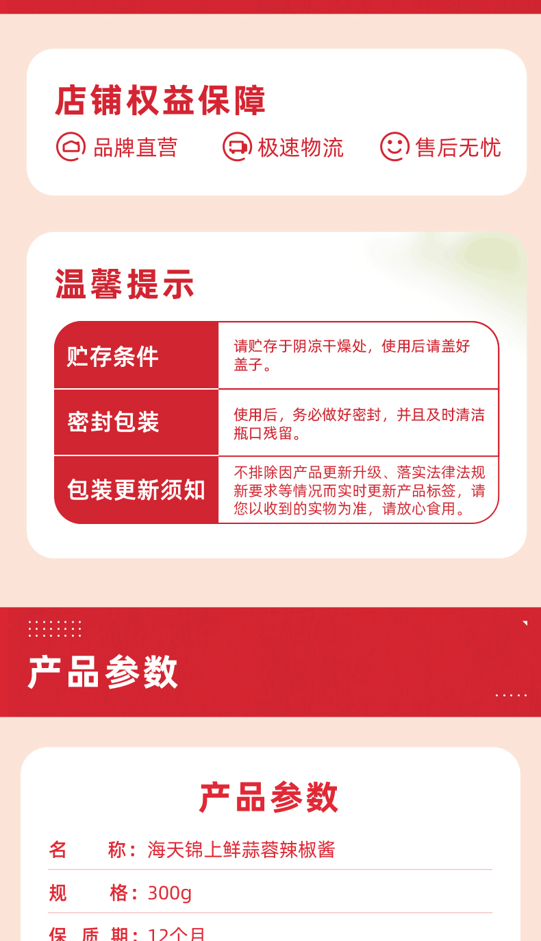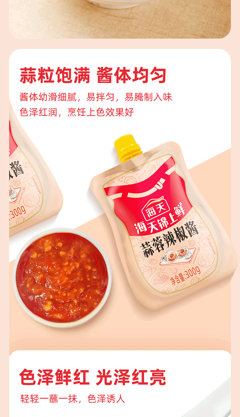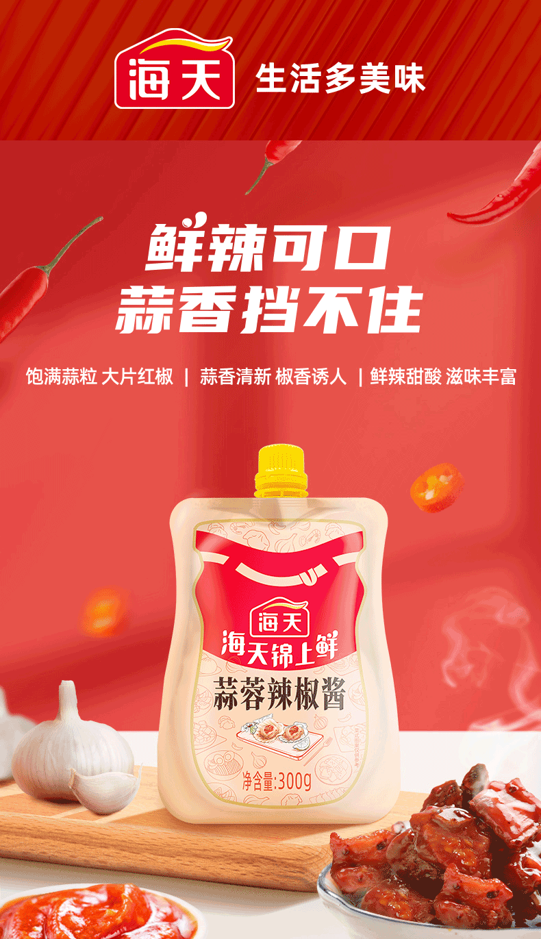 海天锦上鲜蒜蓉辣椒酱300g 辣椒酱 蒜蓉辣椒酱 拌饭拌面 炒菜调味