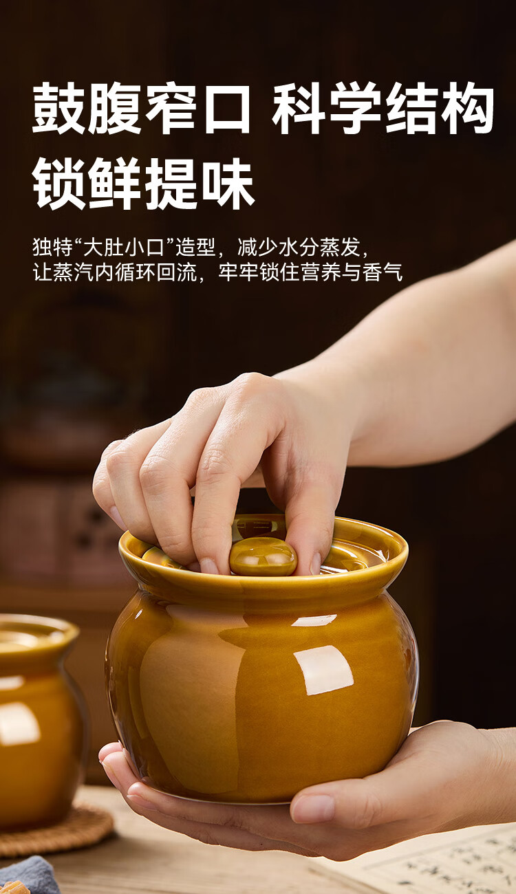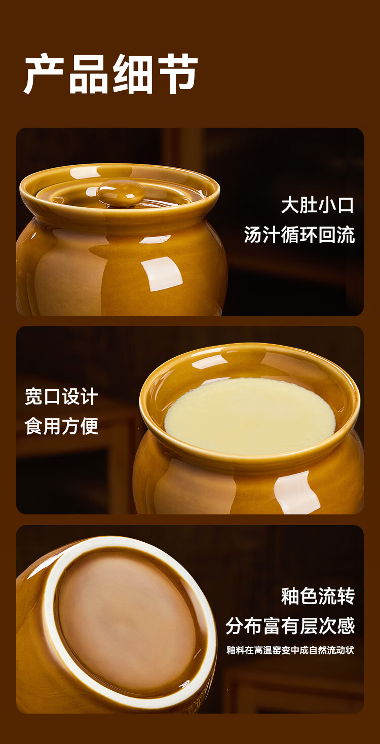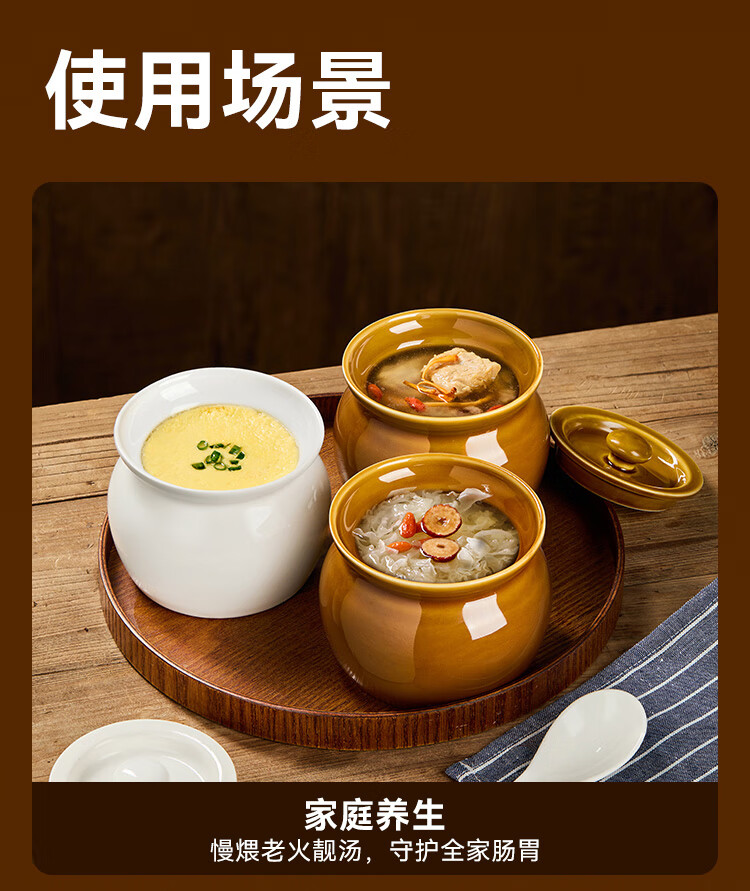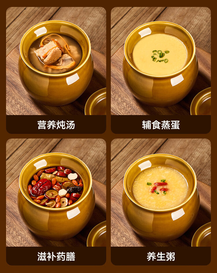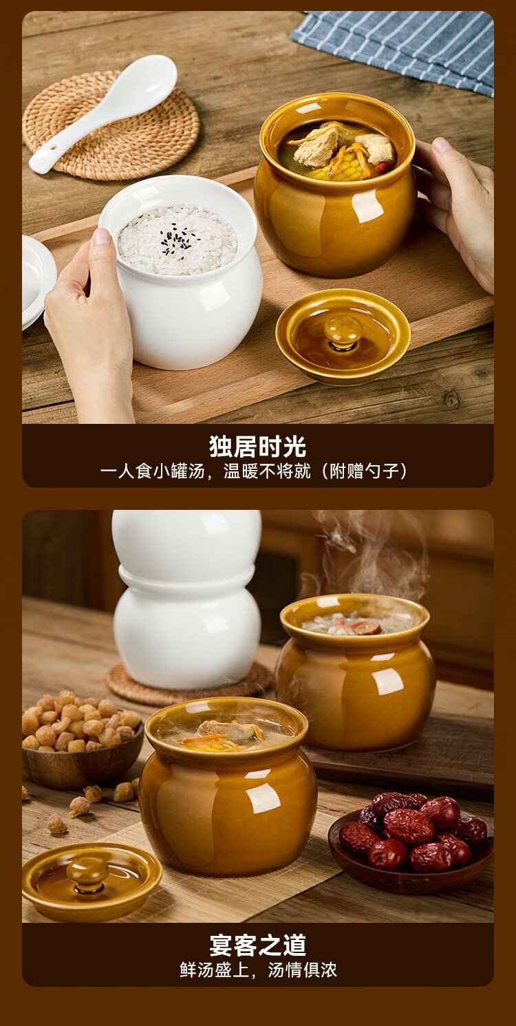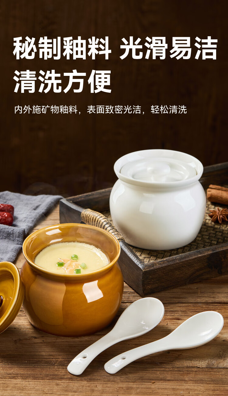 京东京造 炖盅【传统瓦罐】陶瓷蒸蛋辅食带盖赠勺子 瓦罐450ML棕色2只装