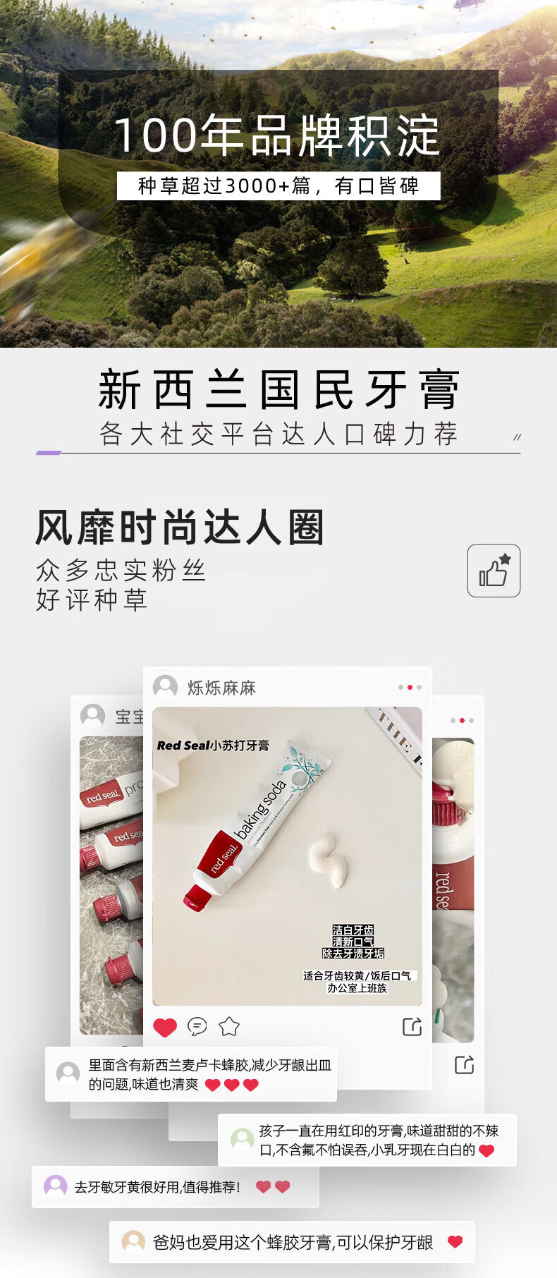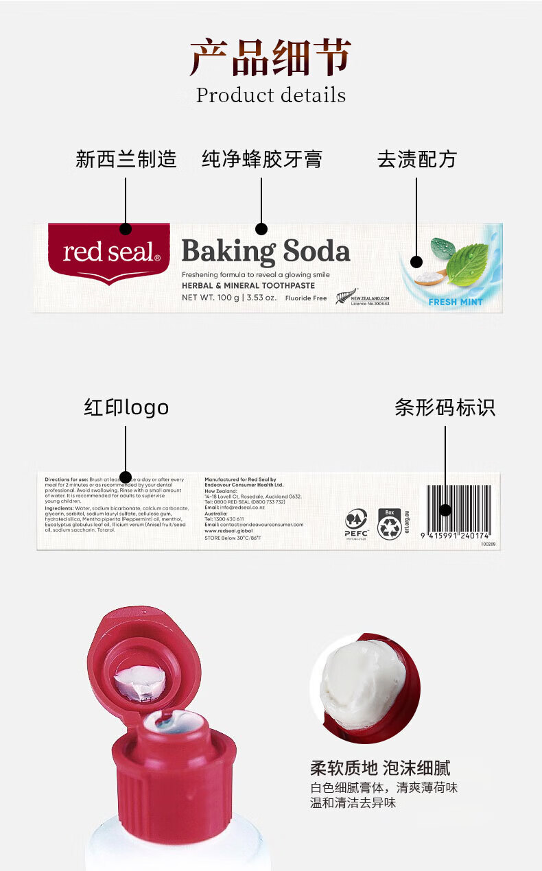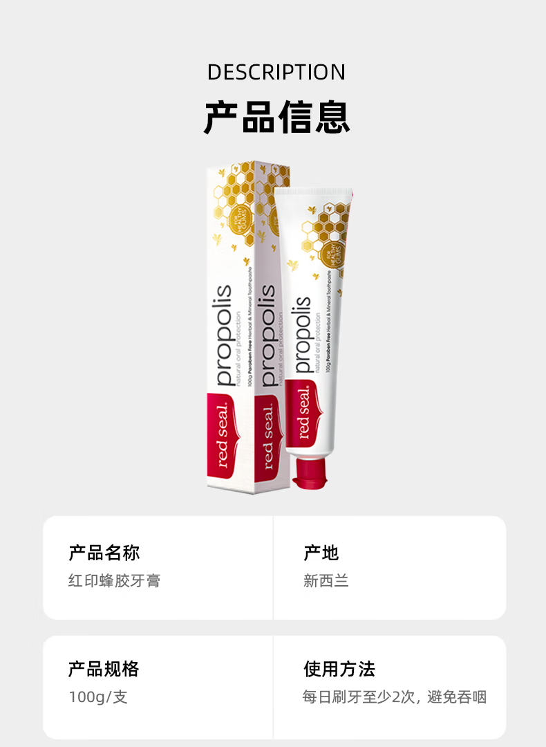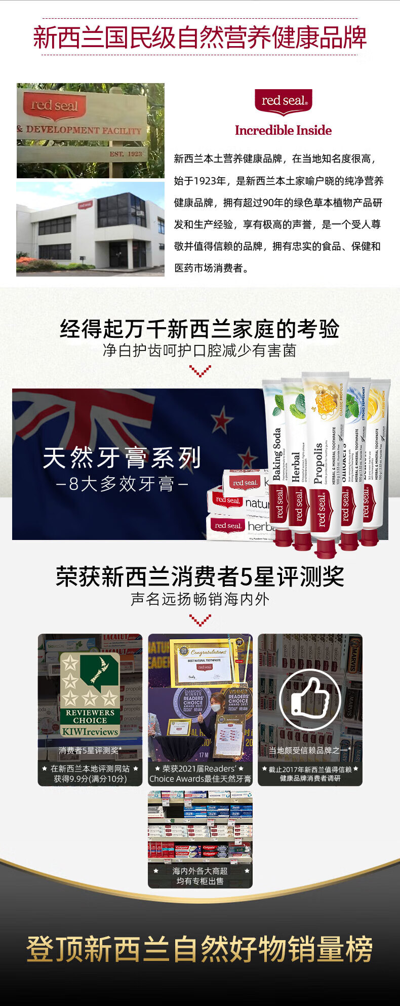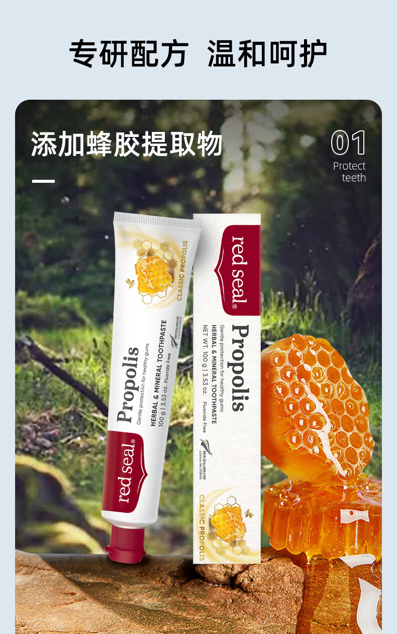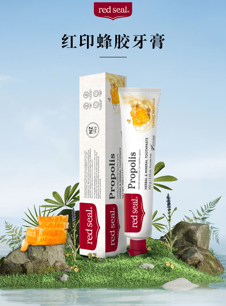 红印(Red seal) 新西兰进口蜂胶牙膏100g 无氟牙膏 清洁口气 清洁护龈