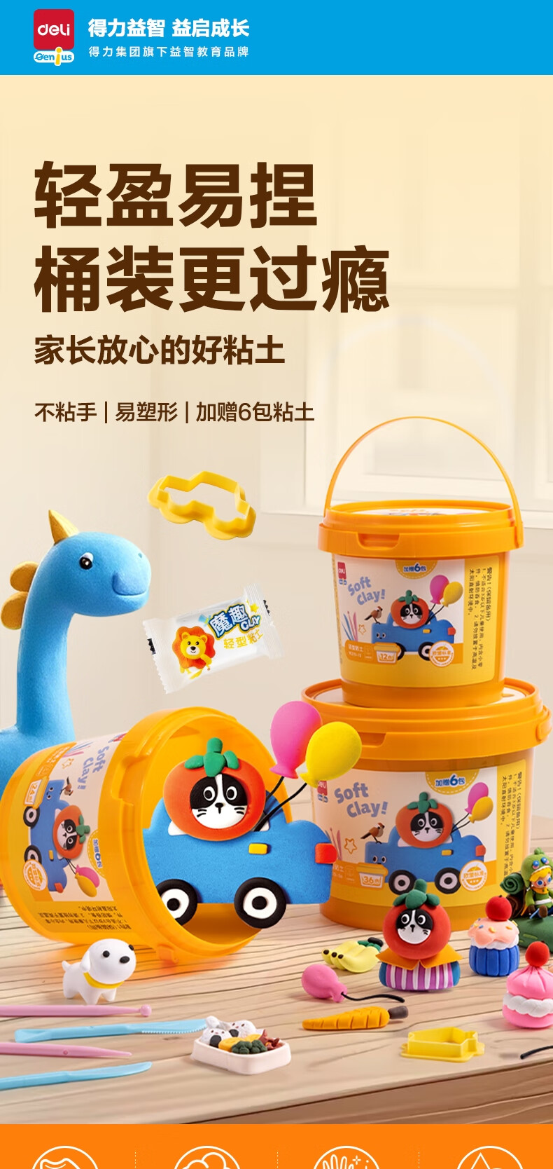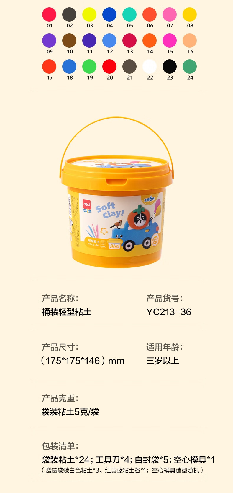 得力(deli)36色超轻粘土 黏土4D橡皮泥彩泥玩具幼儿园学生DIY手工桶装儿童生日礼物男孩女孩开学文具