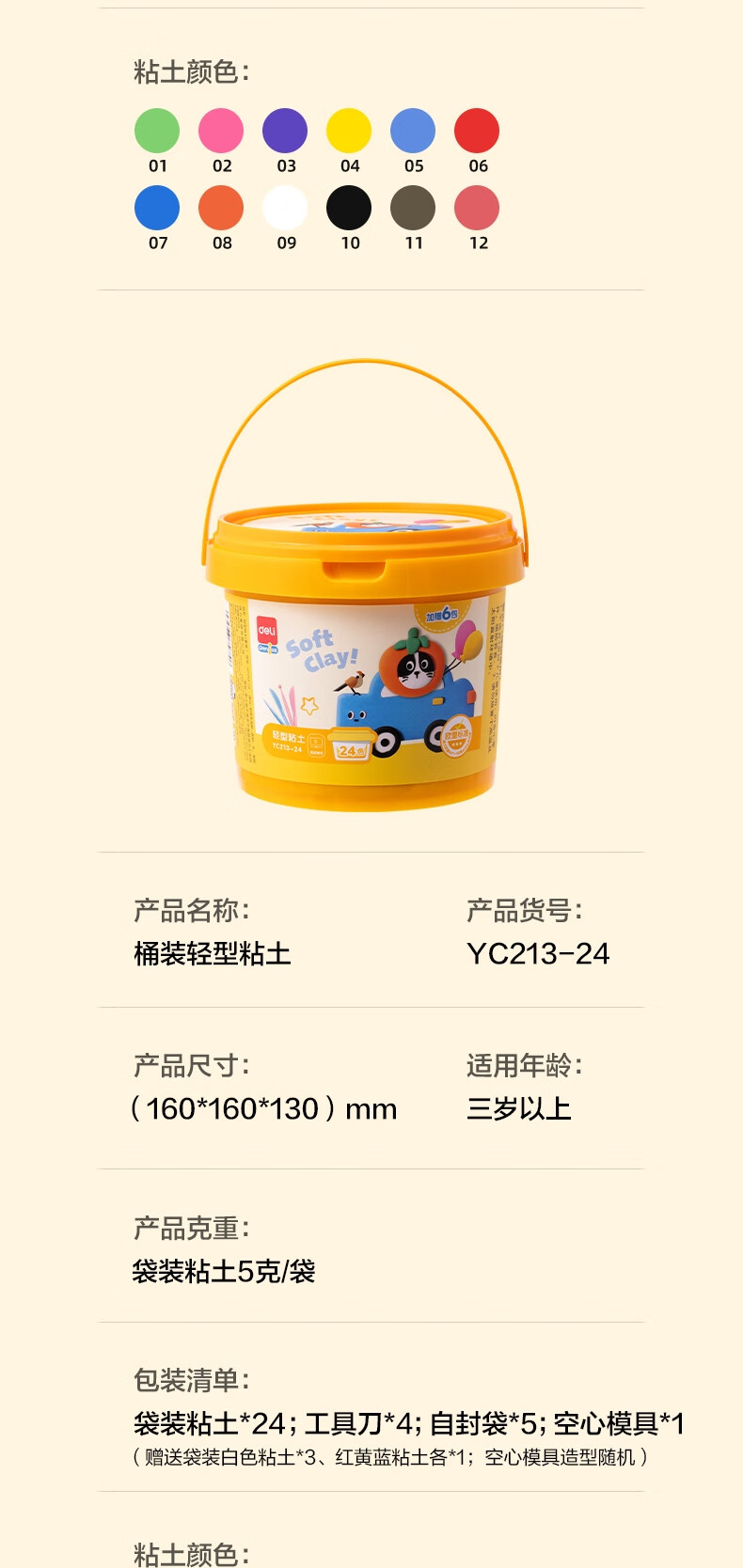 得力(deli)24色彩泥 学生橡皮泥美术手工DIY盒装黏土工具套装玩具非轻型粘土儿童生日礼物粉色开学文具