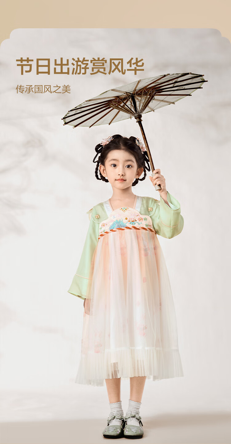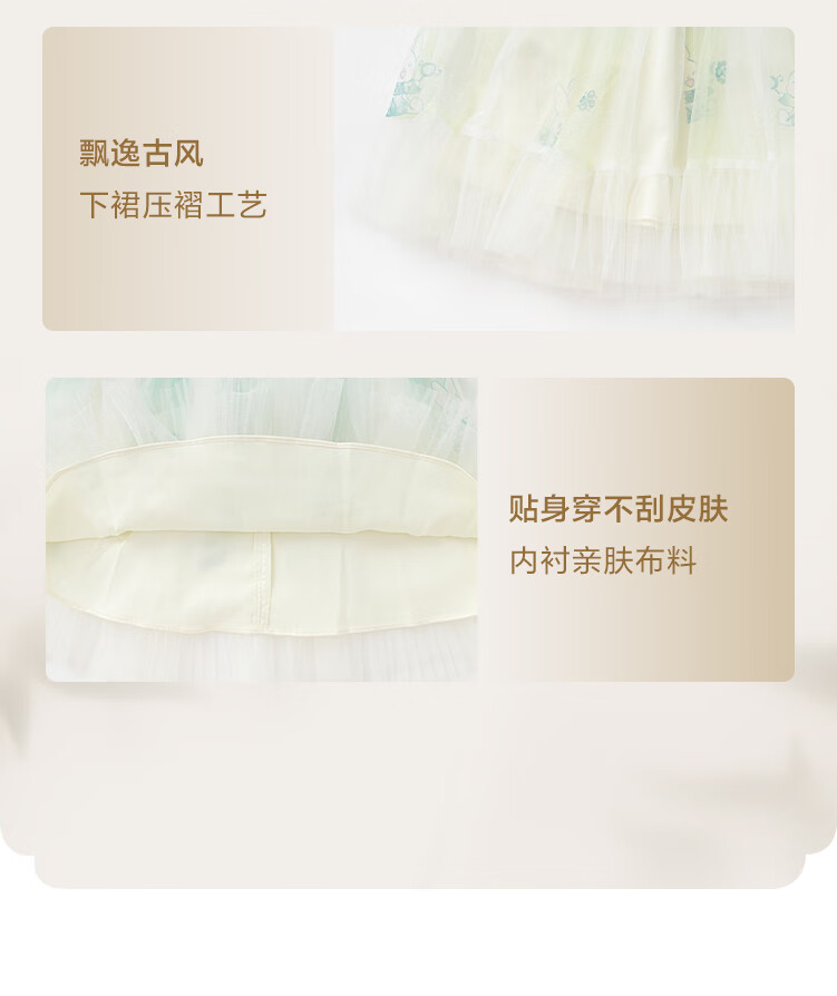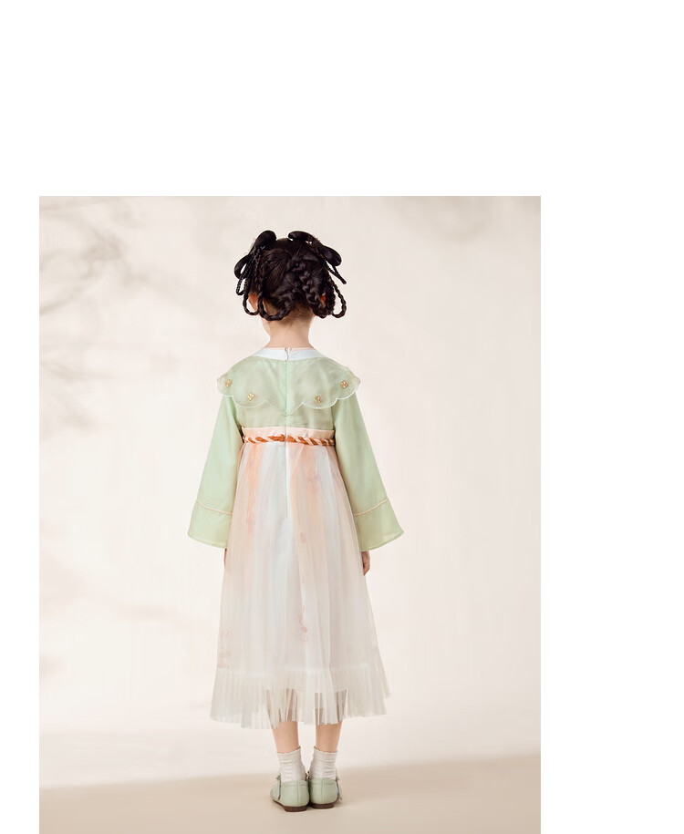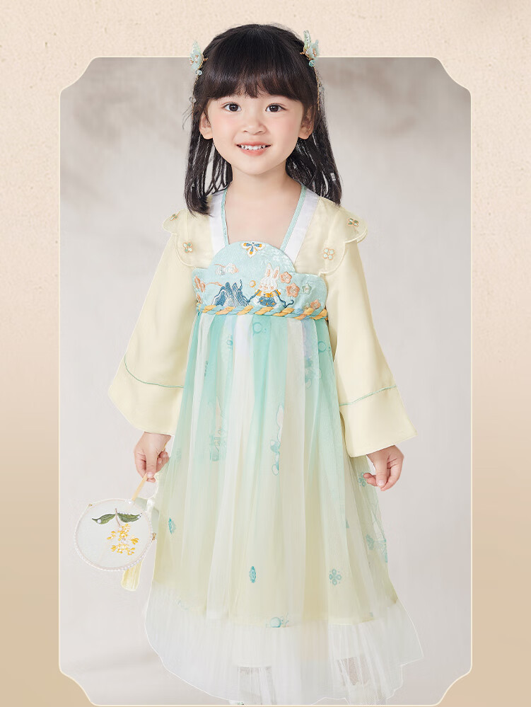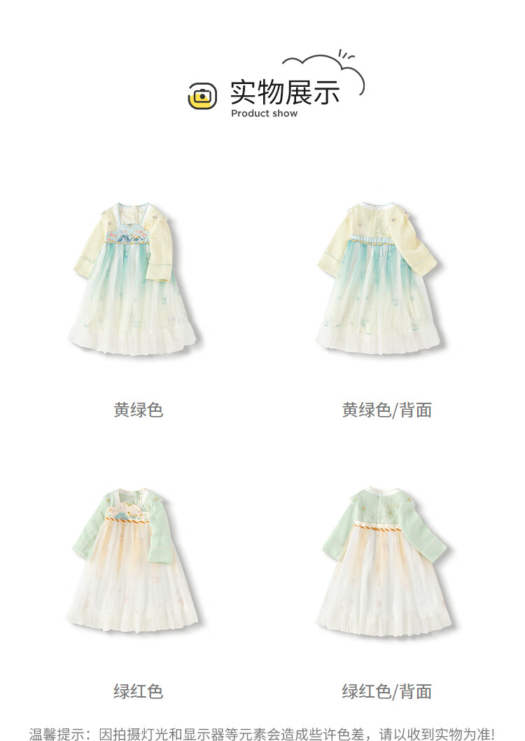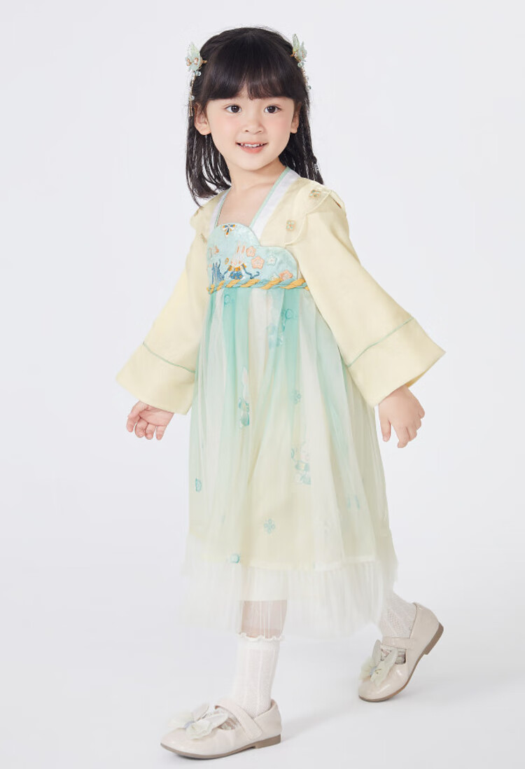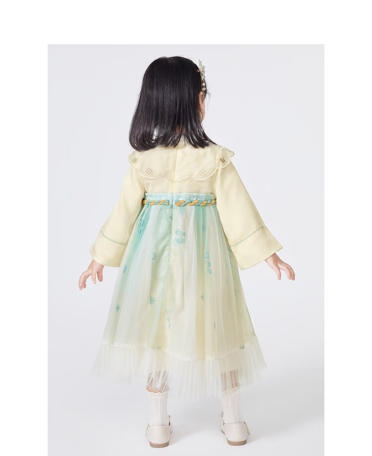 巴拉巴拉童装女童汉服国风连衣裙春秋宝宝襦裙演出服儿童裙子 黄绿色00334 120