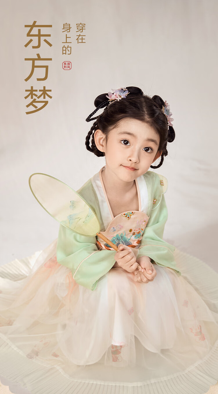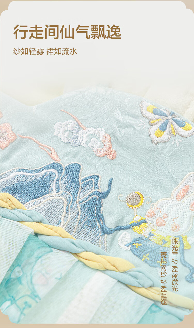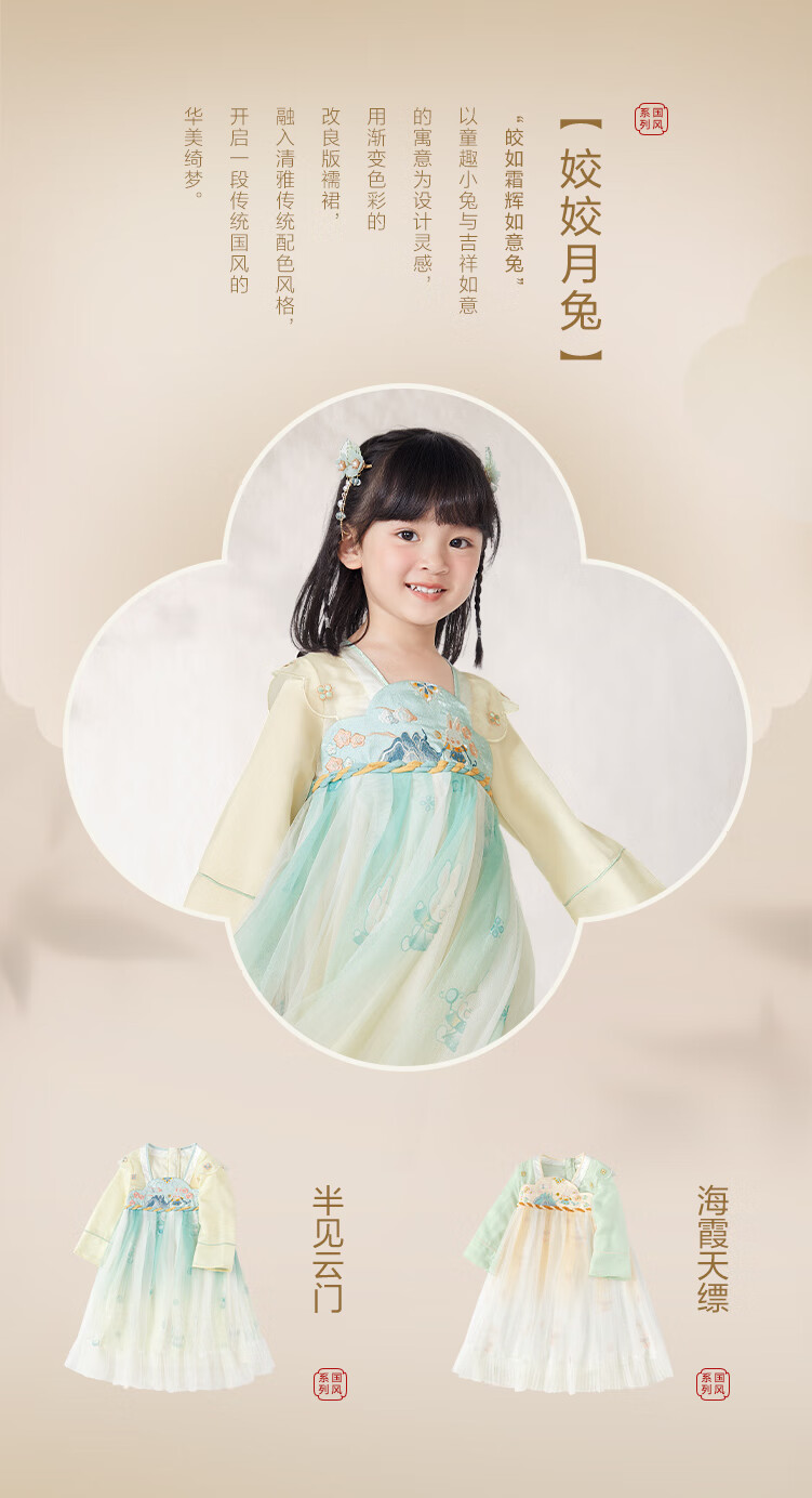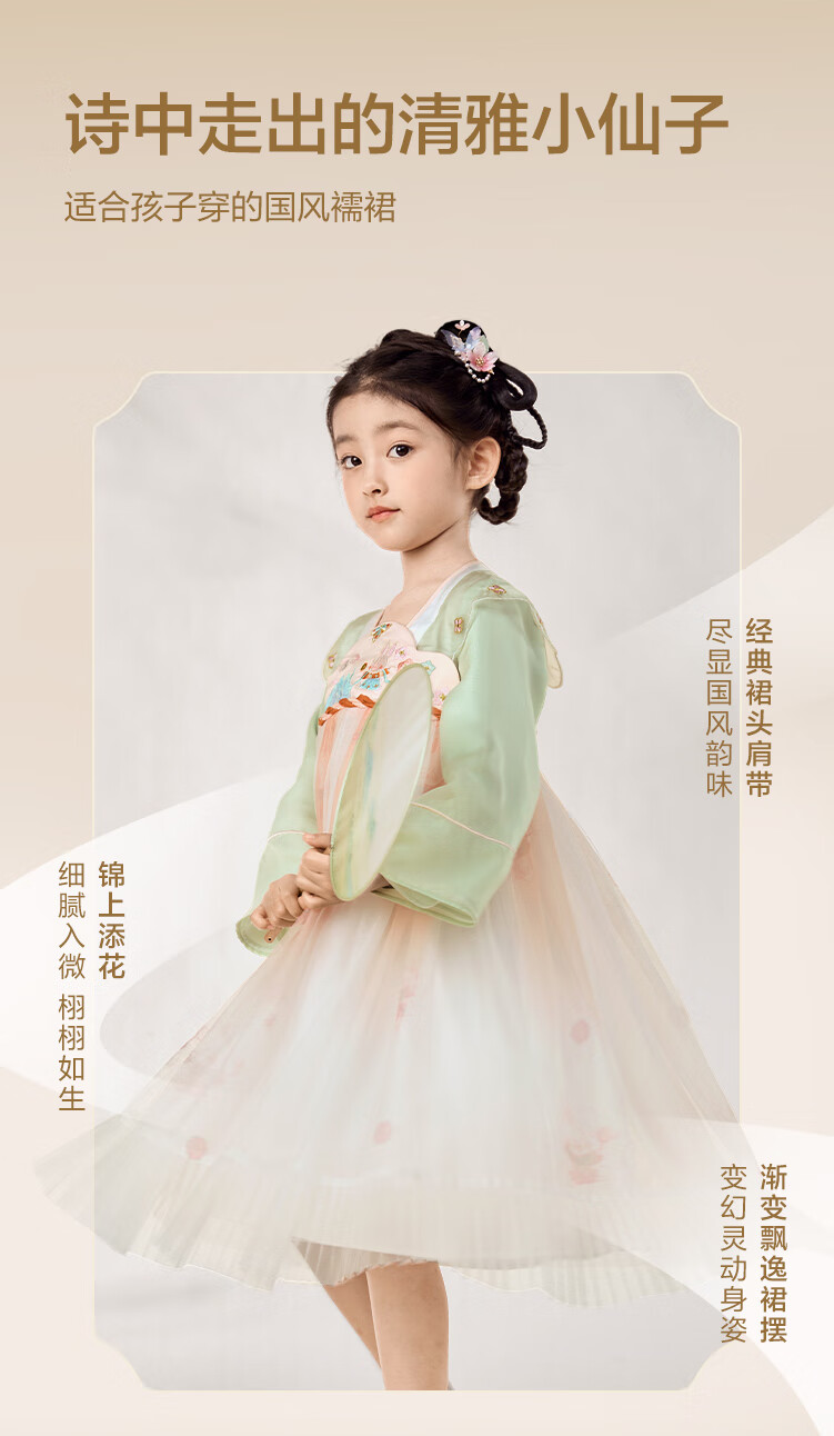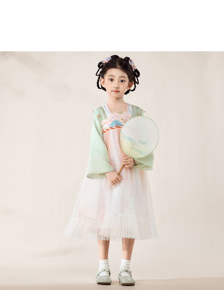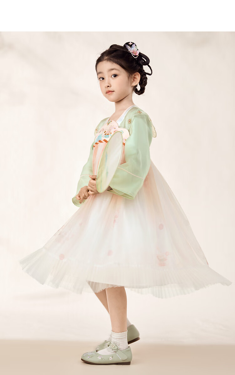 巴拉巴拉童装女童汉服国风连衣裙春秋宝宝襦裙演出服儿童裙子 黄绿色00334 120