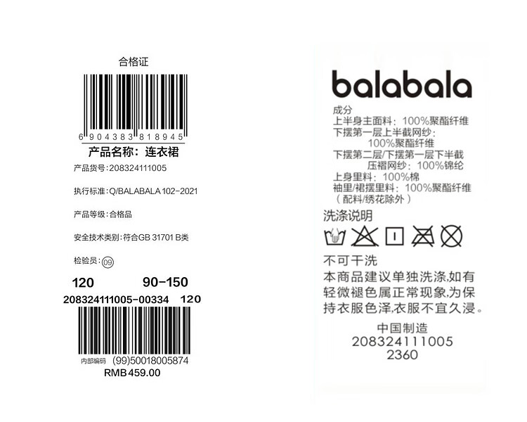 迷你巴拉巴拉男女童长袖套装潮流拼色上衣长裤两件套春季新款 海盐千层 100 【91-100cm 12-16kg】