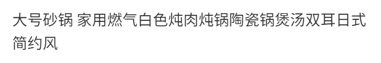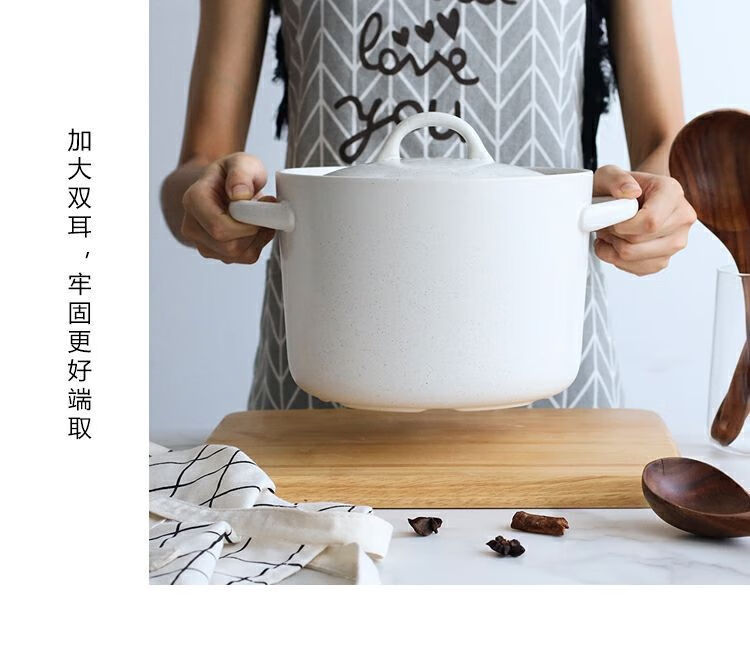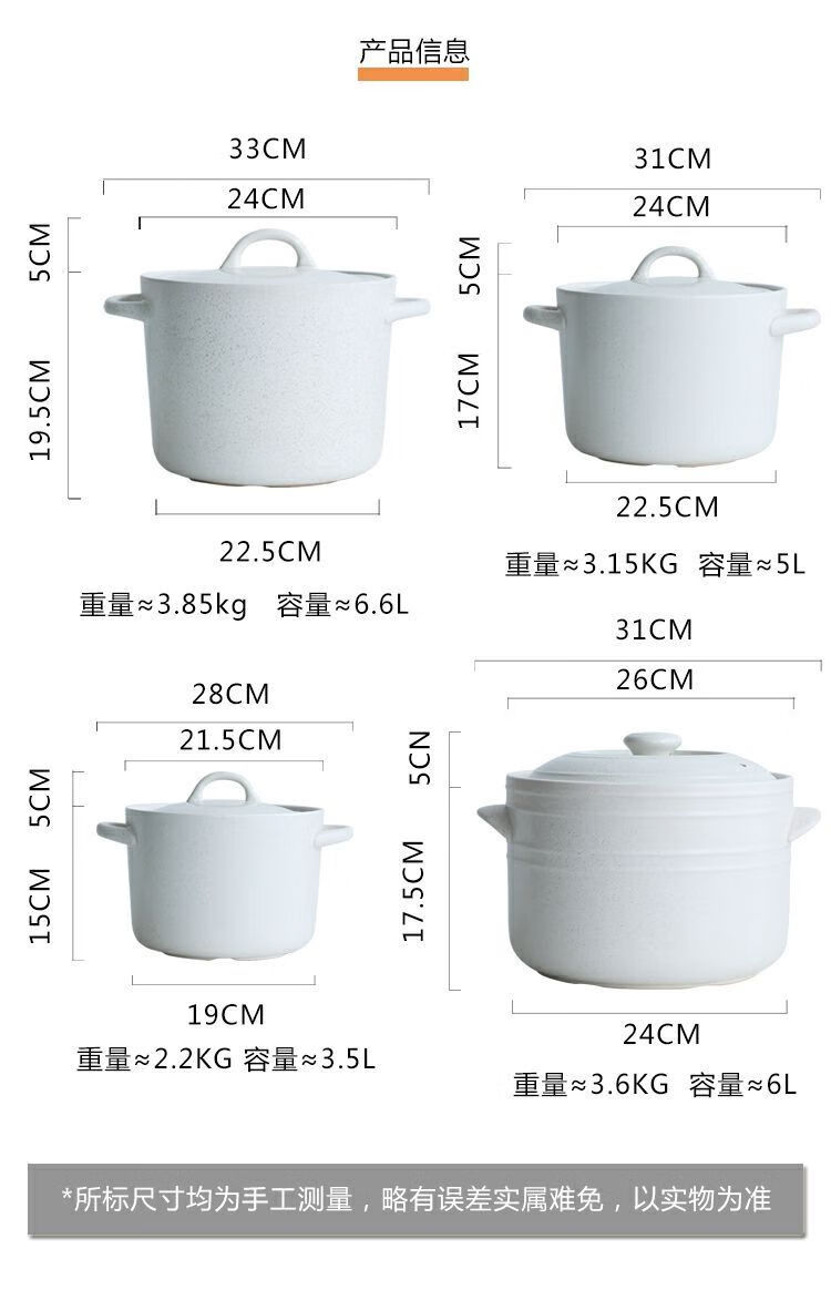 咏夏新中式糖水铺子熬煮煲白色砂锅燃气明火专用陶瓷锅炖汤耐干烧两用 3.5L桶锅 0ml