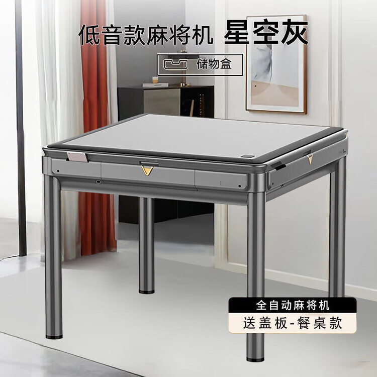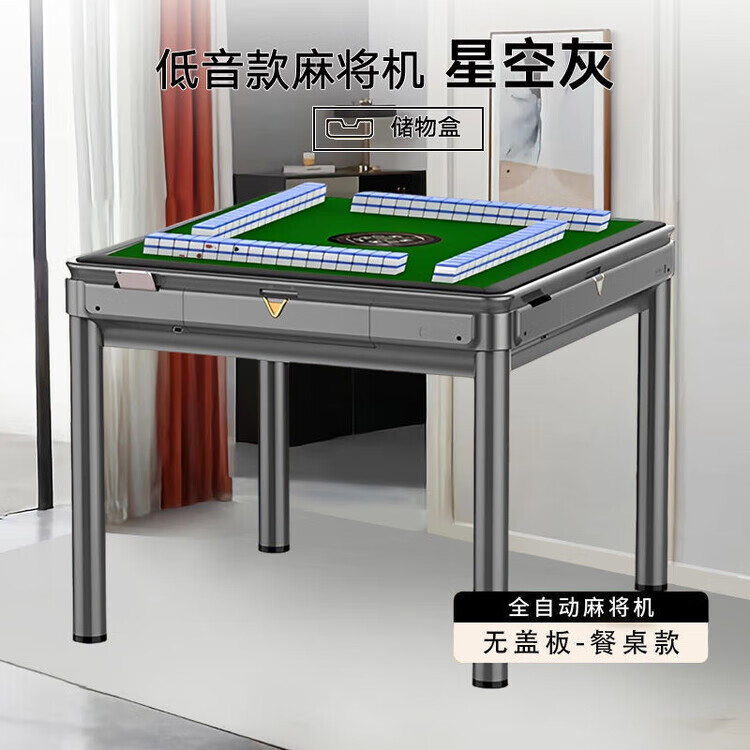 倘然之家2025全新麻将机全自动家用原装机可升级静音机麻将桌餐桌一体两用 s旗舰机星空灰+2副麻将无盖板 42号-144张最小号蓝绿麻将牌