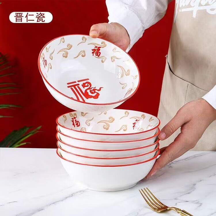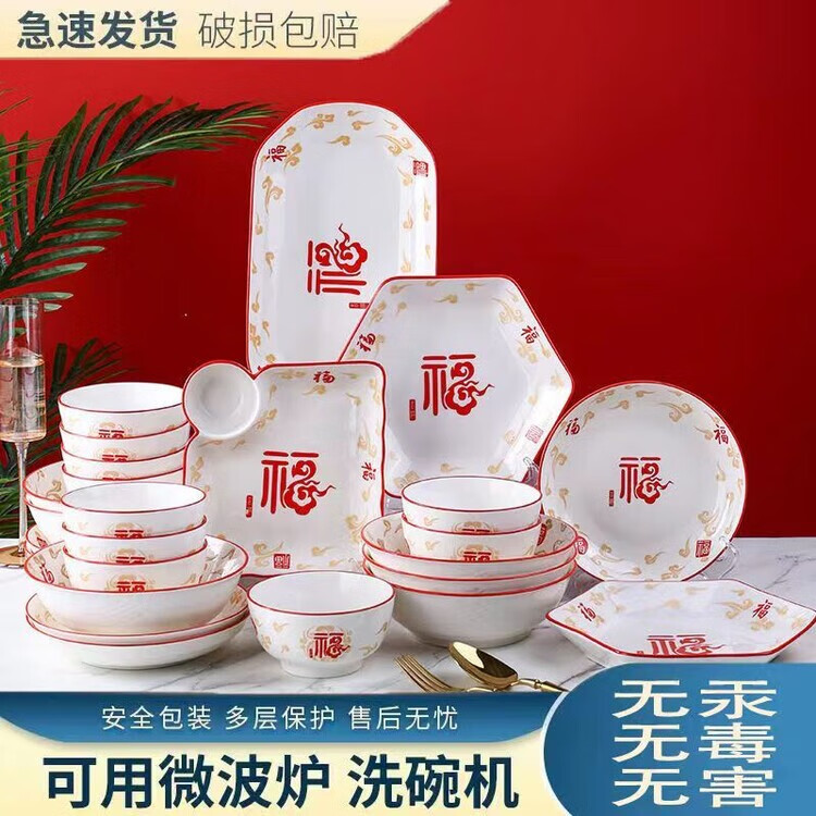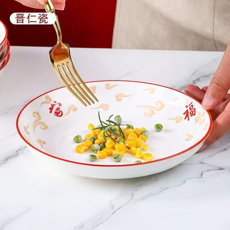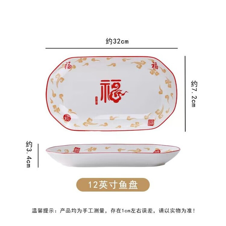 LZJV釉下彩1300度高温五福临门2024年新款碗盘套装家用高颜值陶瓷餐具 12英寸鱼盘1只装