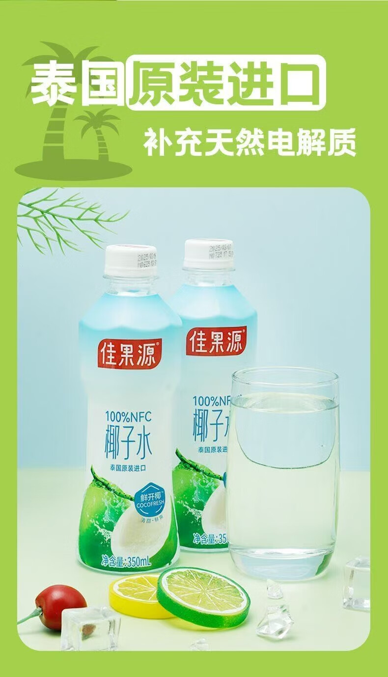 佳果源100%椰子水350ml*12 NFC非浓缩还原 【临期清仓】