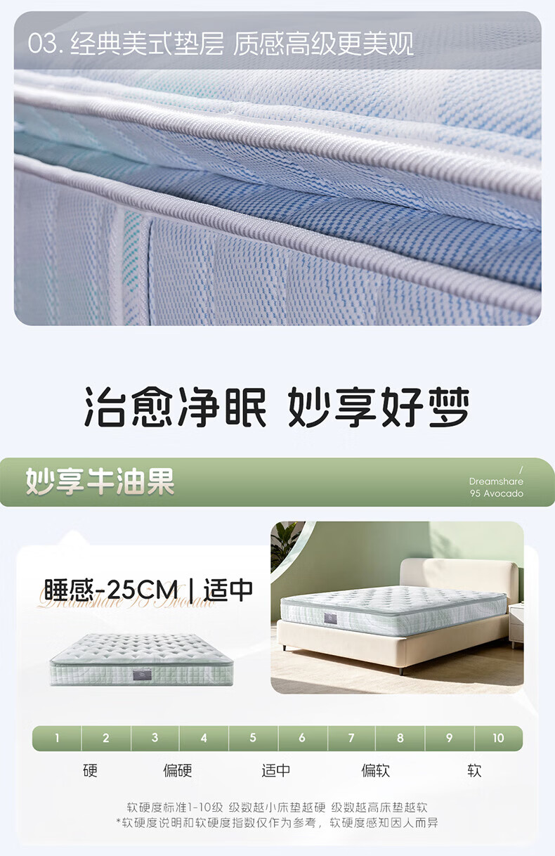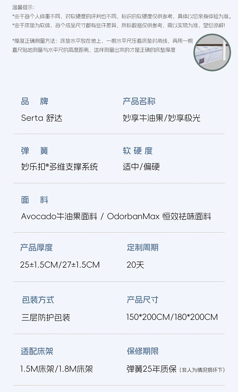 舒达(serta)床垫1.5/1.8米x2米主卧弹簧床垫席梦思凝胶记忆棉床垫子可定制 妙享系列-牛油果【适中 25cm】 1.5米x2米
