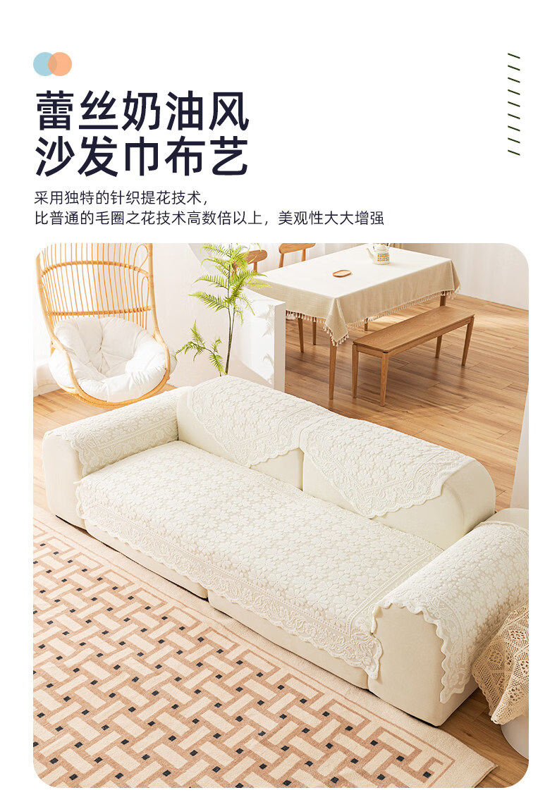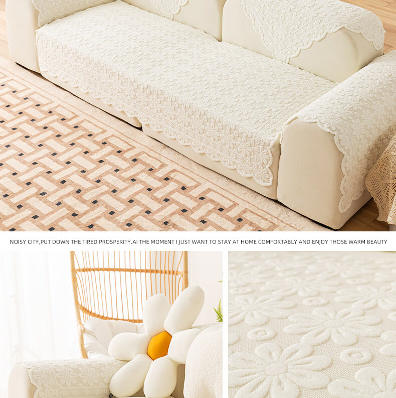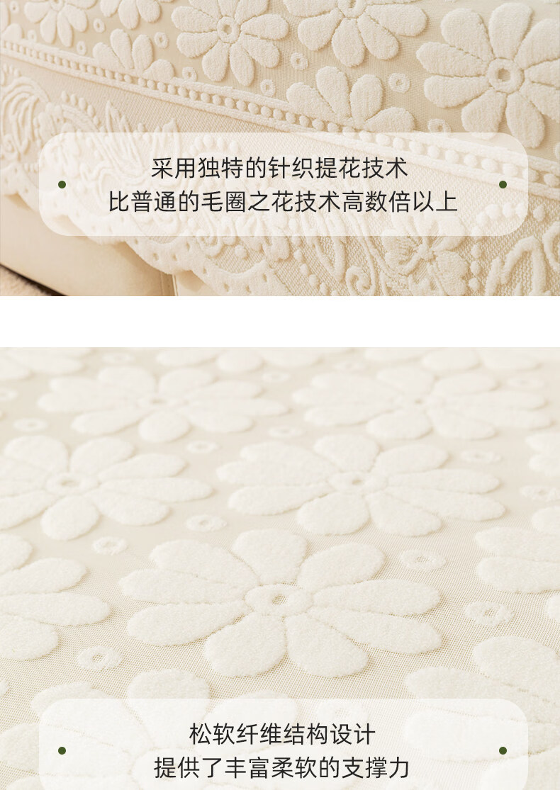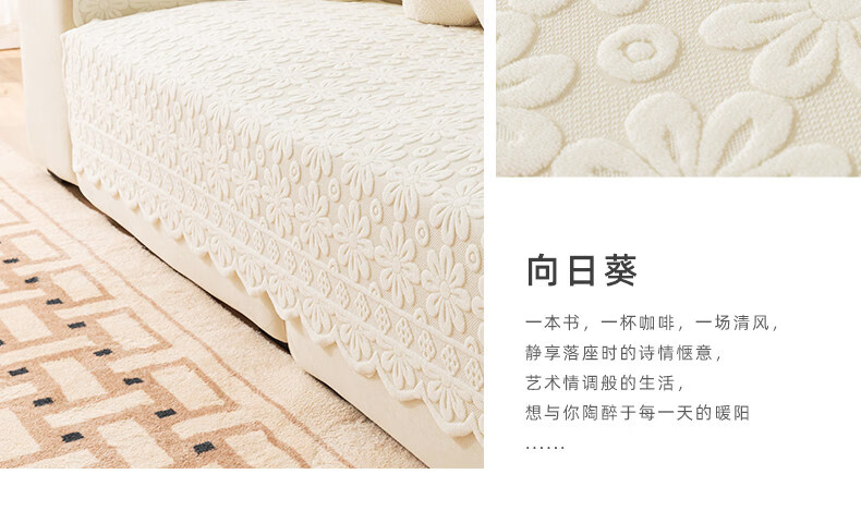 正圣单人沙发巾蕾丝沙发靠背巾加厚防滑四季通用沙发扶手巾盖布茶几巾 小雏菊-米白 65cm*75cm 三角靠背巾:(拍多个默认发连身,