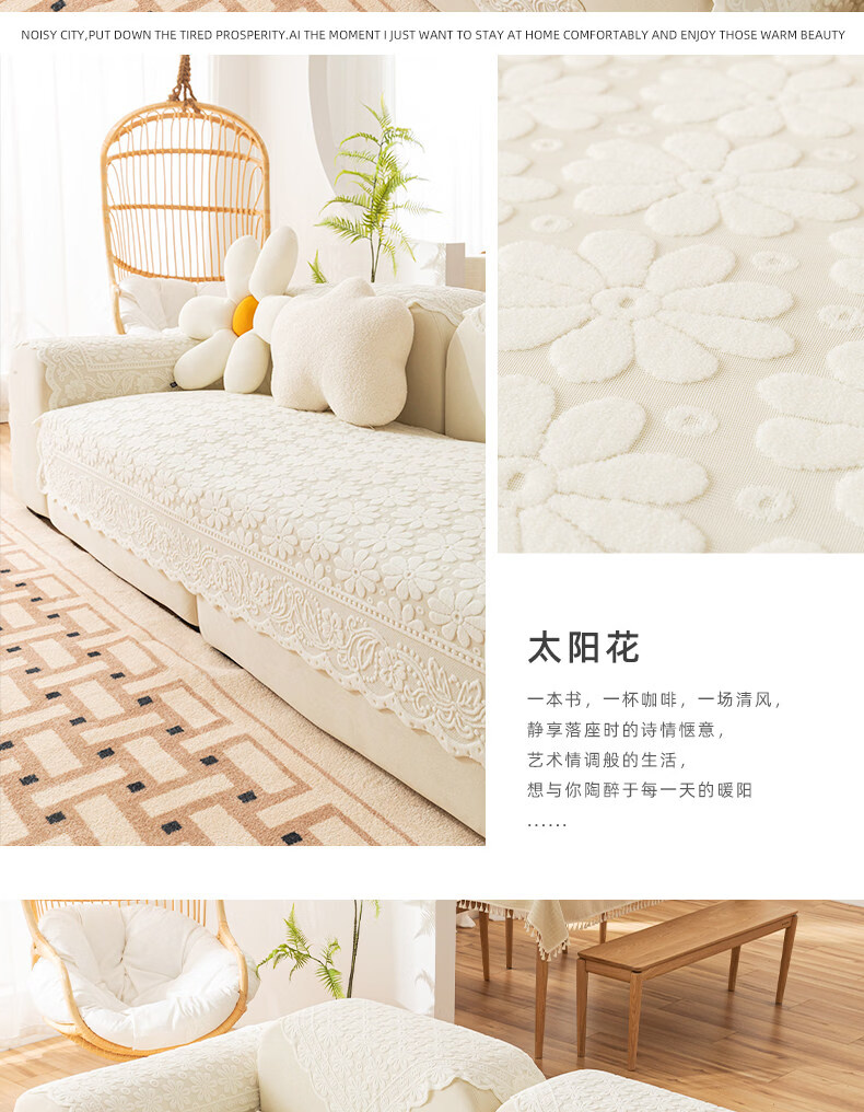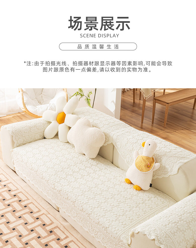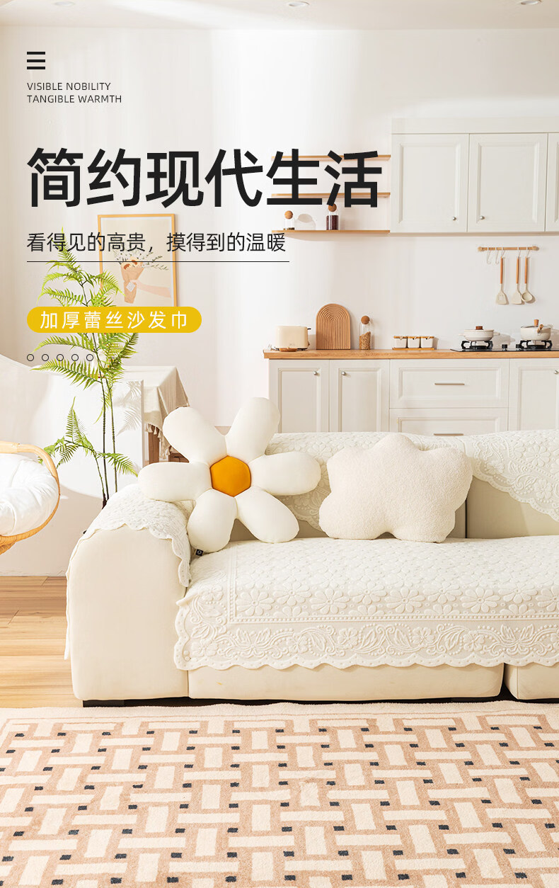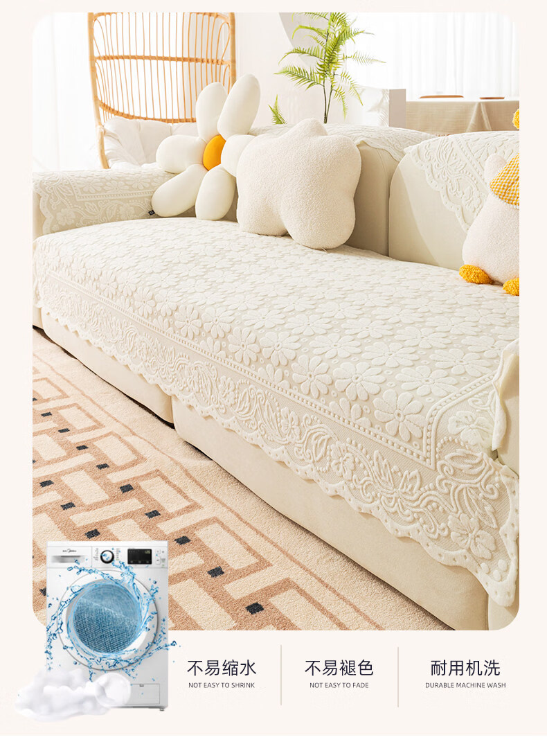 正圣单人沙发巾蕾丝沙发靠背巾加厚防滑四季通用沙发扶手巾盖布茶几巾 小雏菊-米白 65cm*75cm 三角靠背巾:(拍多个默认发连身,