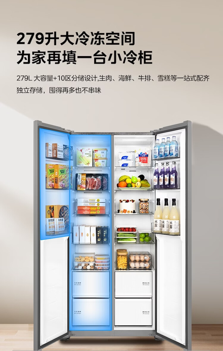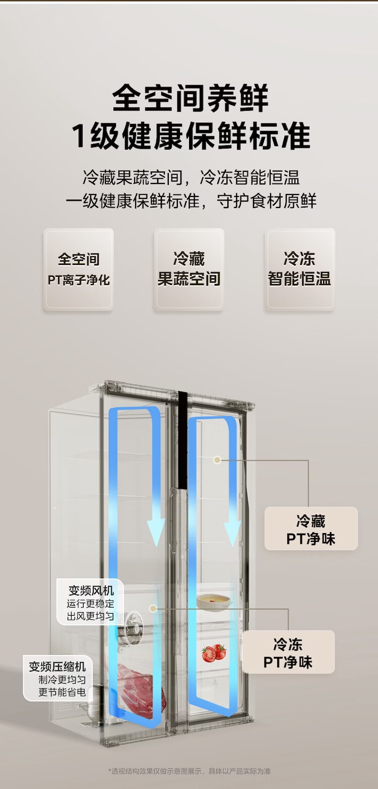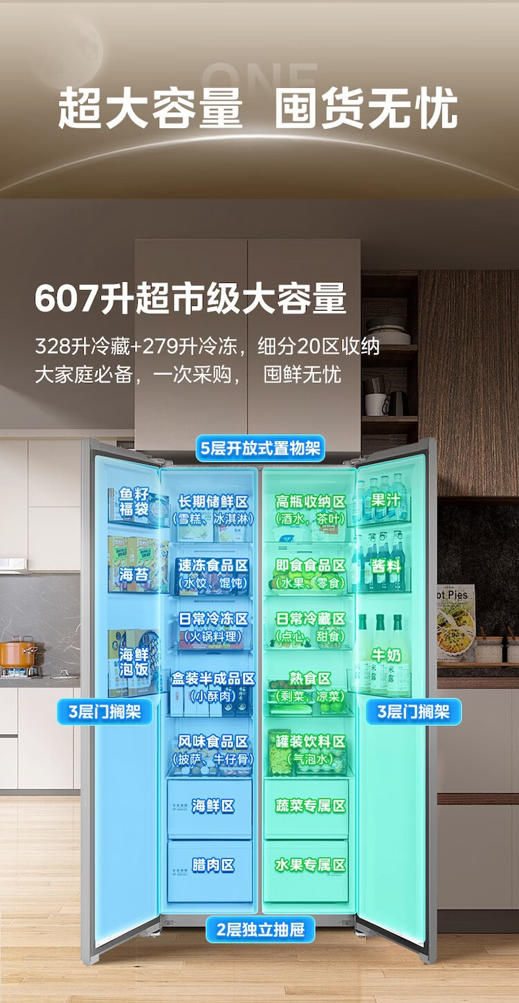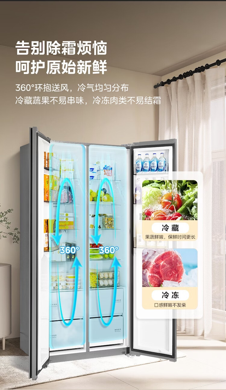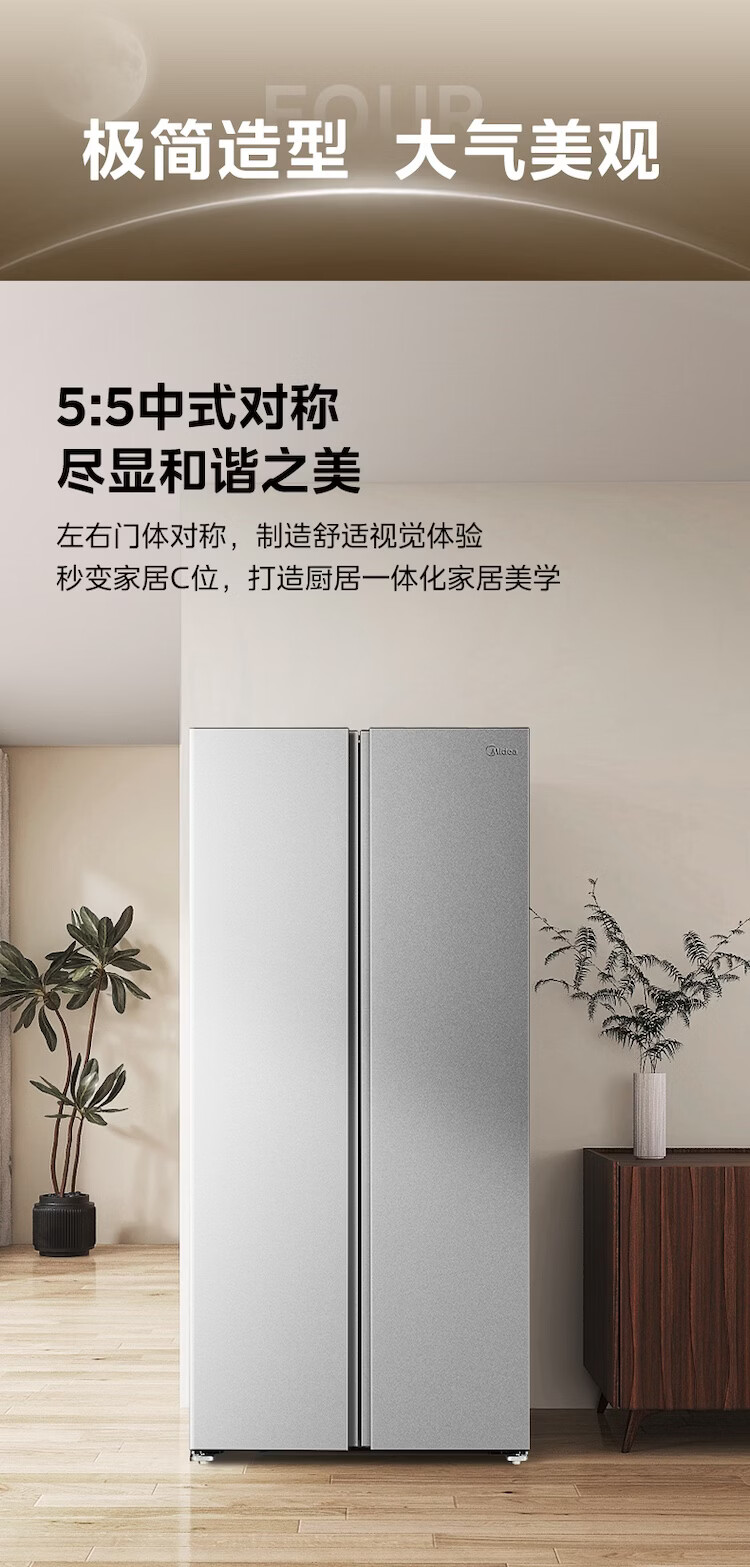 美的(Midea)607pro双开门冰箱超大容量一级能效家用风冷无霜大冷冻节能星辰砂BCD-607WKPM(E)以旧换新国家补贴
