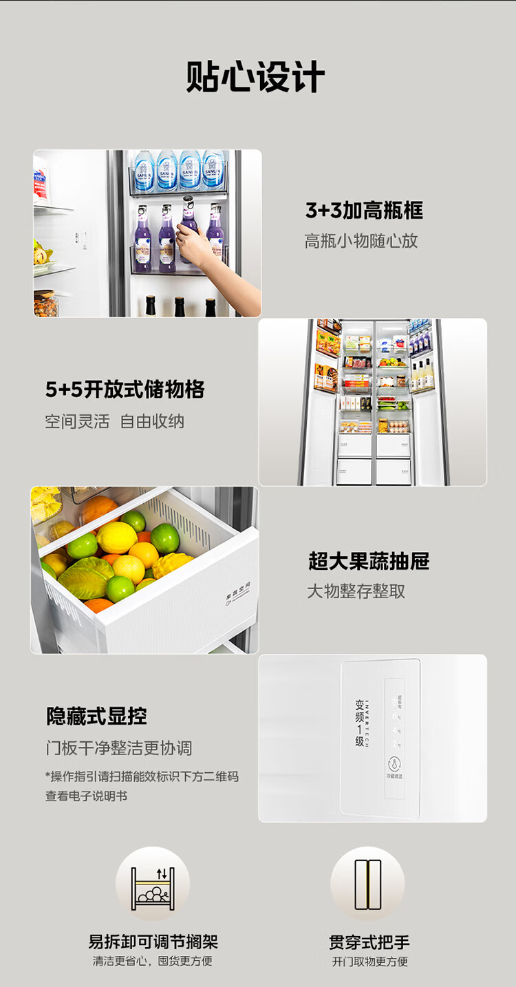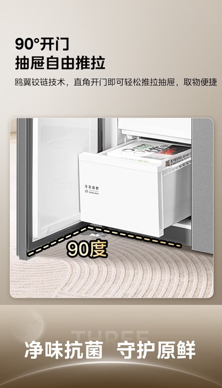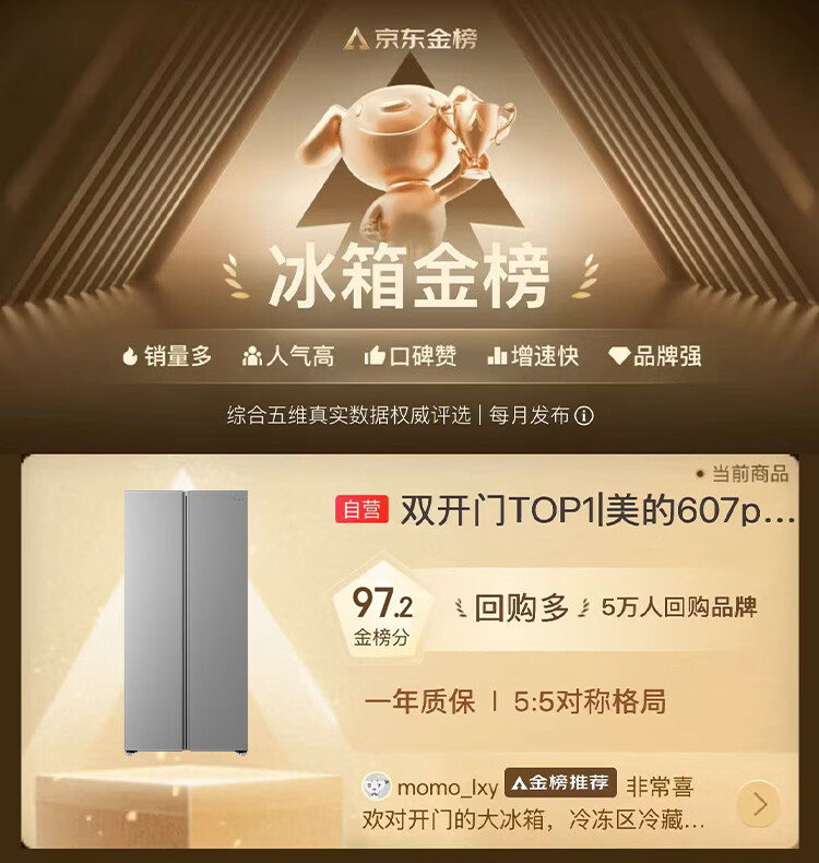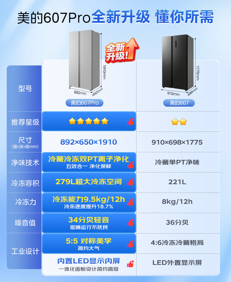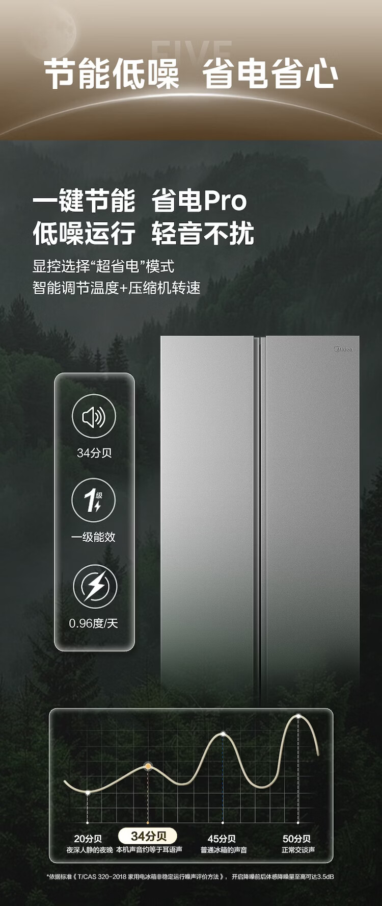 美的(Midea)607pro双开门冰箱超大容量一级能效家用风冷无霜大冷冻节能星辰砂BCD-607WKPM(E)以旧换新国家补贴