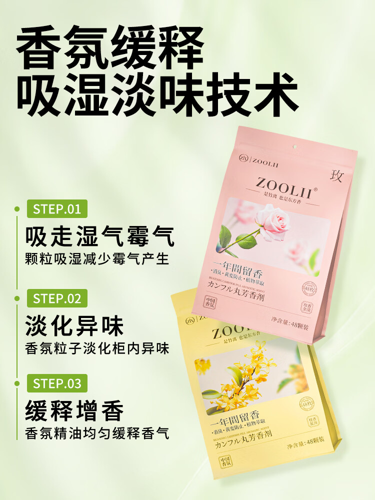 ZOOLII花香樟脑丸驱虫防虫衣柜持久防潮防霉除味香薰香包衣物空气芳香剂 【买1次用1年】桂花香1+玫瑰花香1