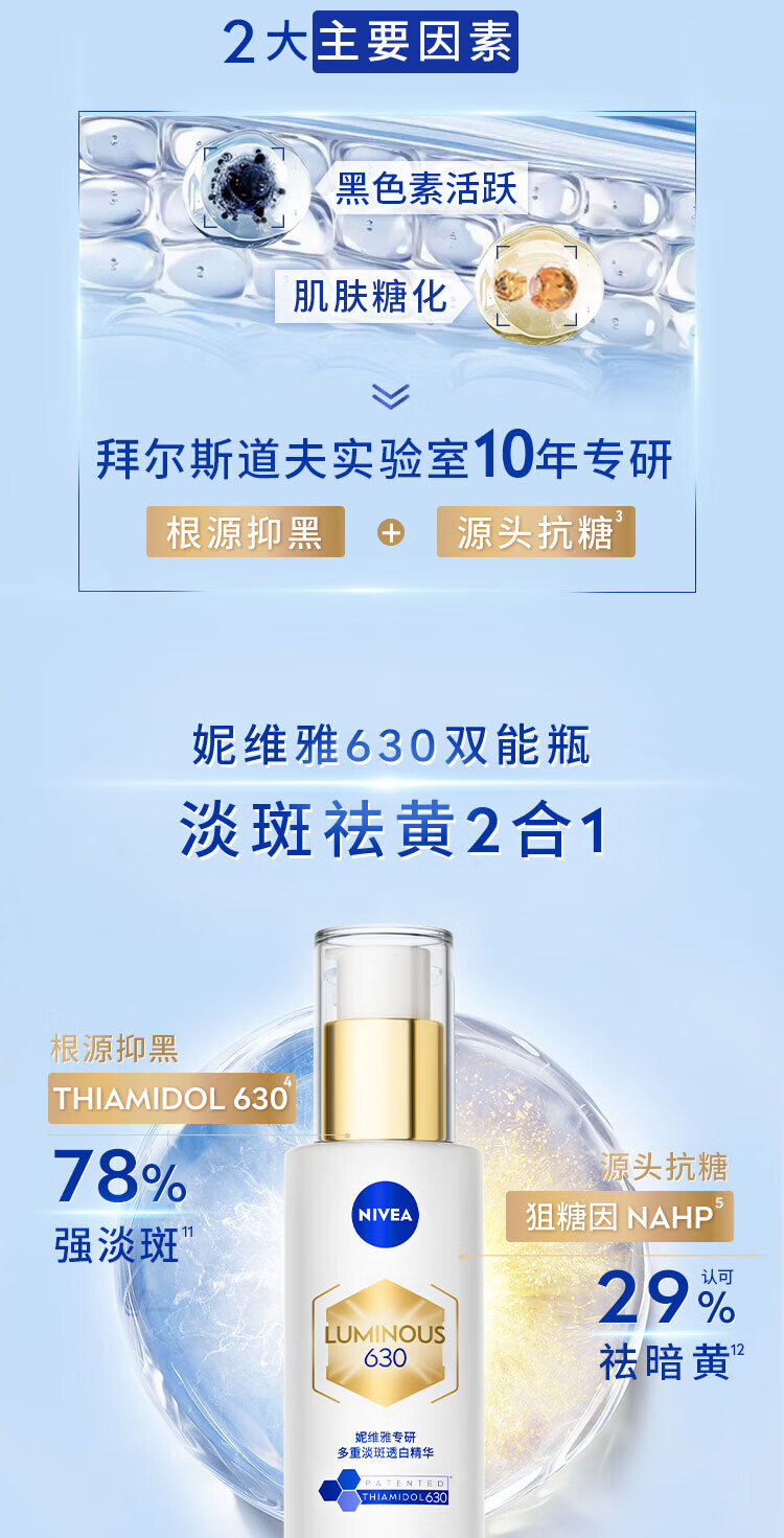 妮维雅【王源同款】630双能瓶特证美白精华30ml*2抑黑淡斑提肤色