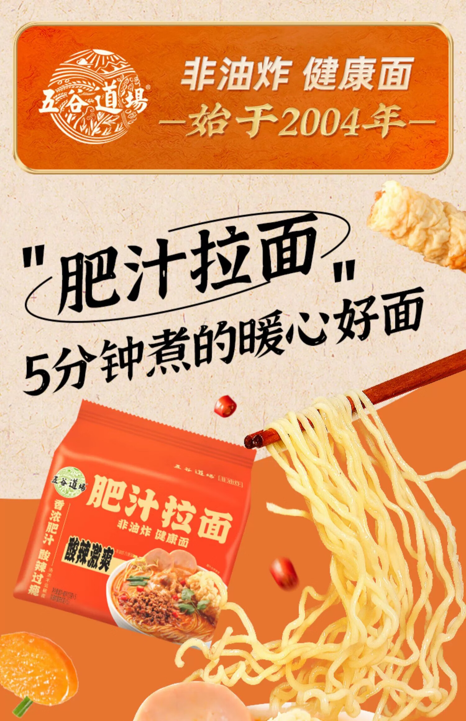 五谷道場非油炸方便面 肥汁拉面五连包133gx5袋装 免煮网红泡面 早餐速食