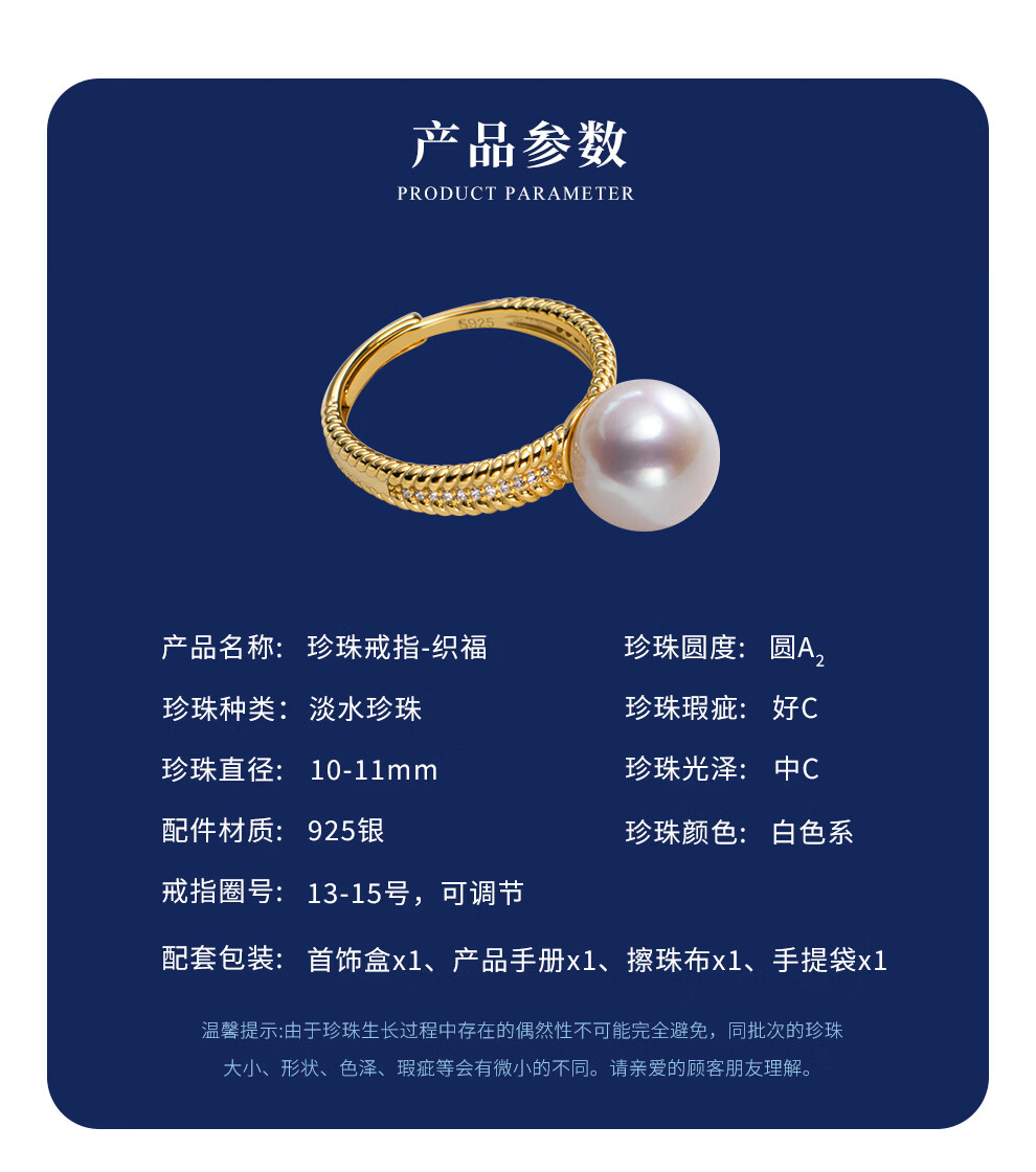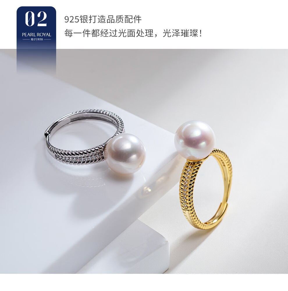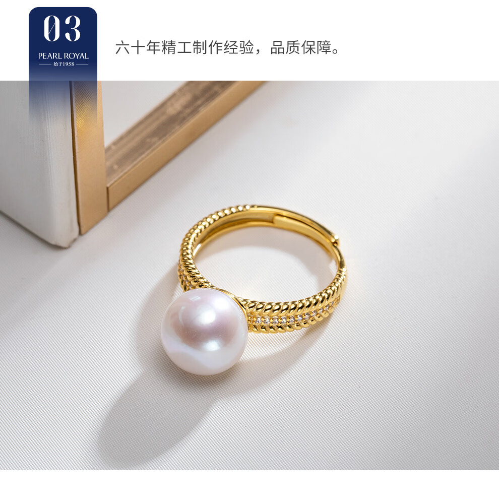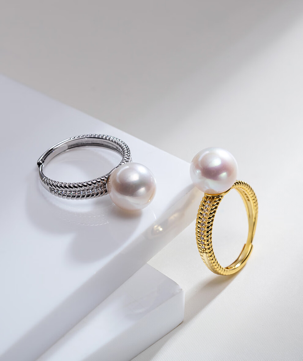 南珠宫织福925银淡水珍珠戒指强光圆形高级感新年礼物送妈妈 银色款 10.0-11.0mm戒圈13-15号
