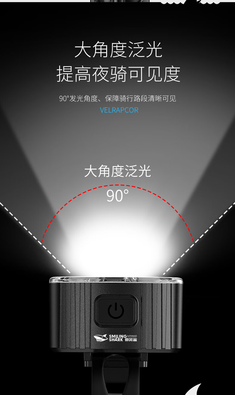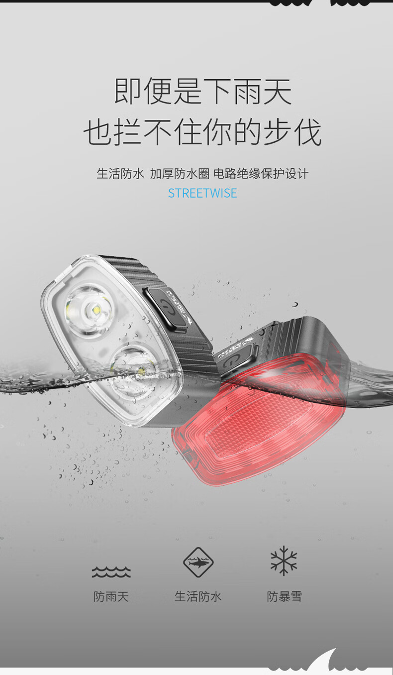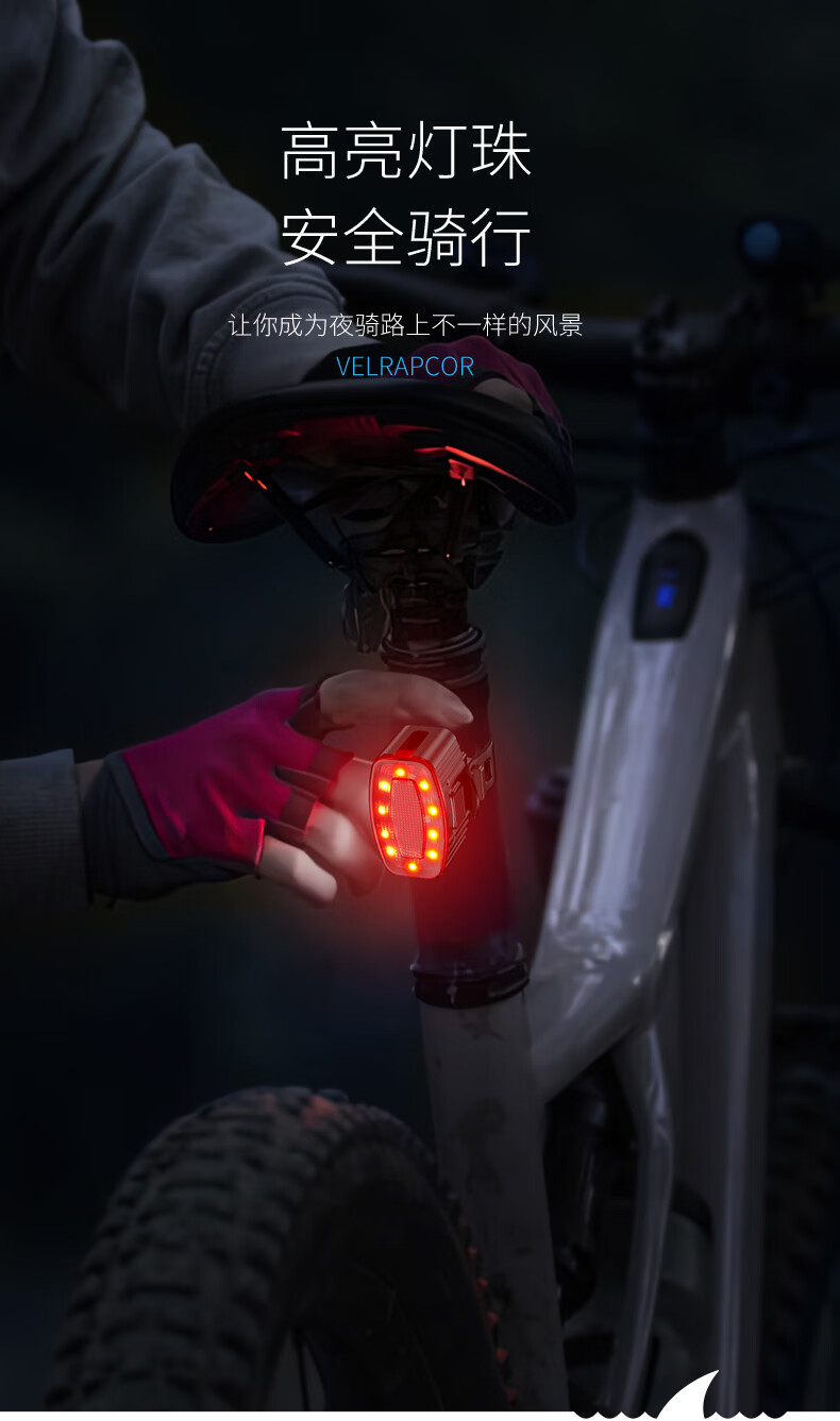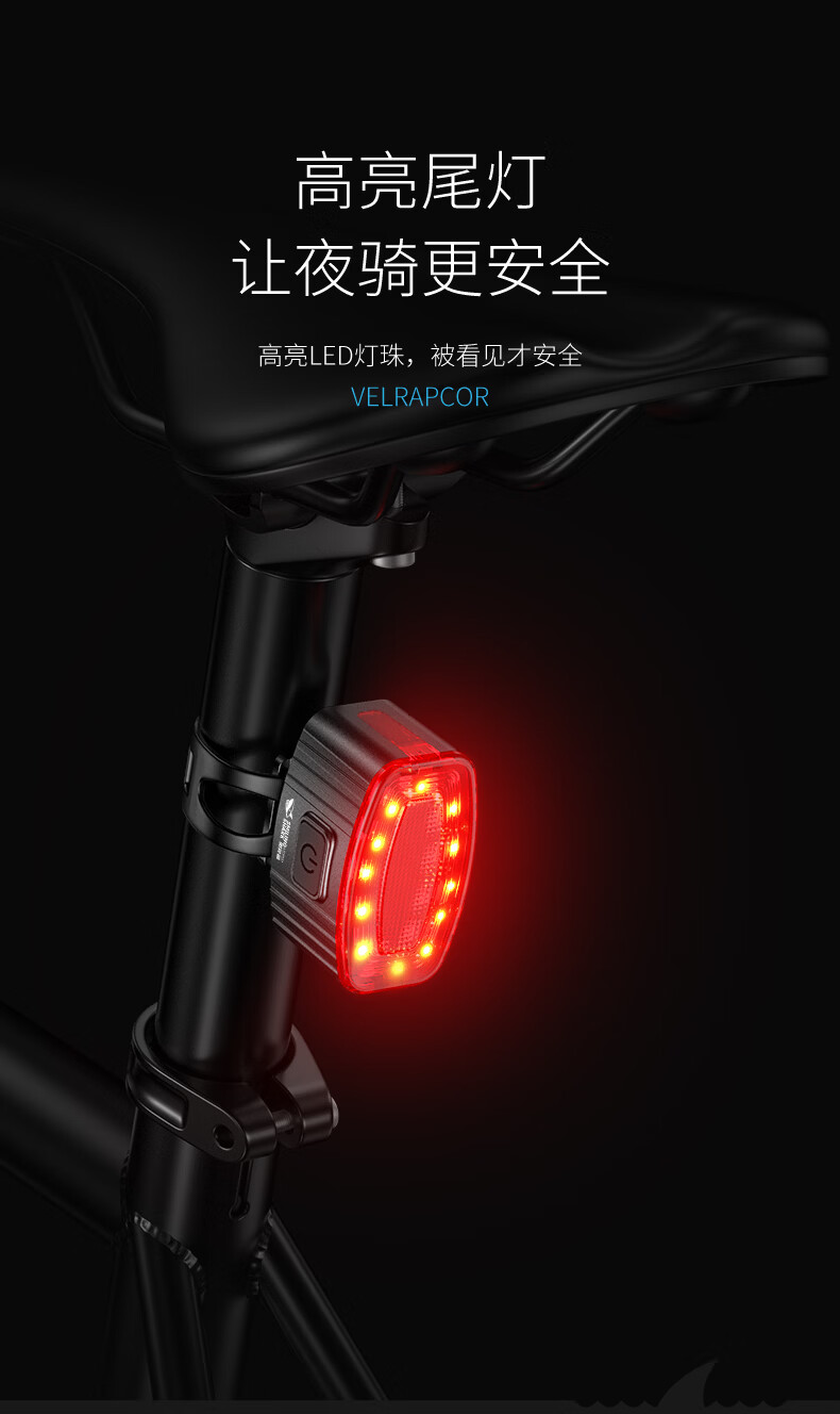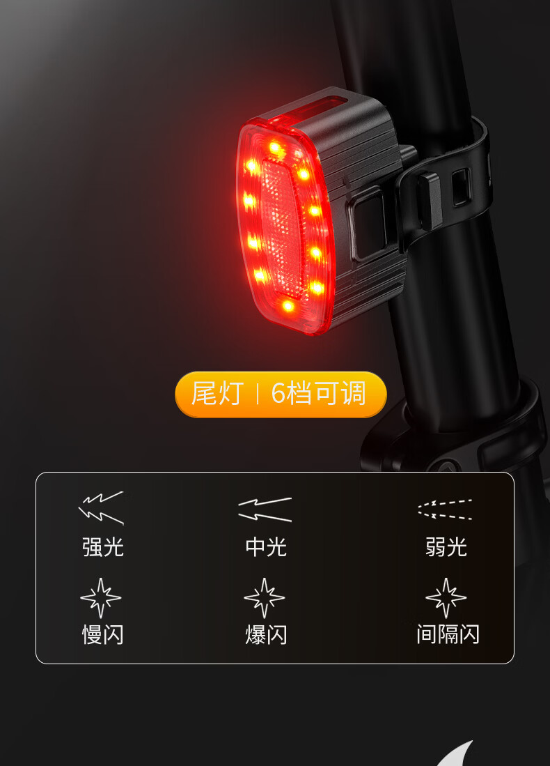 微笑鲨自行车夜间照明灯山地公路车单车前灯强光夜间骑行灯后尾骑行装备 旗舰款尾灯【暴雨级防水丨长续航】