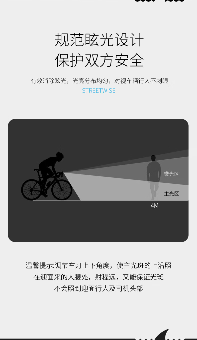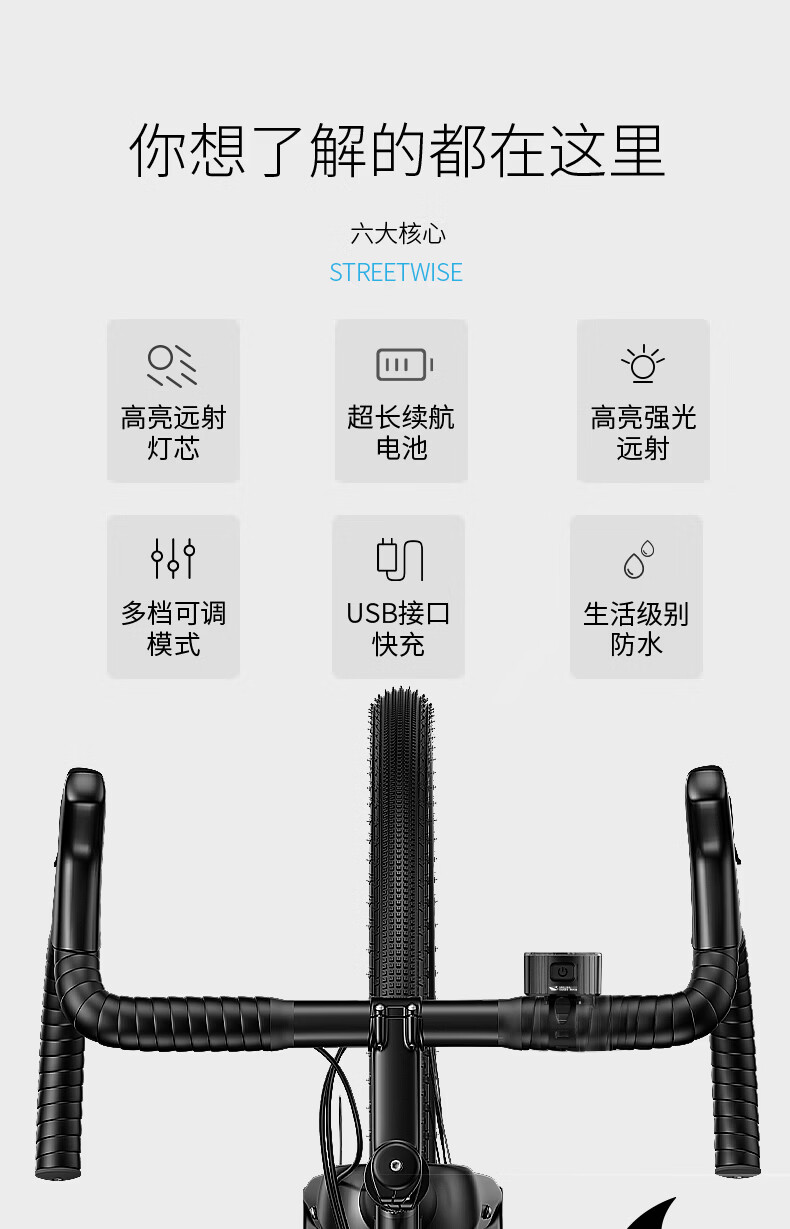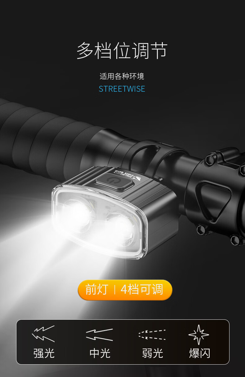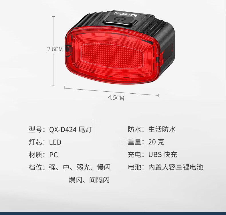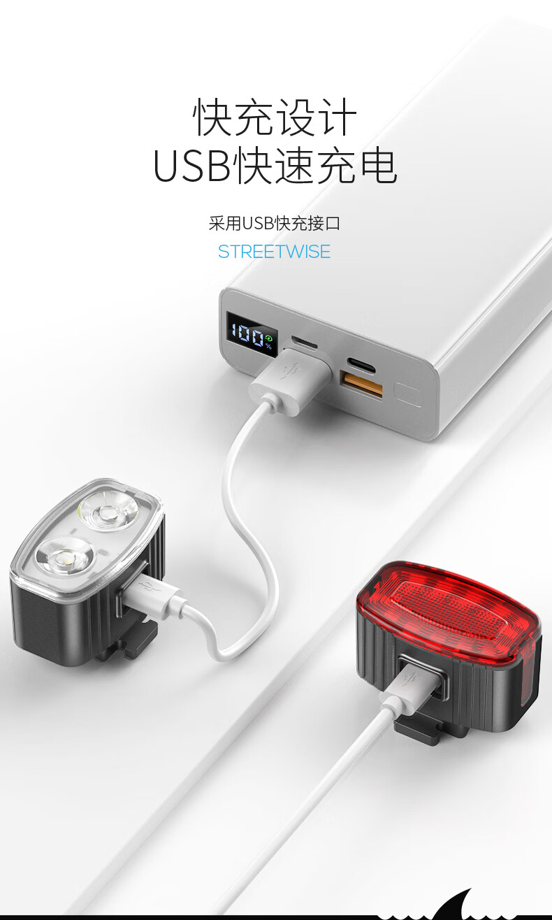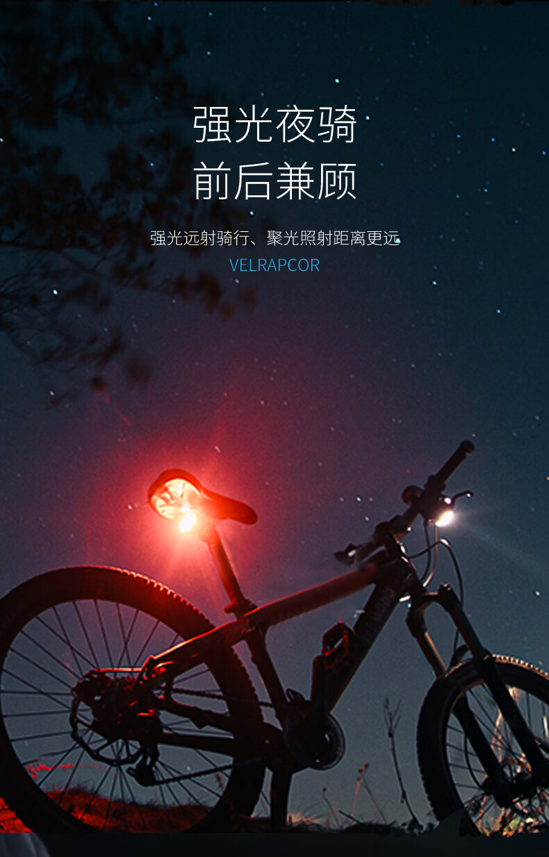 微笑鲨自行车夜间照明灯山地公路车单车前灯强光夜间骑行灯后尾骑行装备 旗舰款尾灯【暴雨级防水丨长续航】