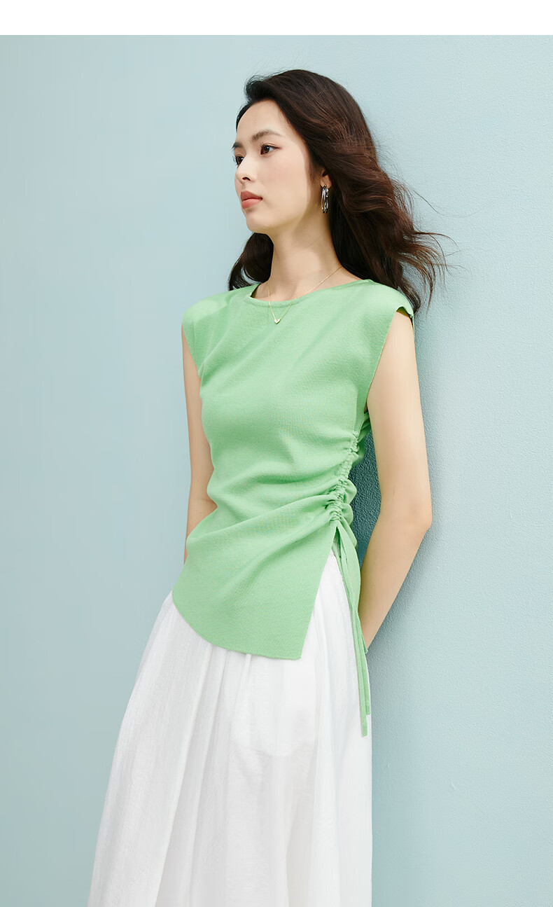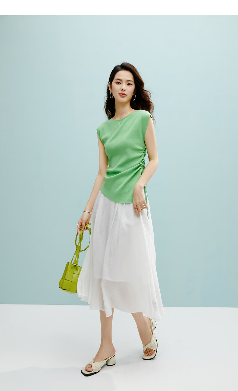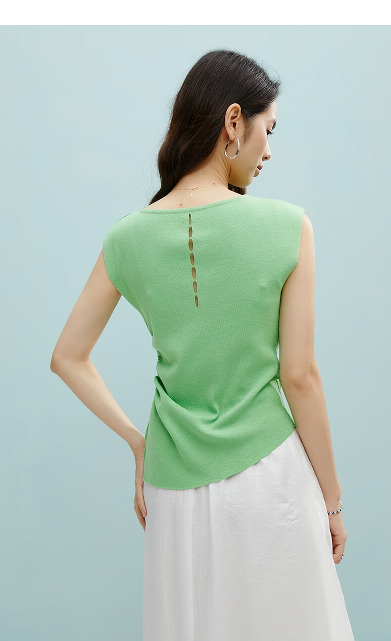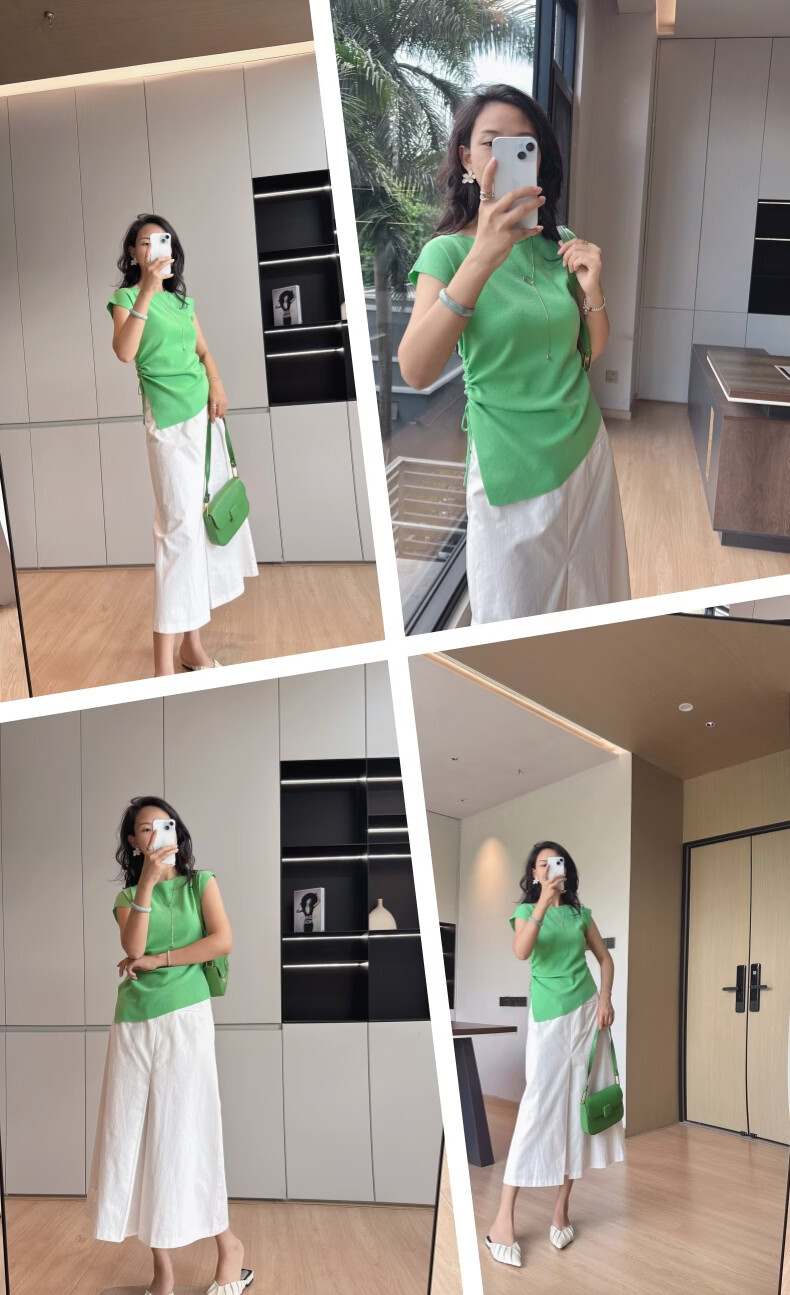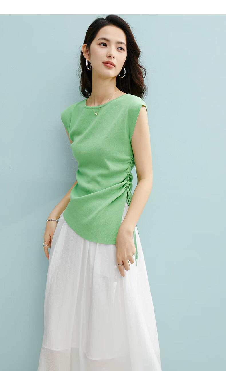 晚白【新品】2026年春款时尚休闲上衣亲肤莱赛尔收腰显白针织衫女 绿色 S