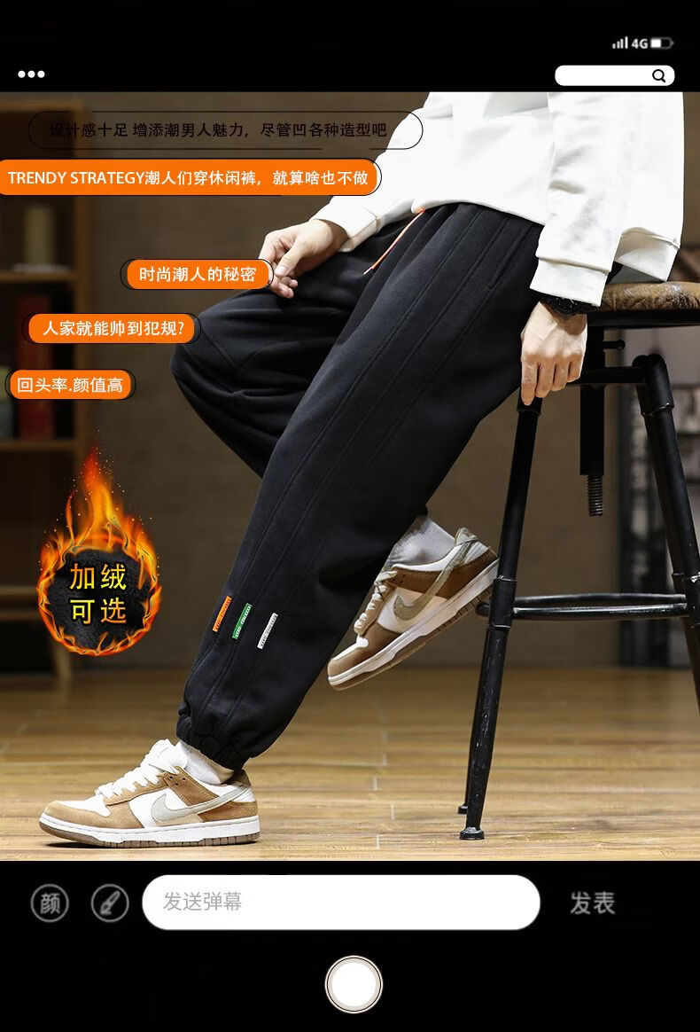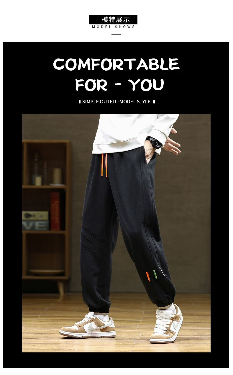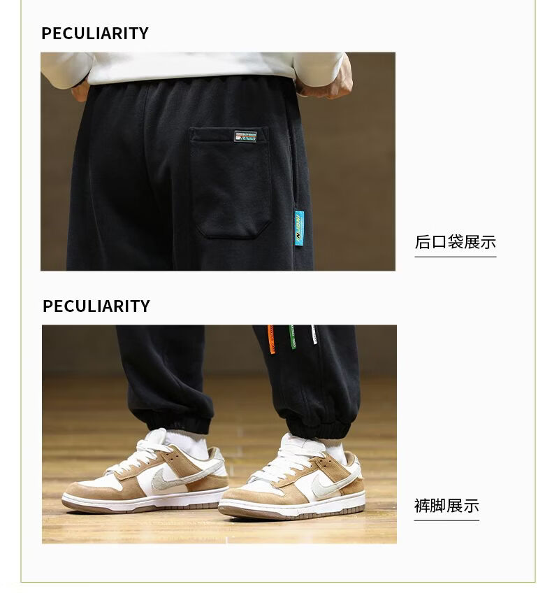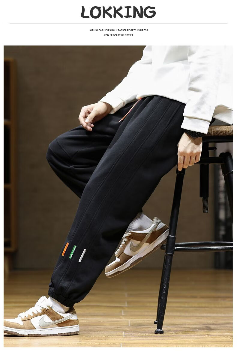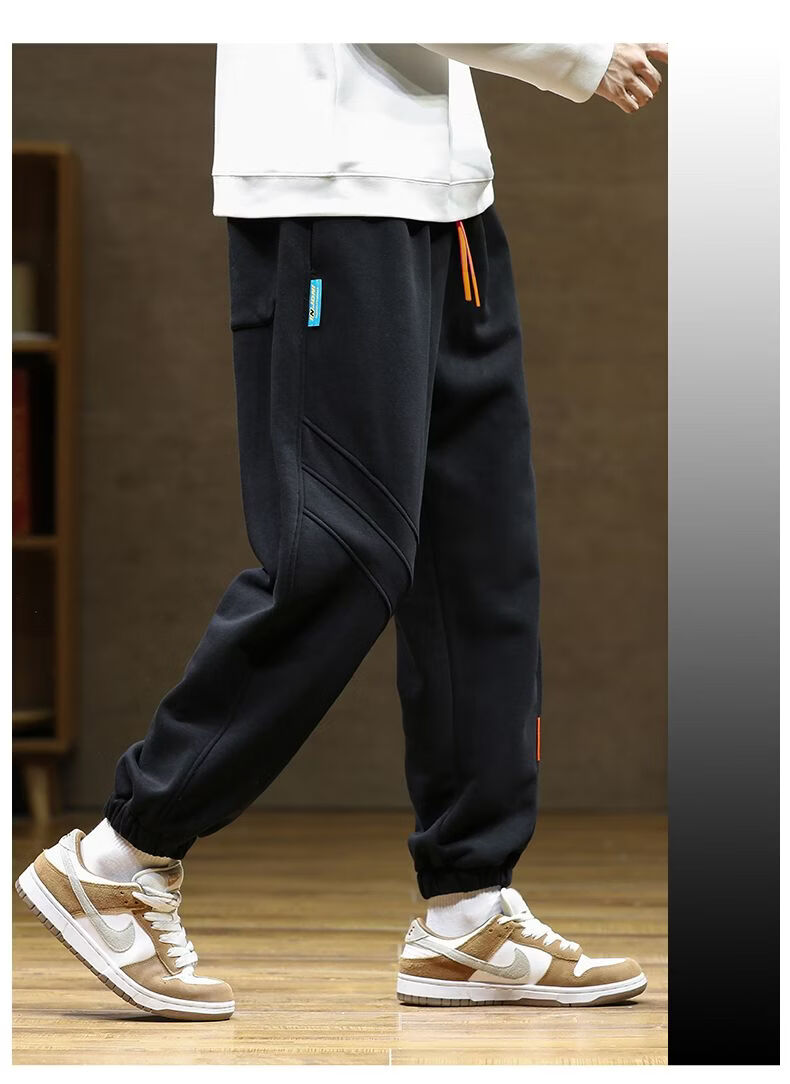 啄木鸟大码加绒卫裤男装束脚哈伦裤加厚保暖运动裤厚款长裤学生裤 黑色加绒 M