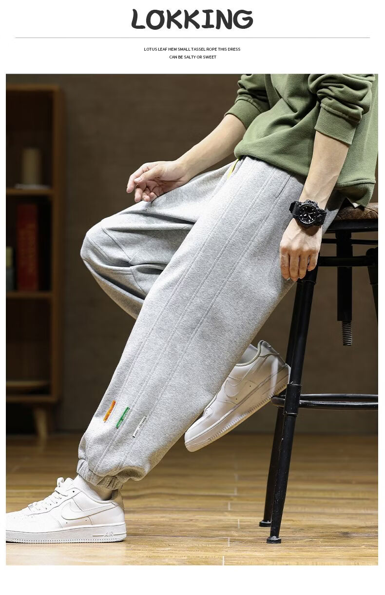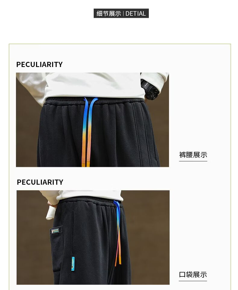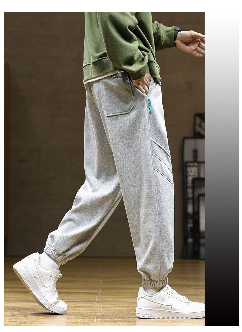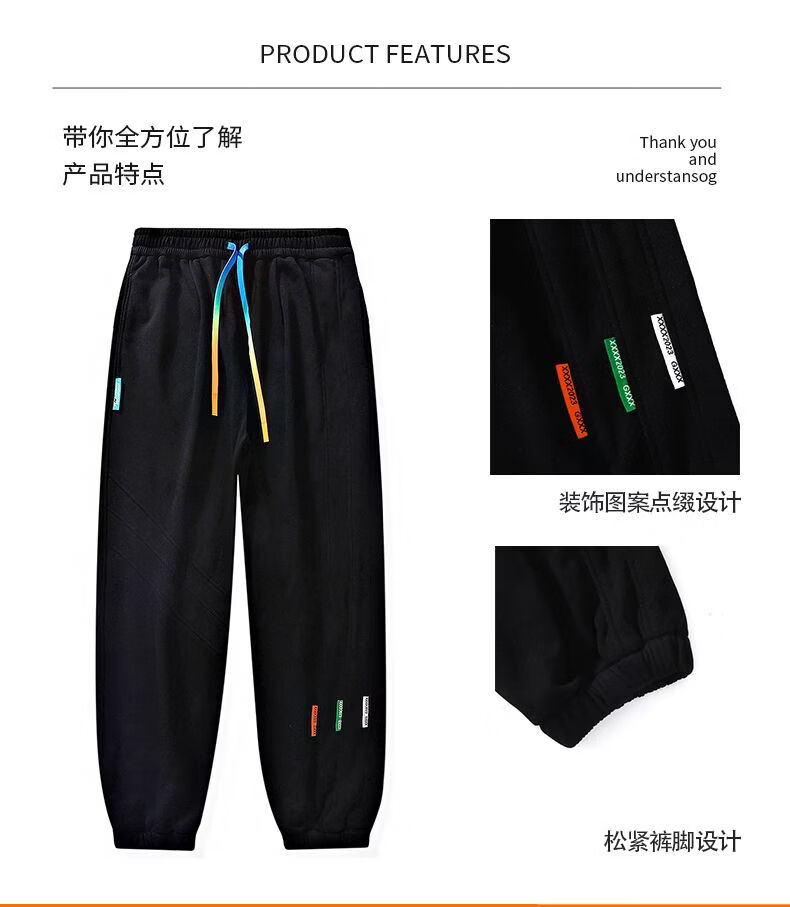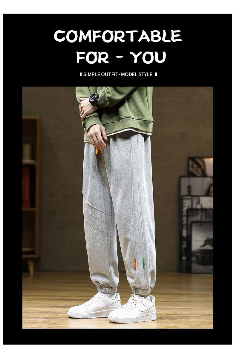 啄木鸟大码加绒卫裤男装束脚哈伦裤加厚保暖运动裤厚款长裤学生裤 黑色加绒 M